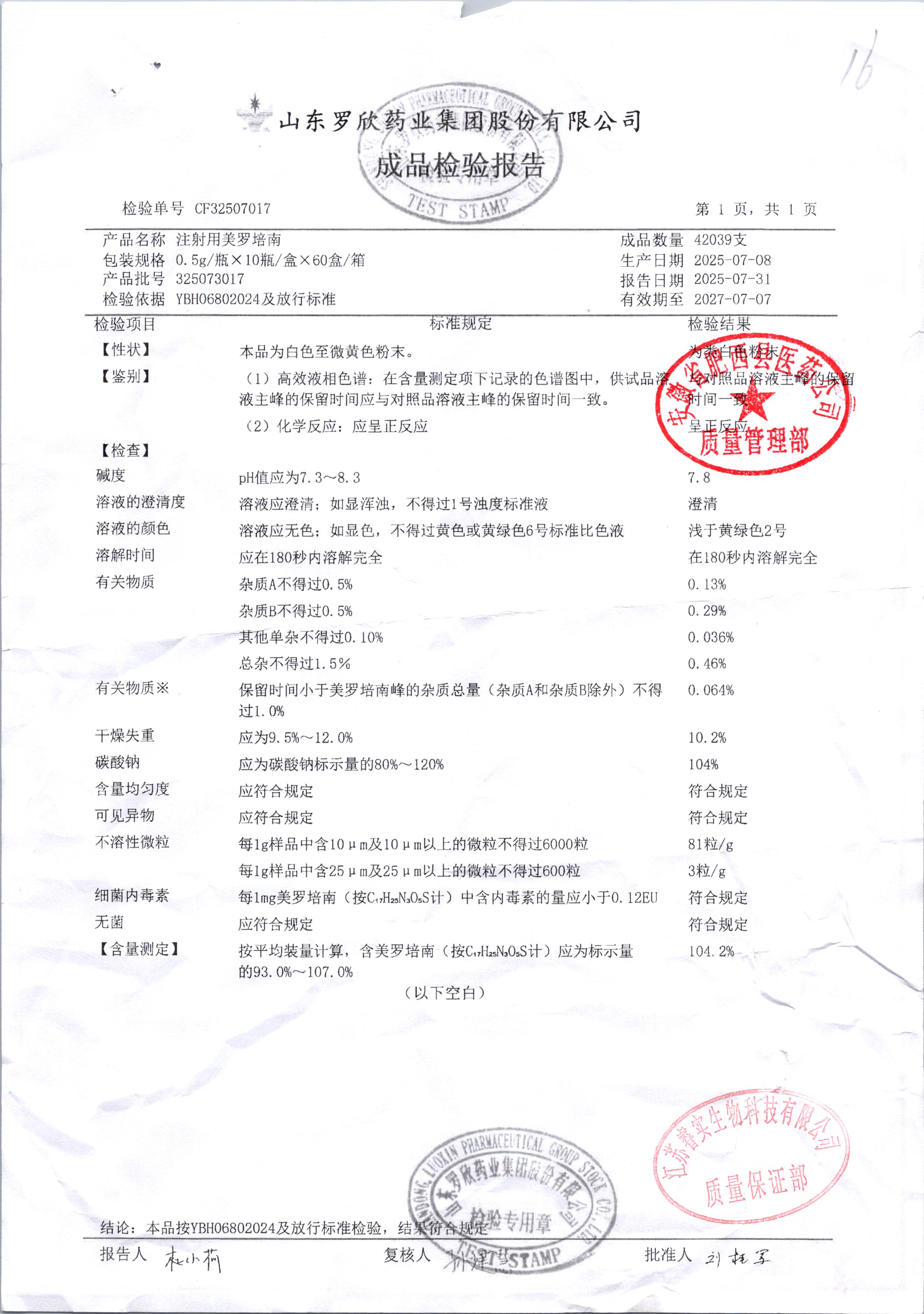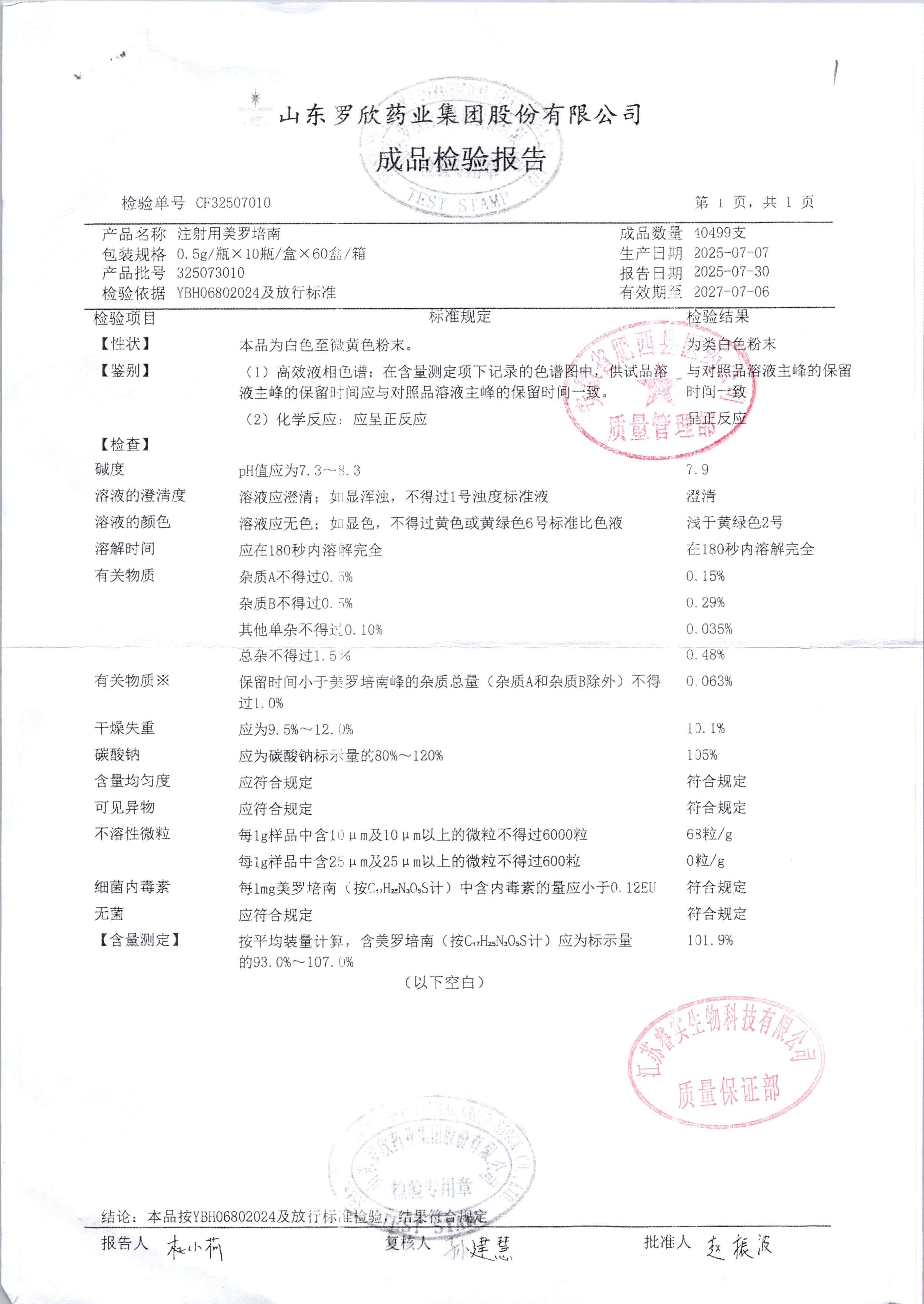 | 注射用美罗培南 | 0.5g | 318053026 | 查看详情 |
