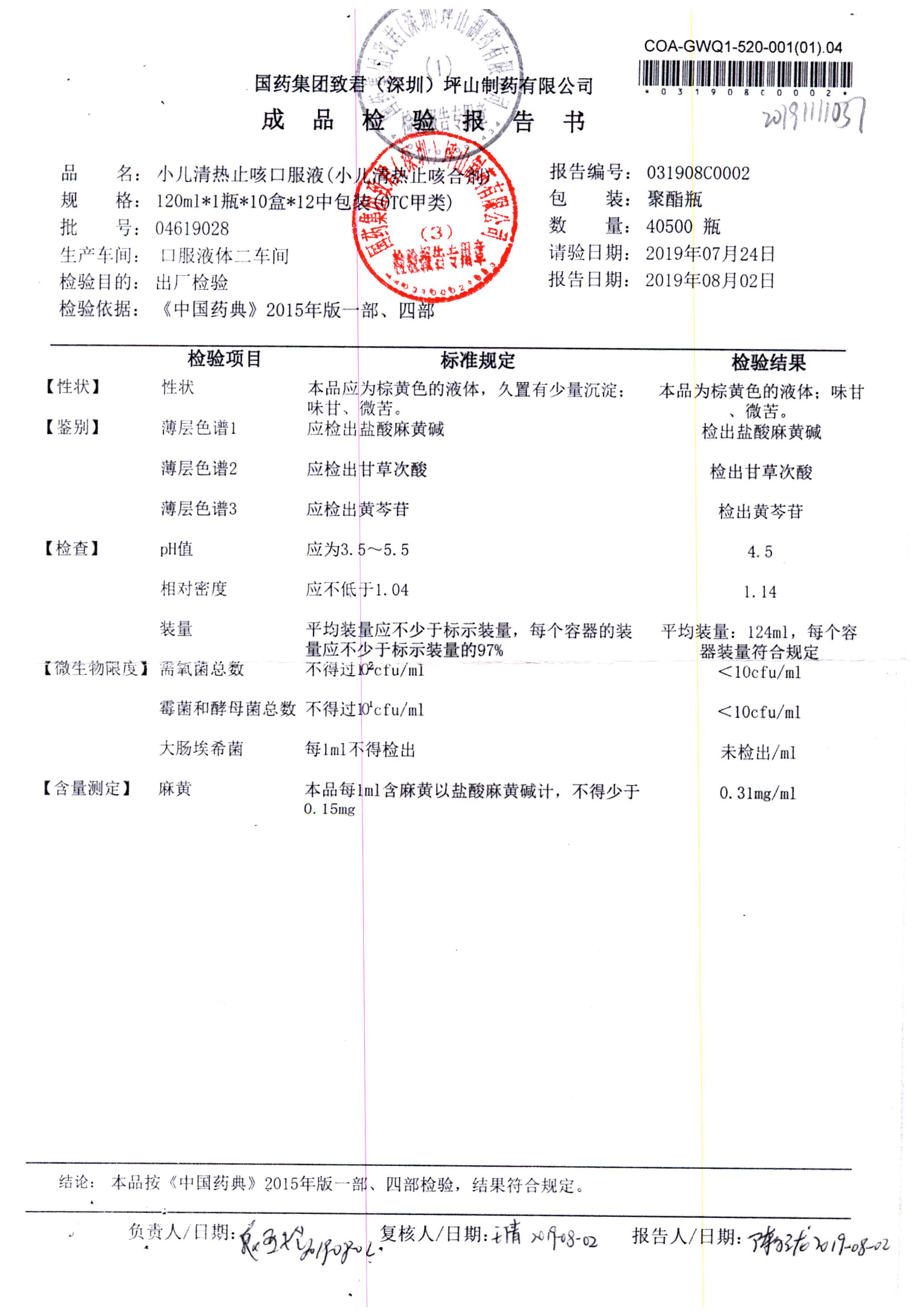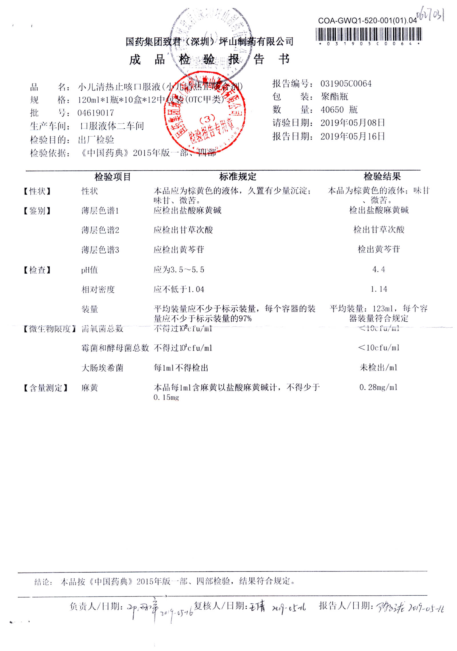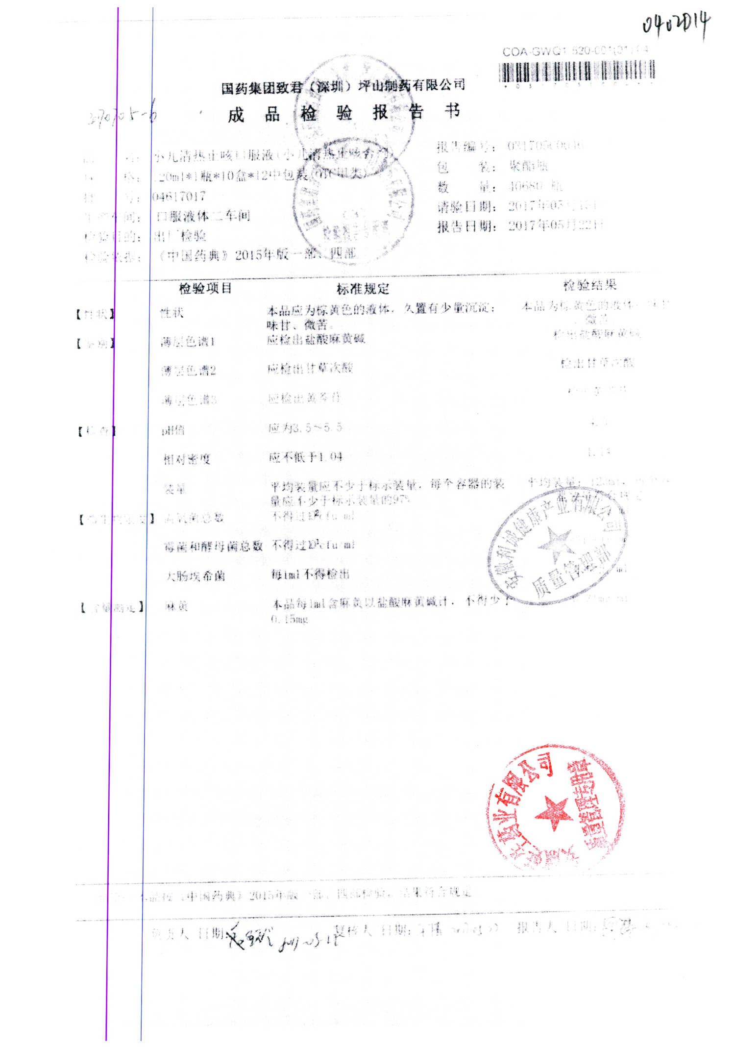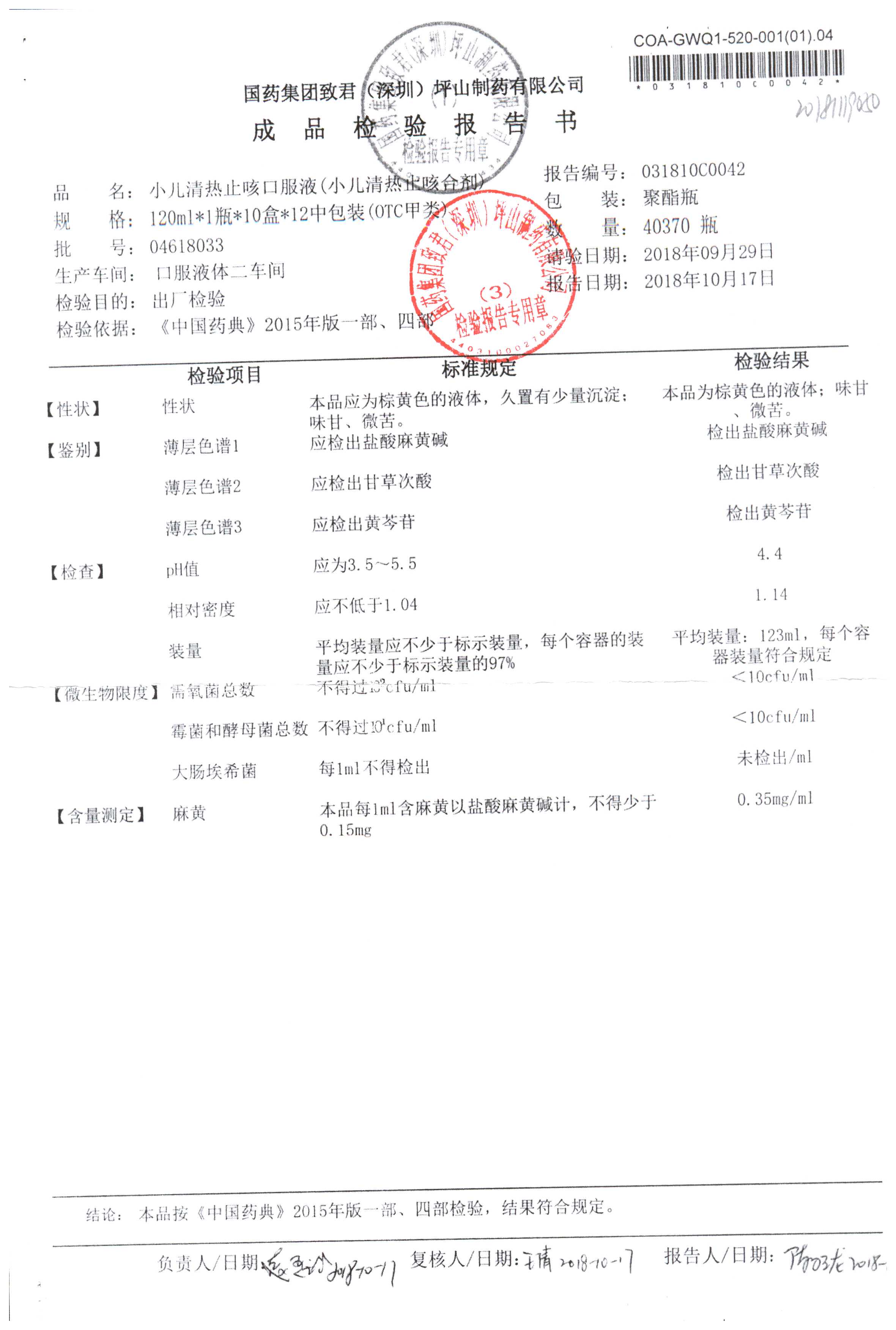 | 小儿清热止咳口服液 | 120ml | 04618033 | 查看详情 |