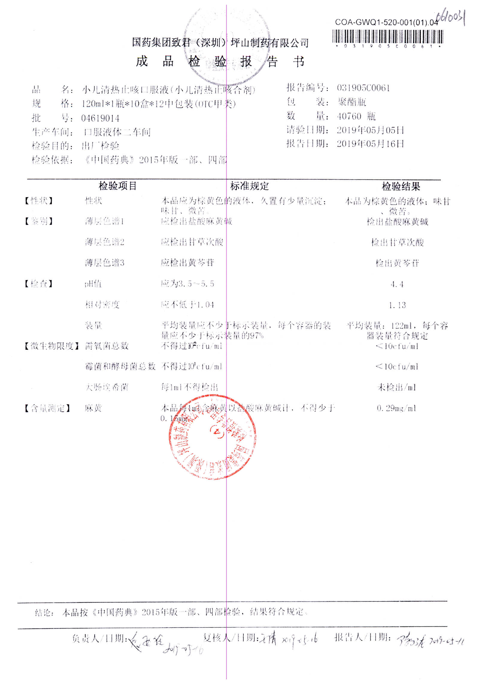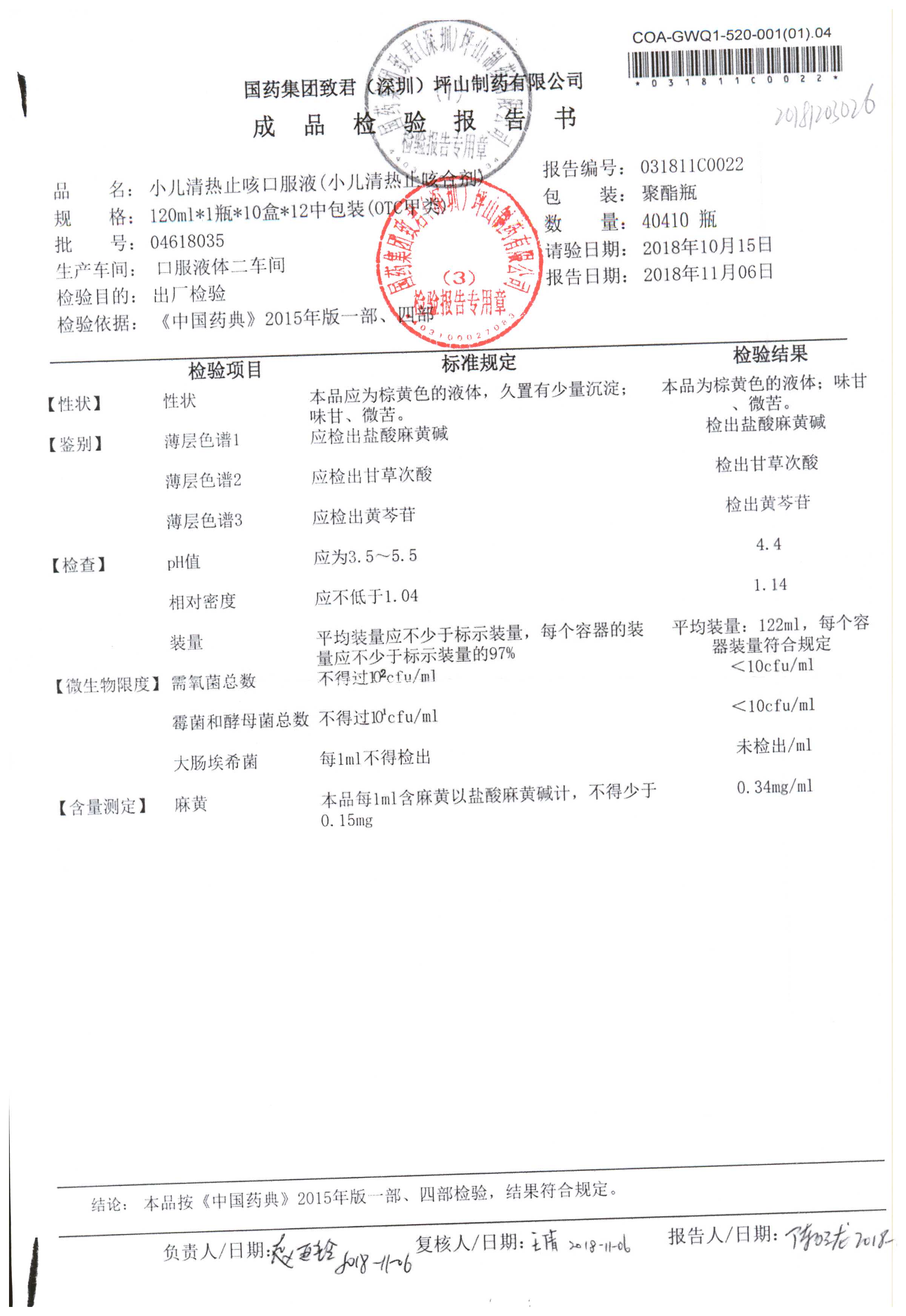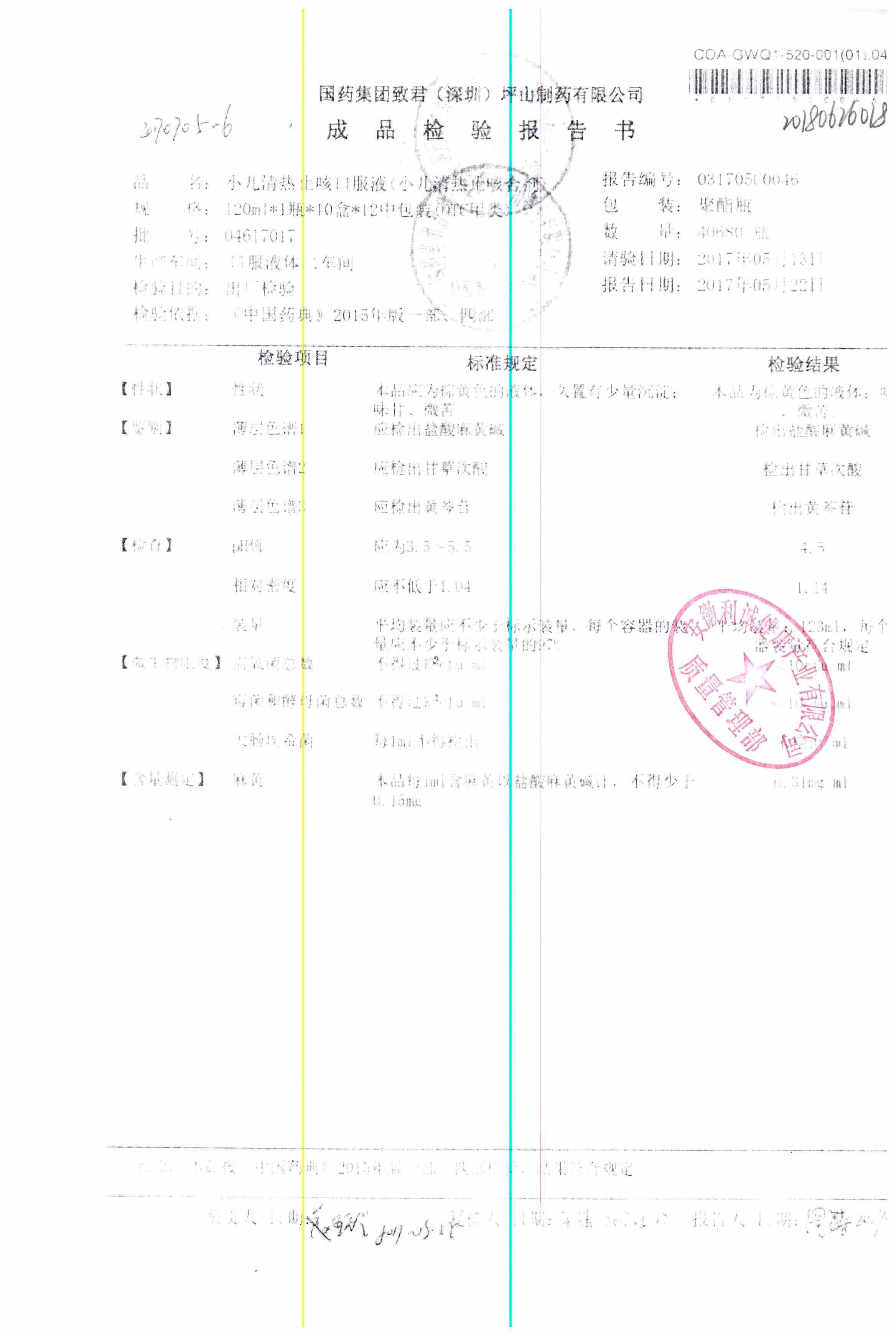 | 名称 | 规格 | 批号 | 药检报告 |