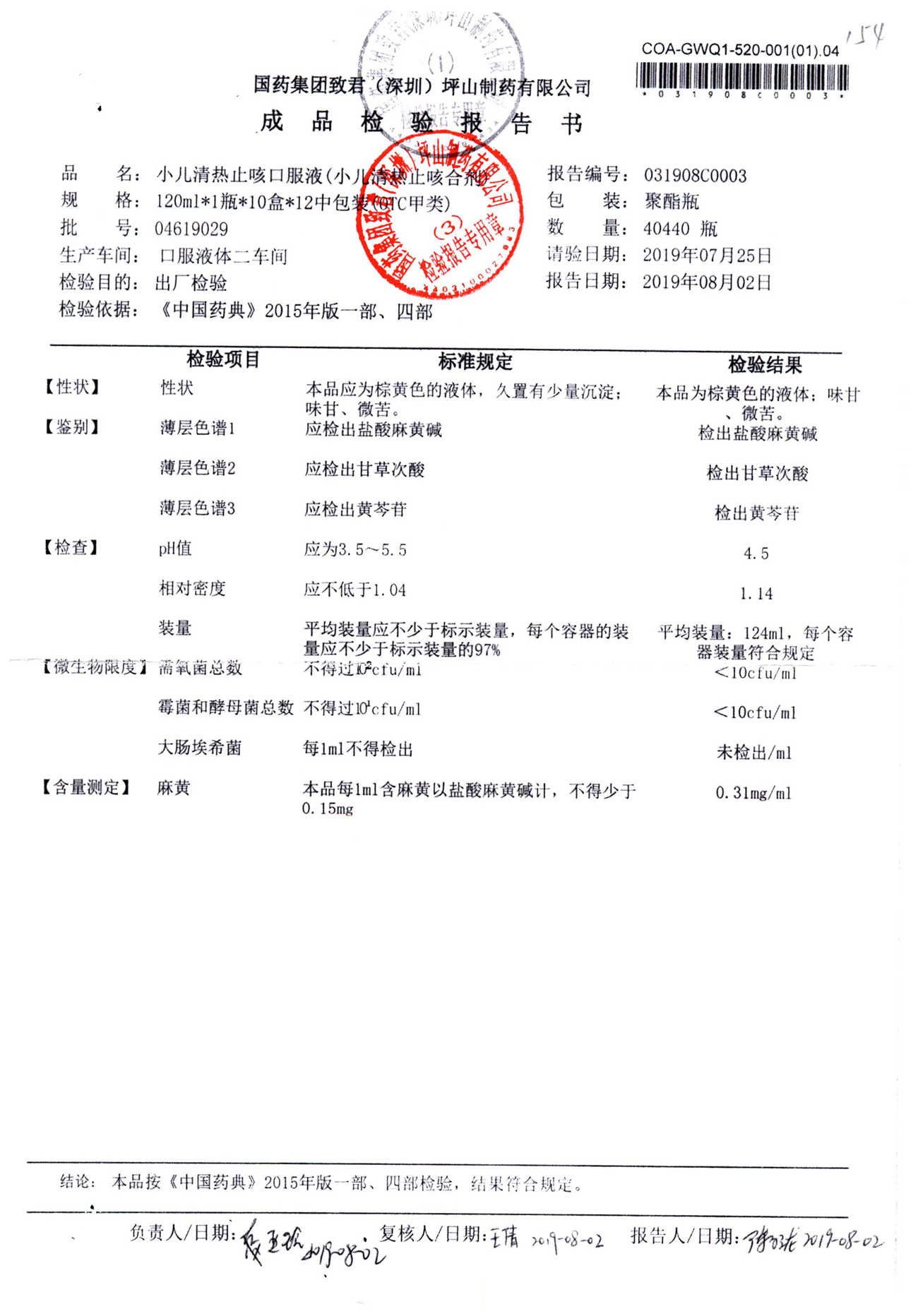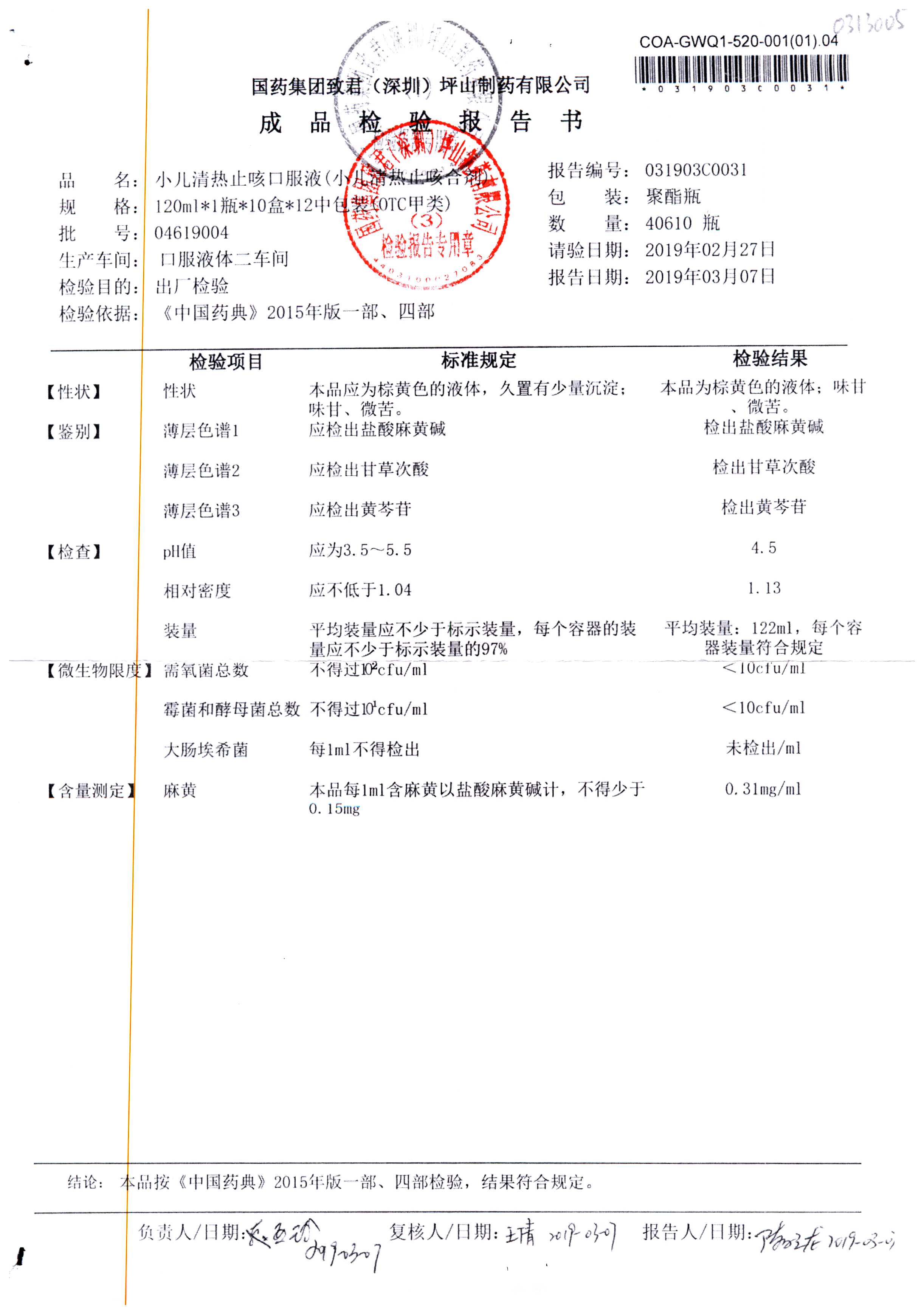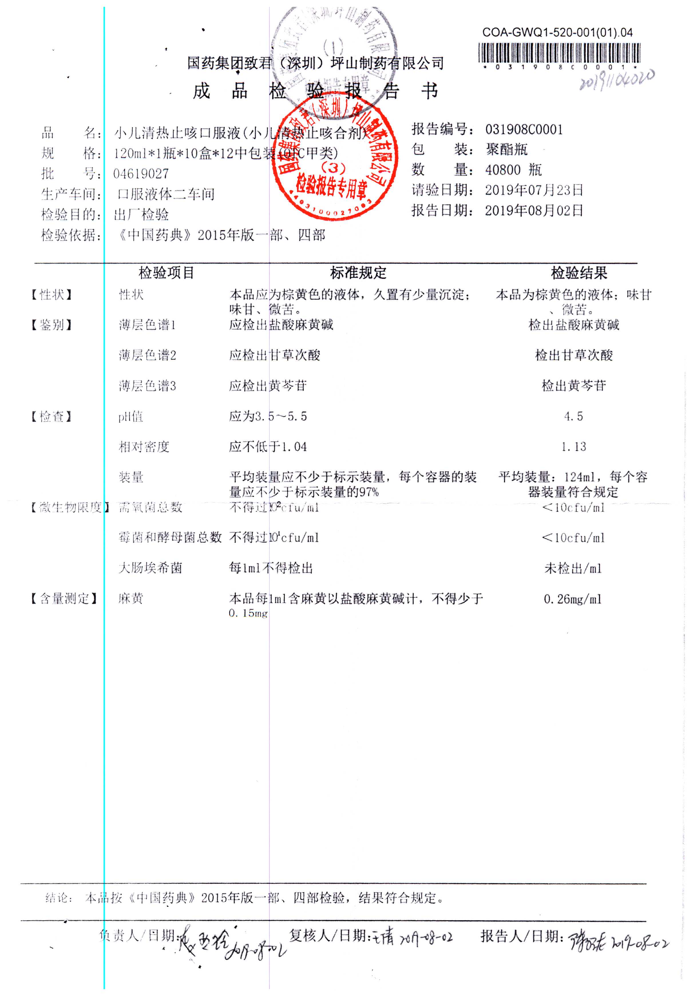 | 小儿清热止咳口服液 | 120ml | 04618036 | 查看详情 |