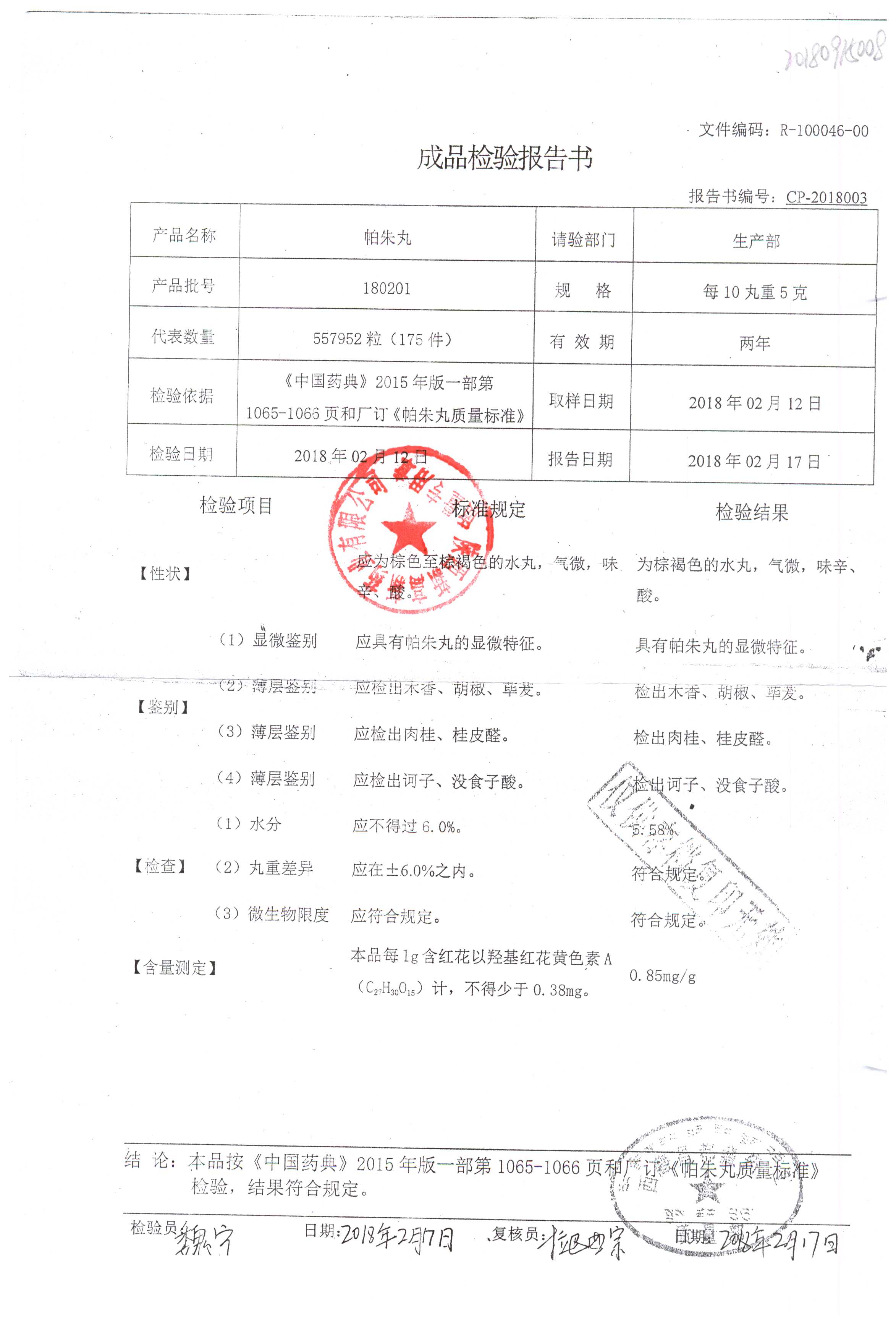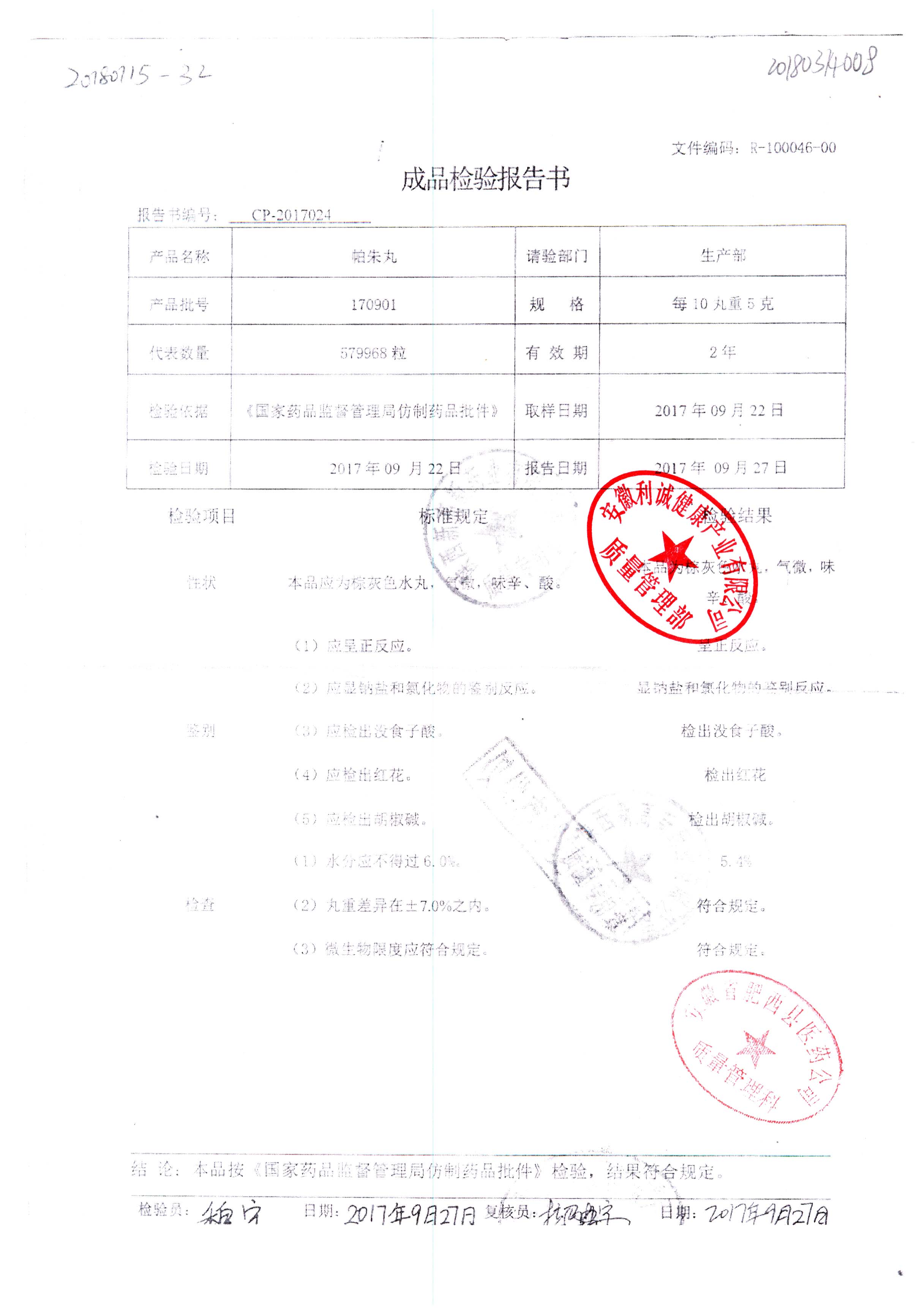 药检报告