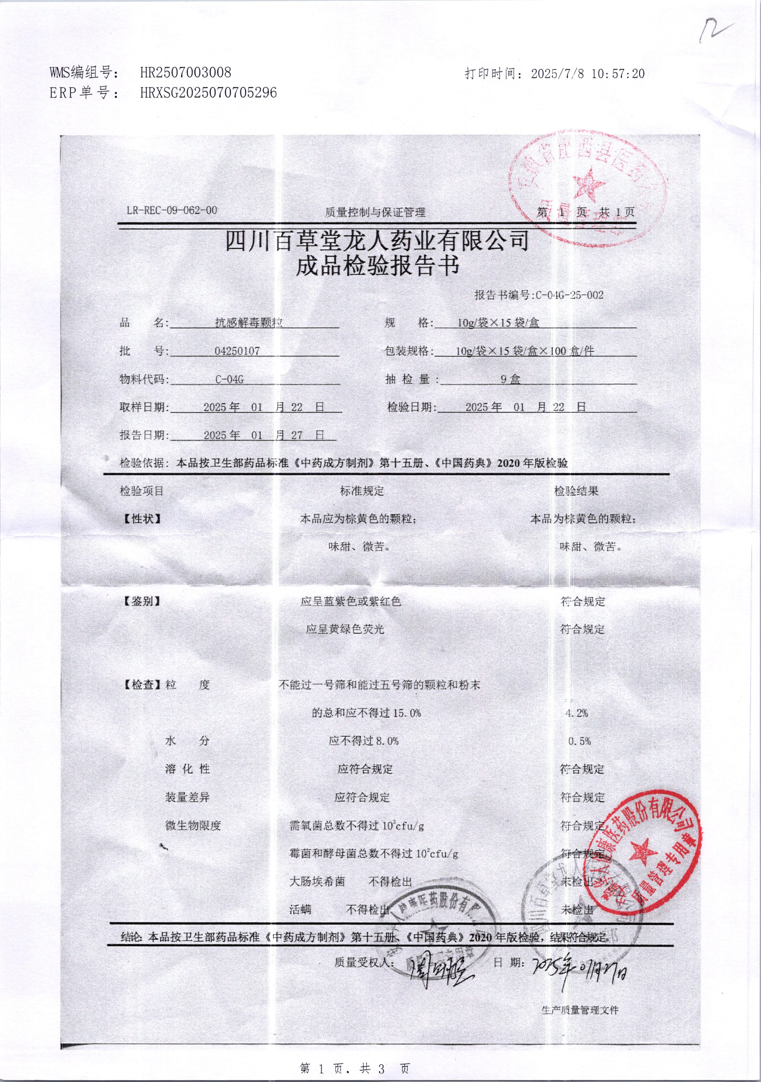 | 抗感解毒颗粒 | 10g*15袋 | 04220202 | 查看详情 |