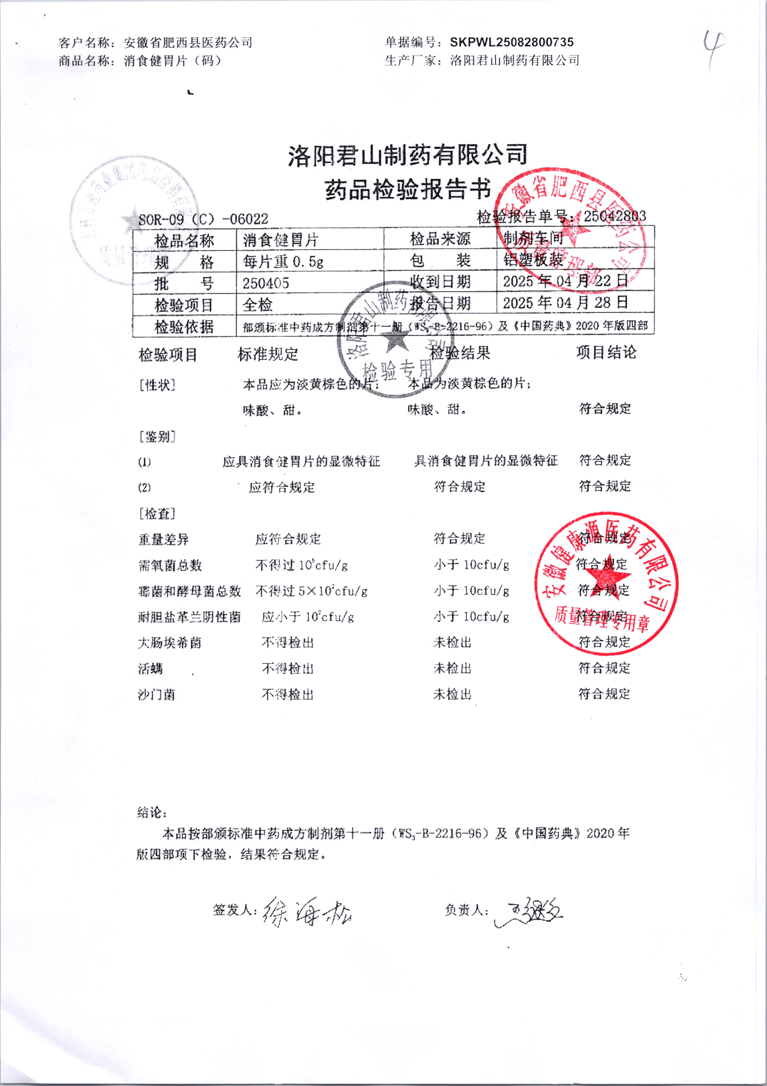 | 消食健胃片 | 0.5g | 250405 | 查看详情 |
