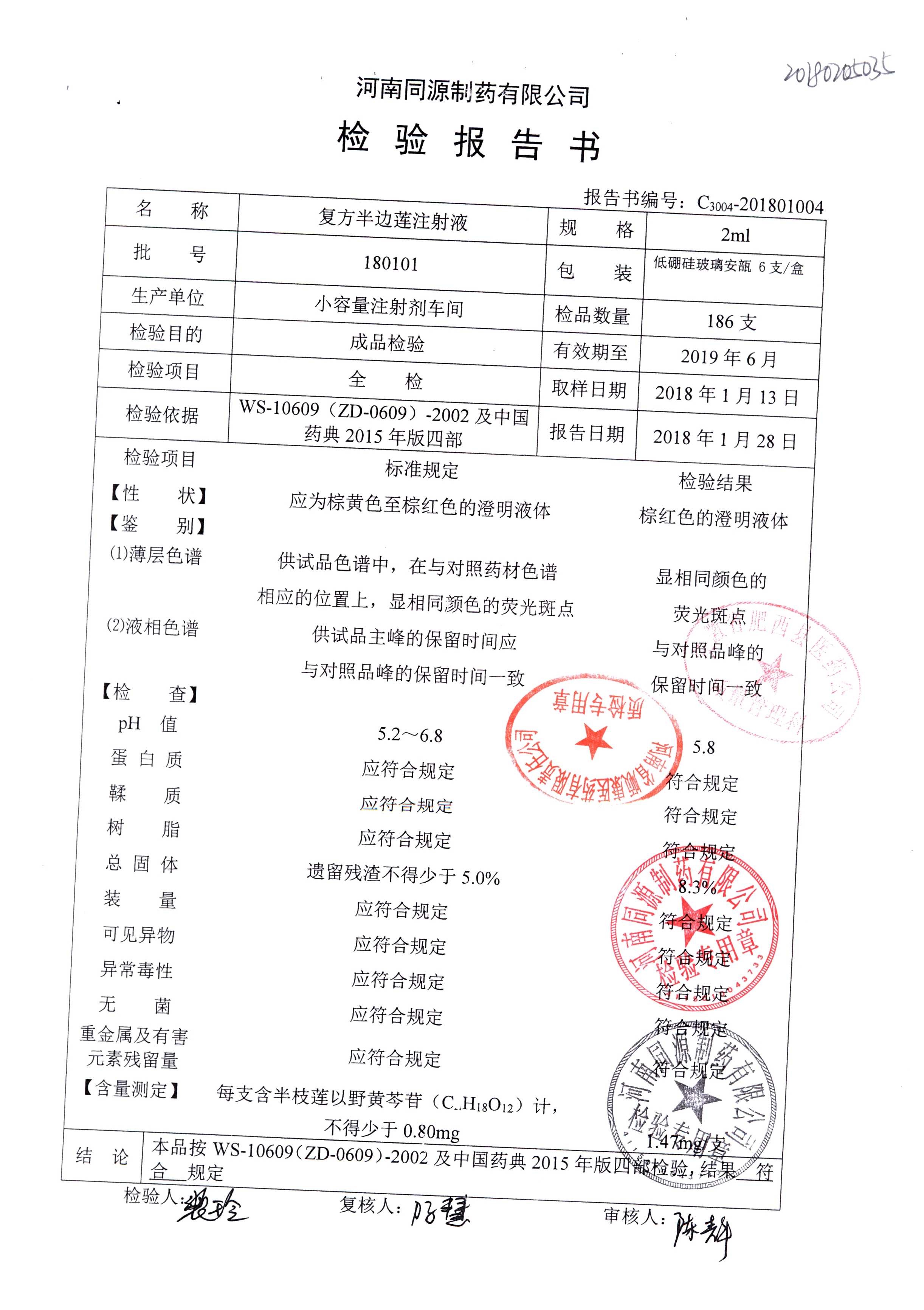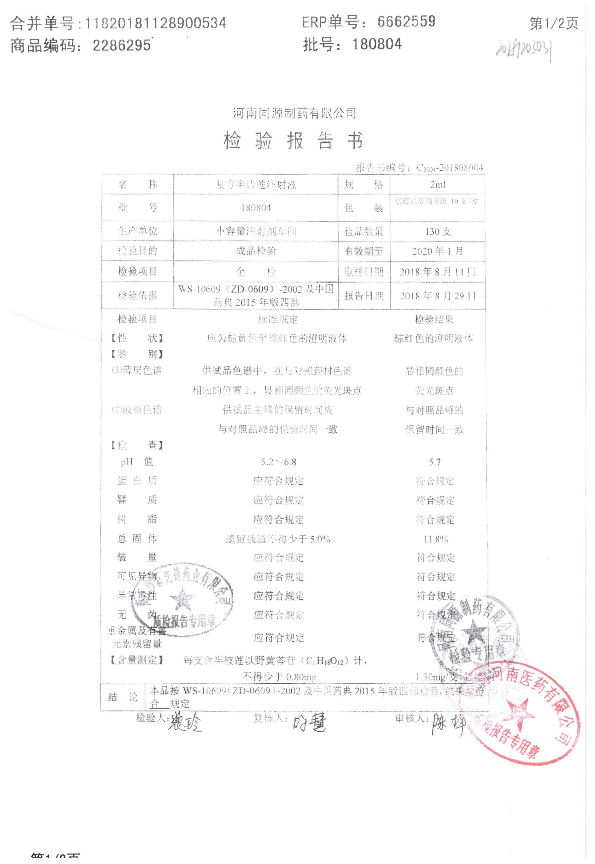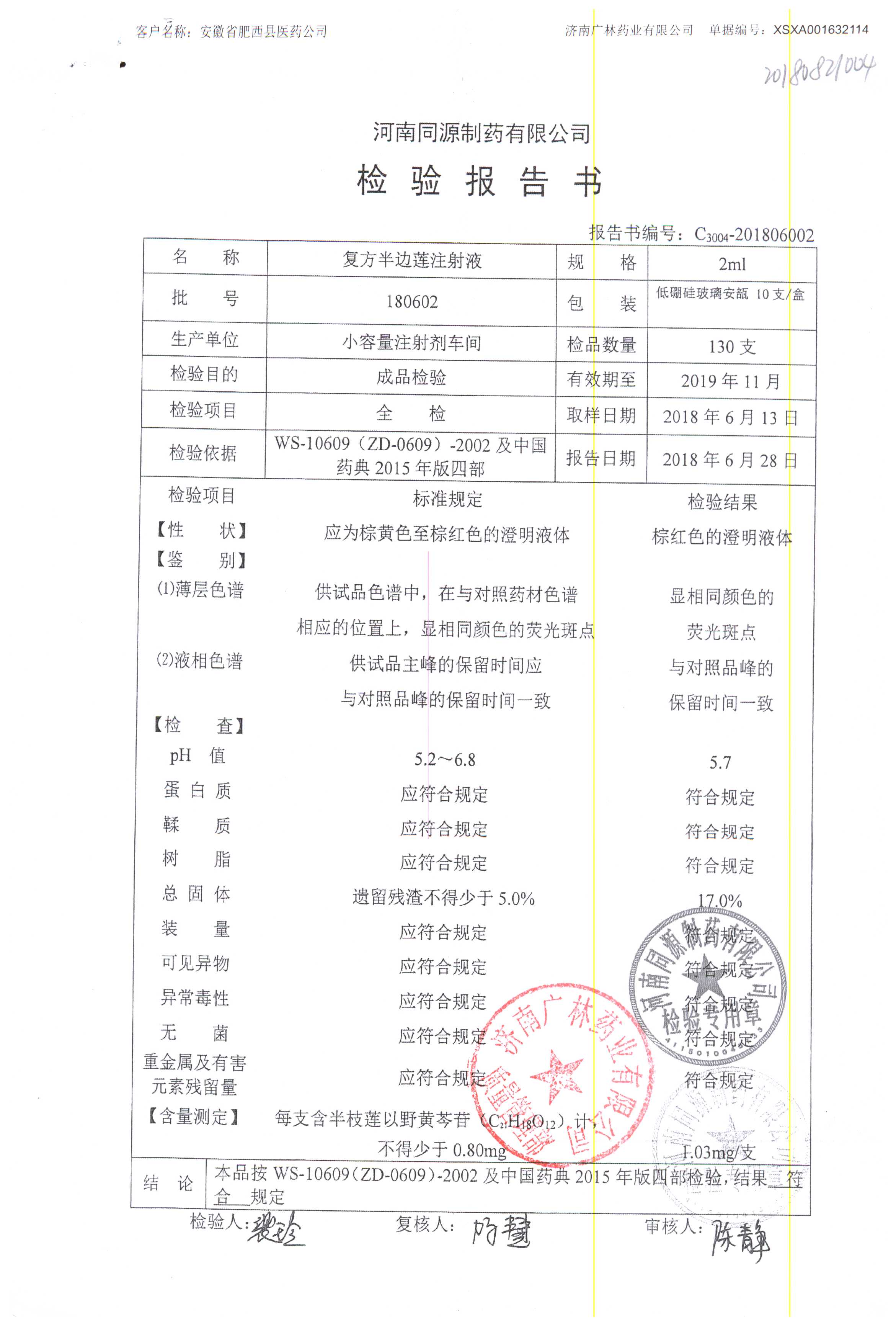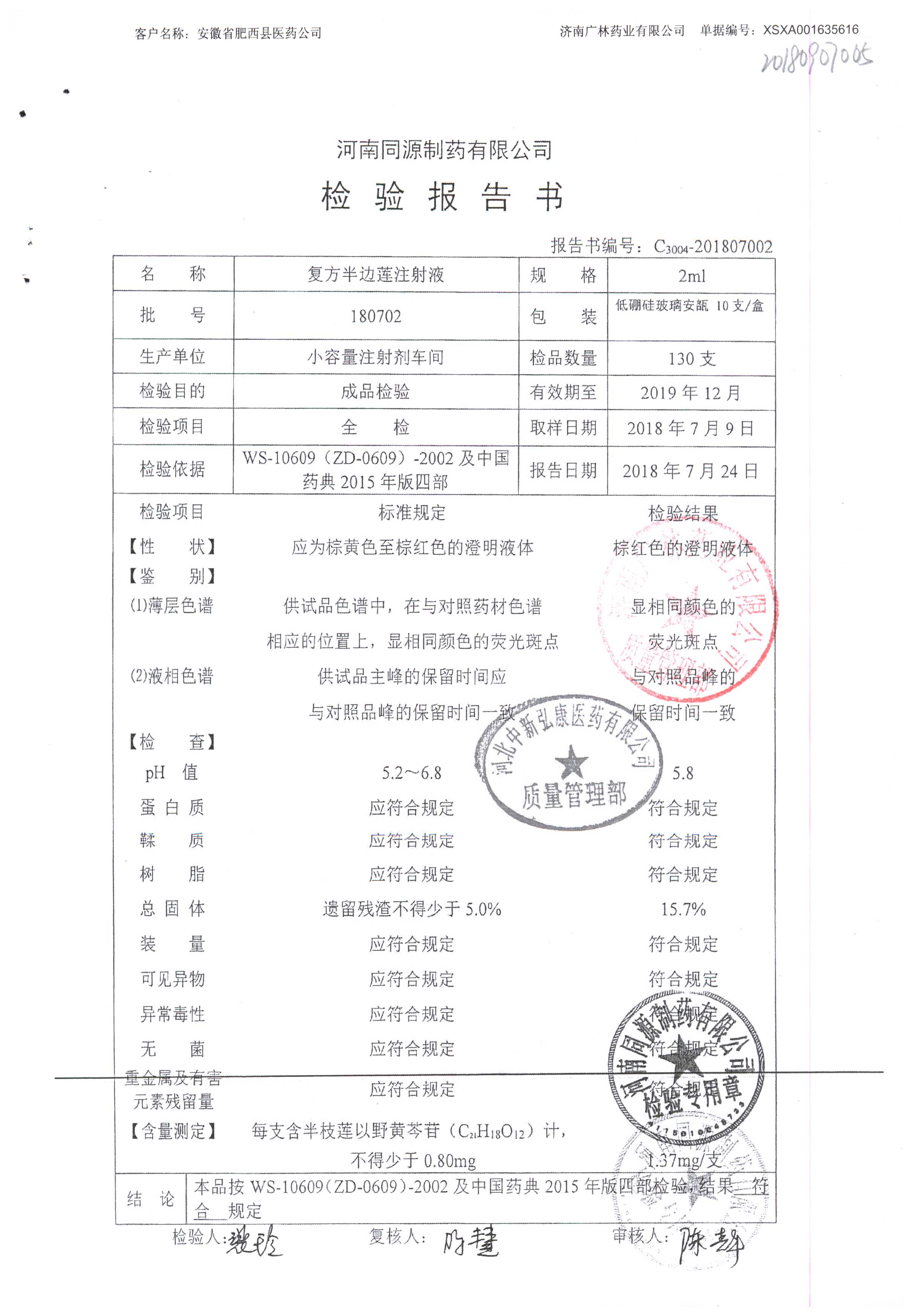| 复方半边莲注射液 | 2ml | 180602 | 查看详情 |