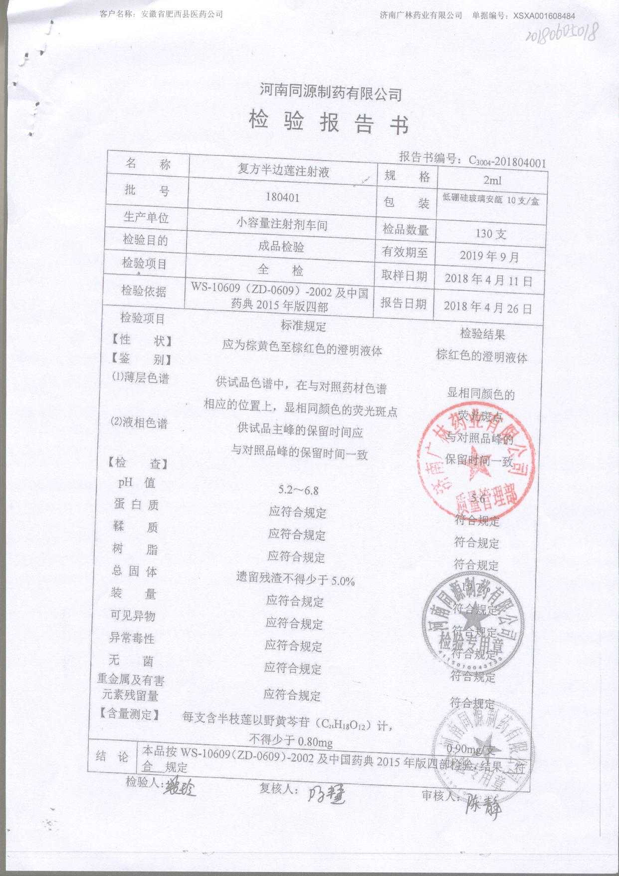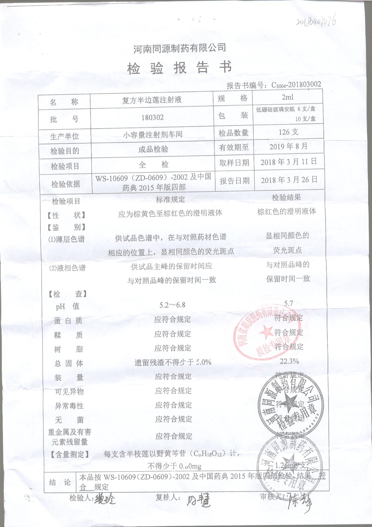 | 复方半边莲注射液 | 2ml | 180401 | 查看详情 |