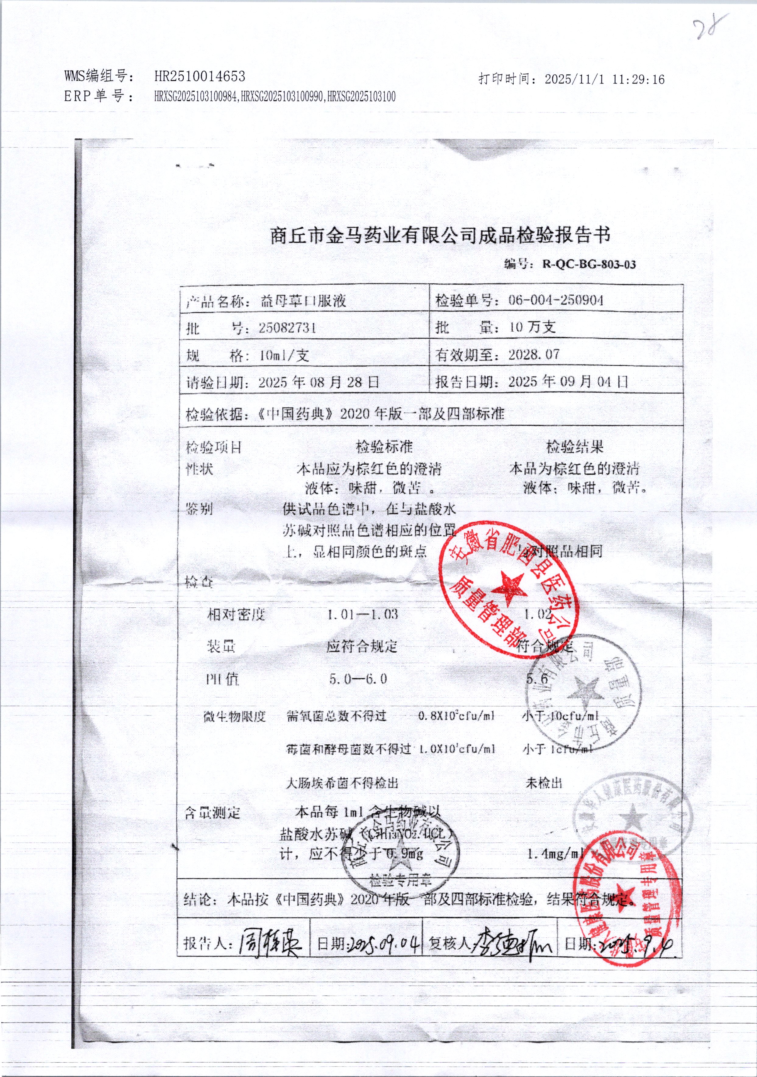 | 益母草口服液 | 10ml | 20093031 | 查看详情 |