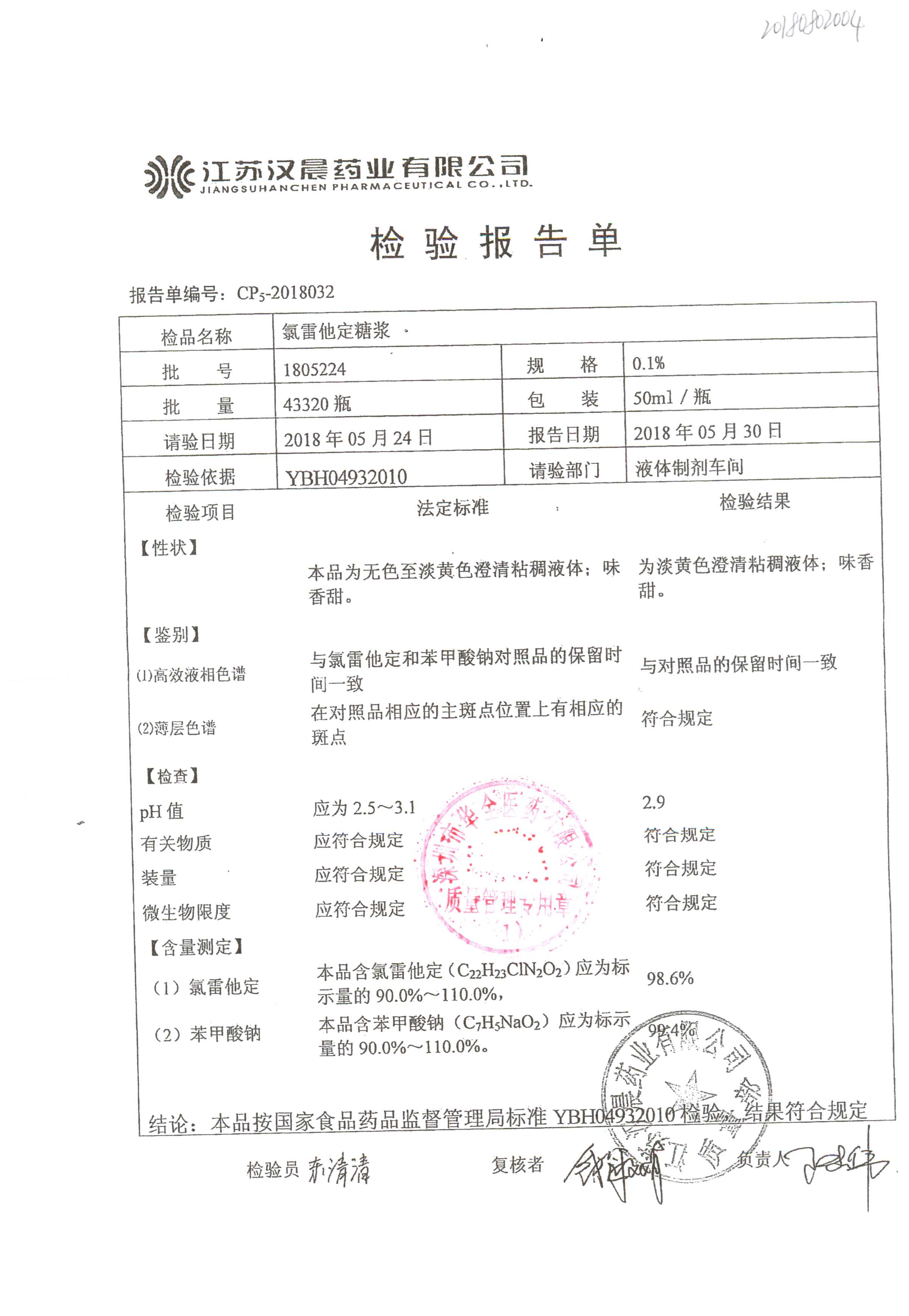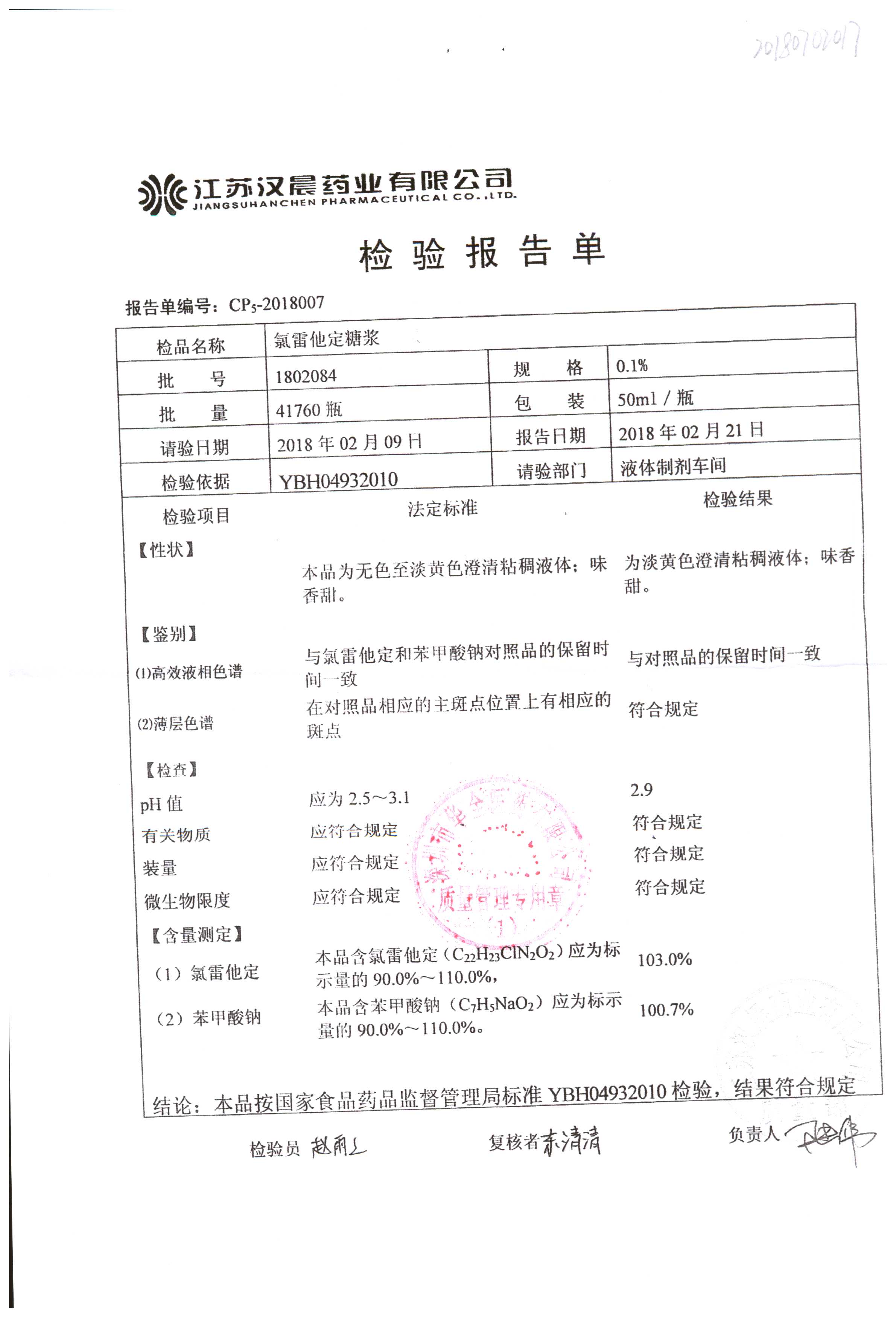 | 氯雷他定糖浆 | 50ml | 1802084 | 查看详情 |