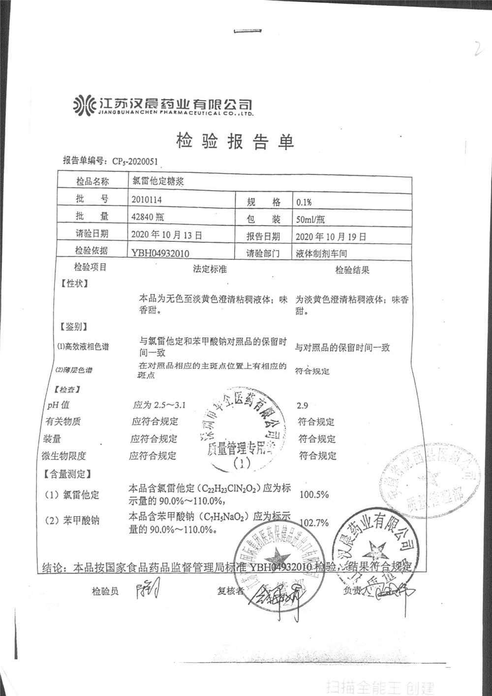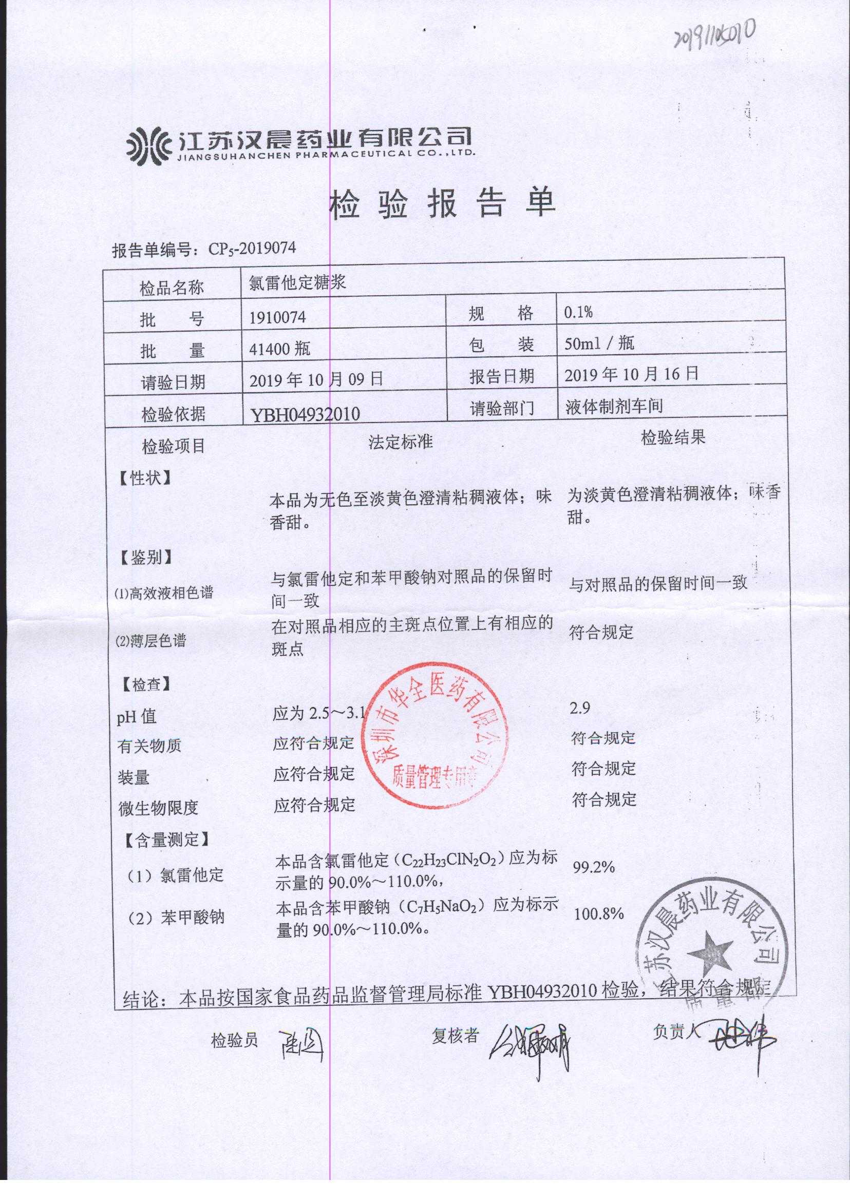 | 氯雷他定糖浆 | 50ml | 1910074 | 查看详情 |