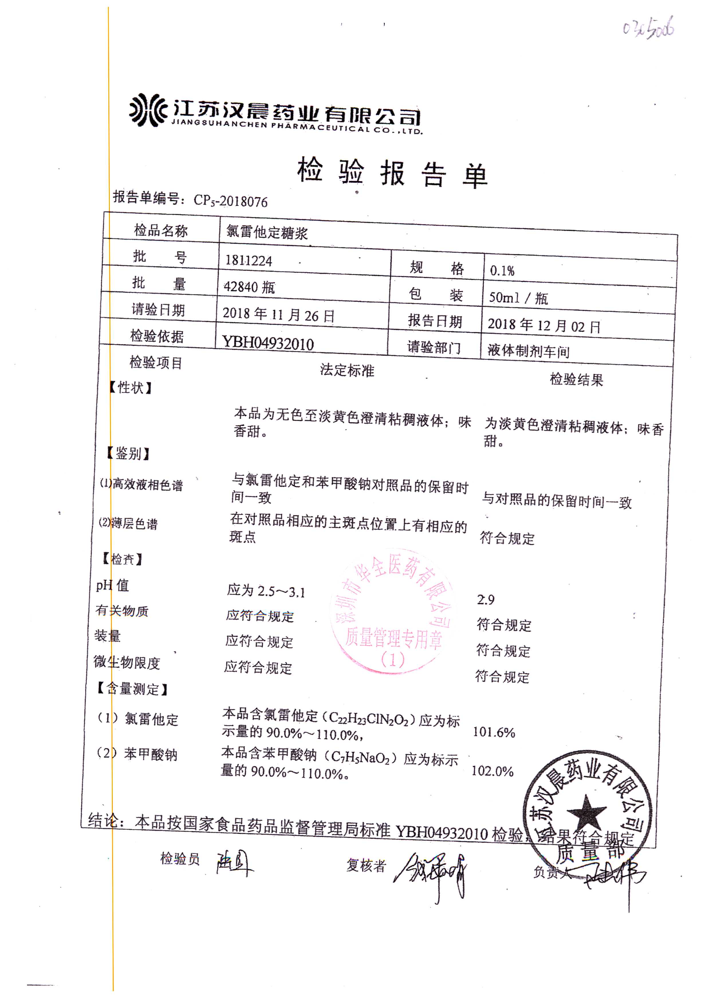 | 氯雷他定糖浆 | 50ml | 1811224 | 查看详情 |