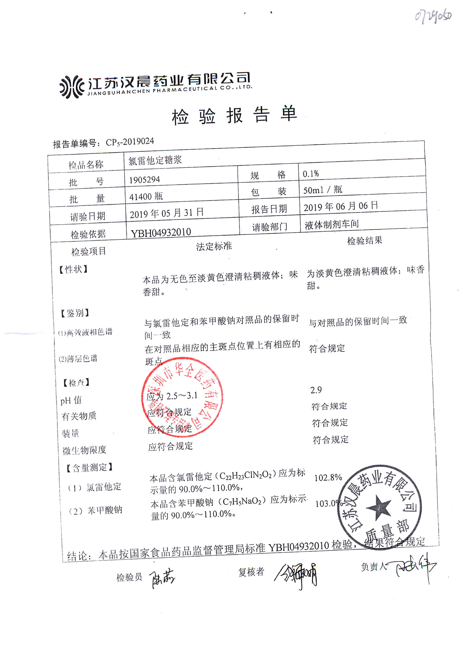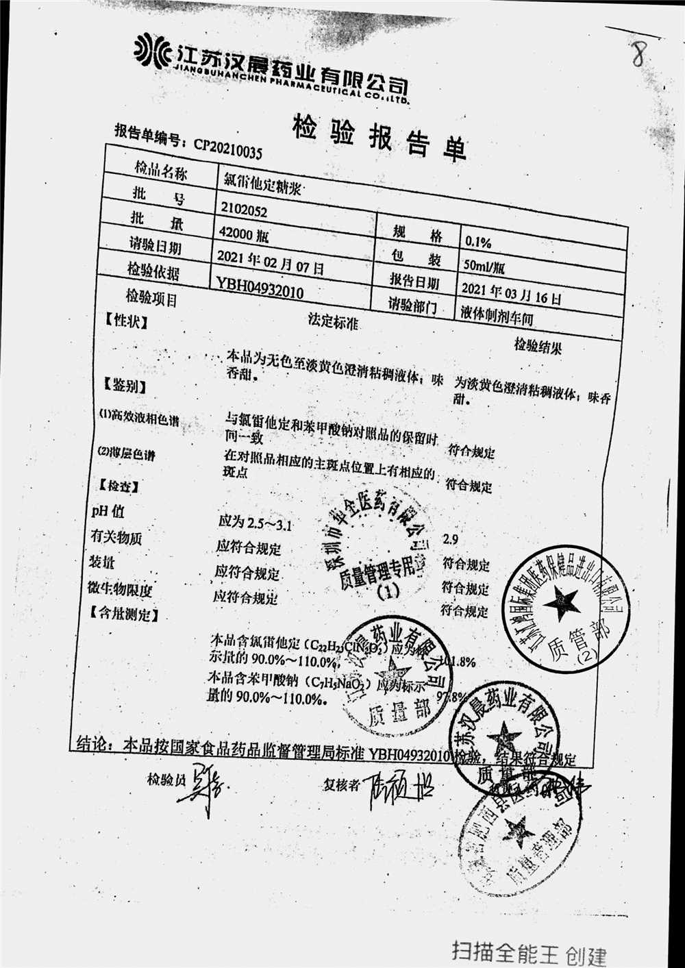 | 名称 | 规格 | 批号 | 药检报告 |