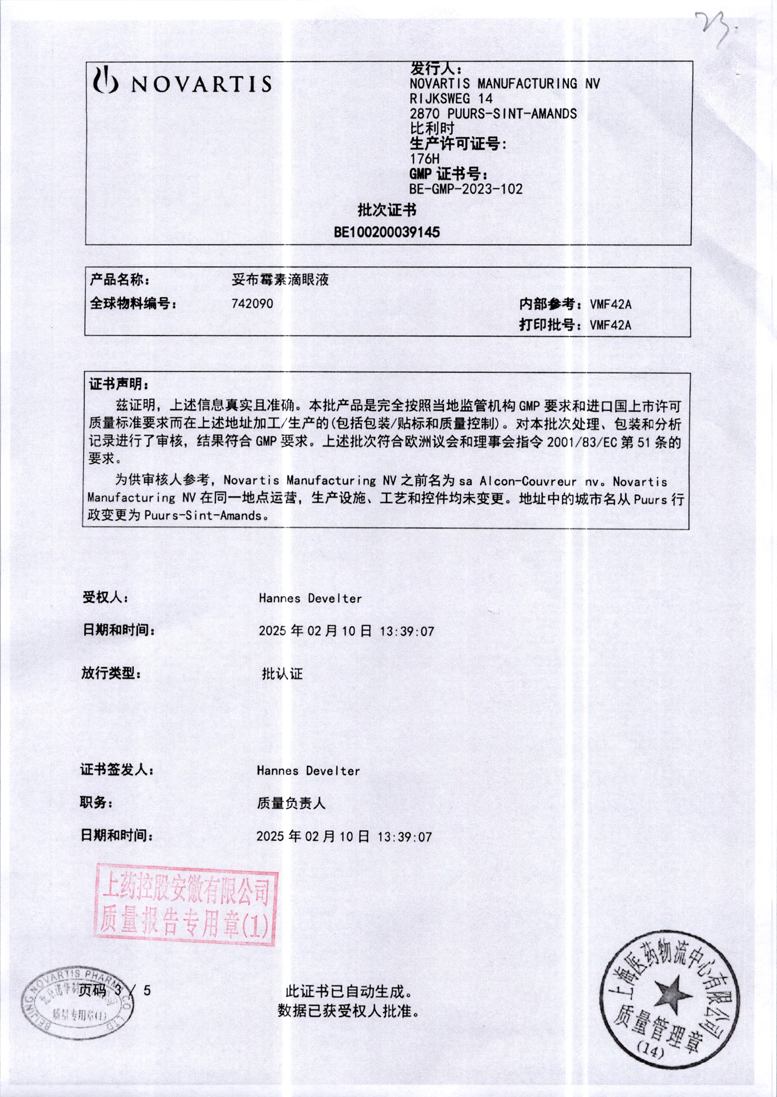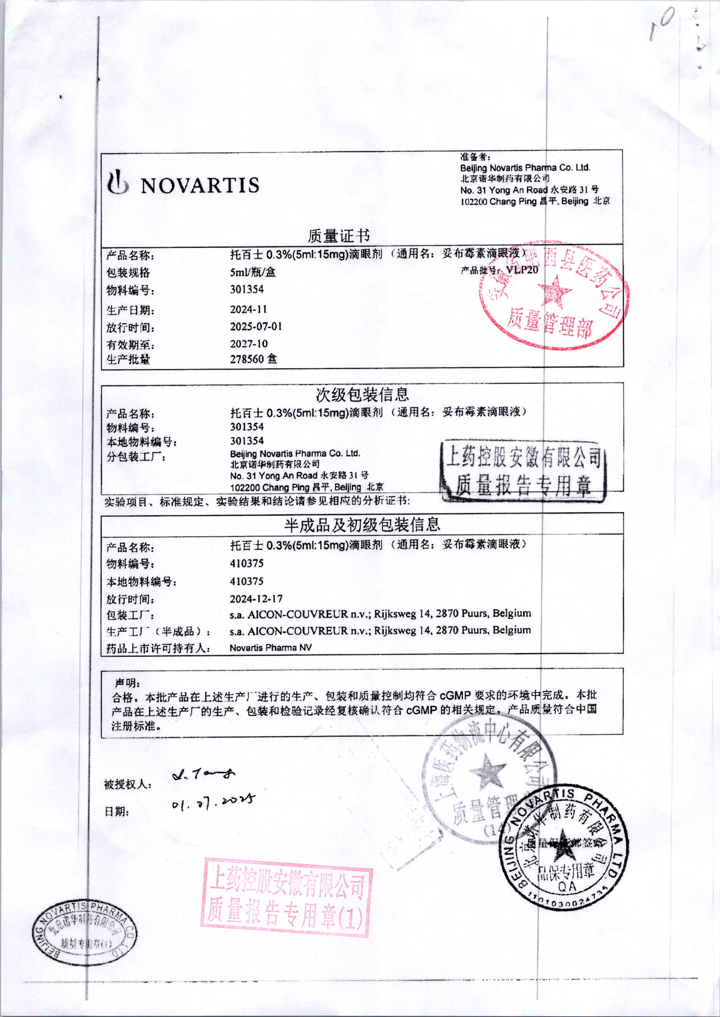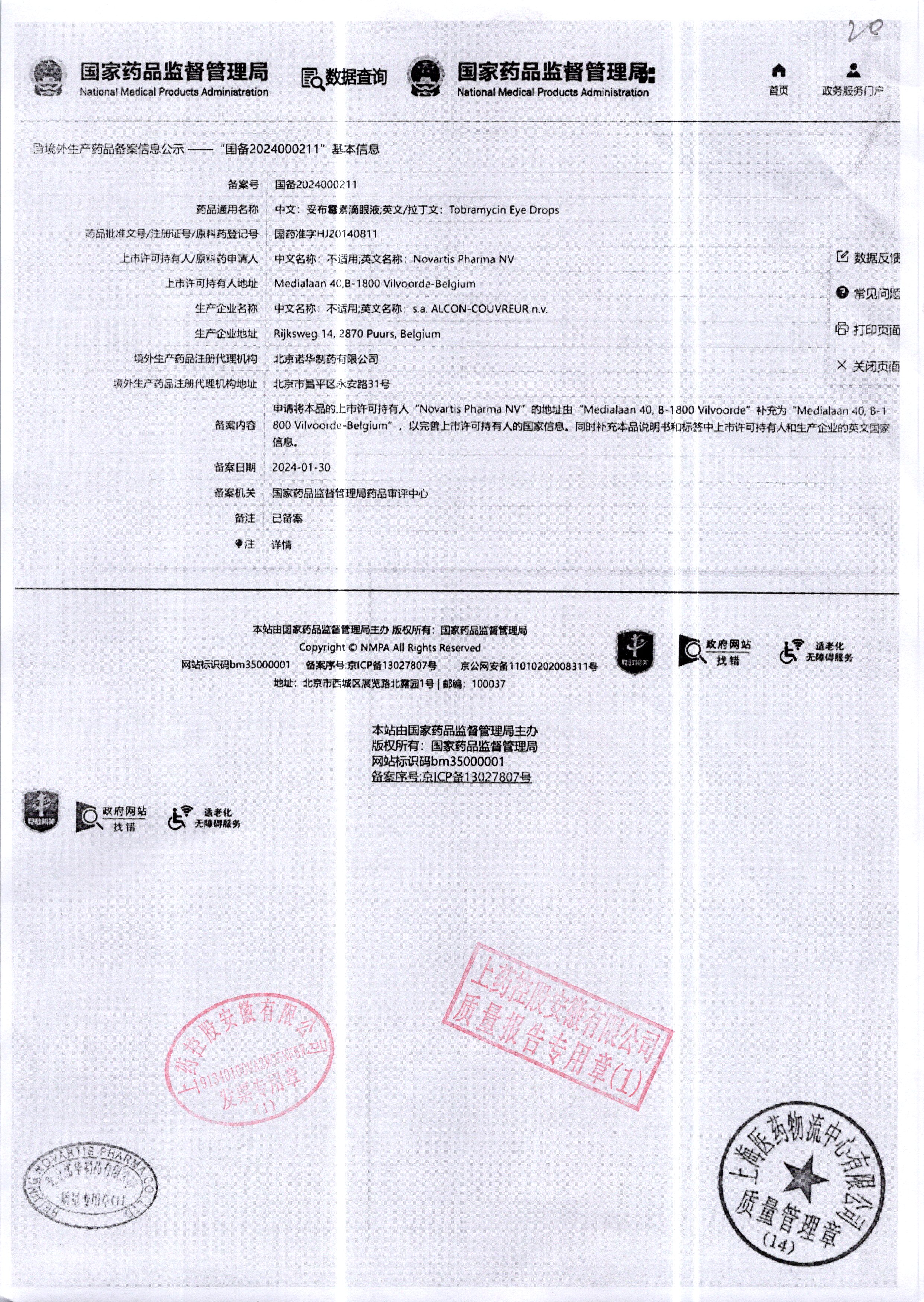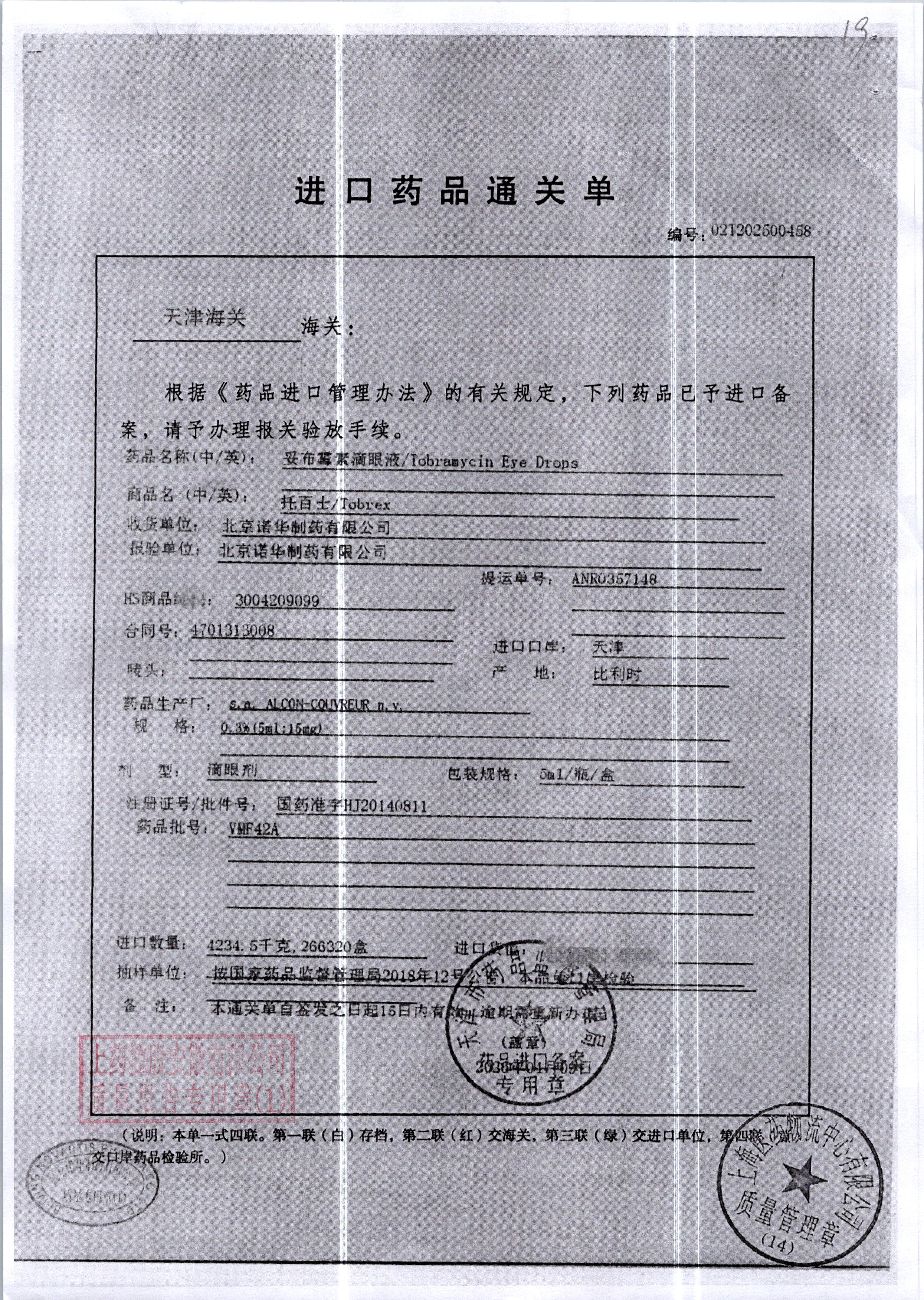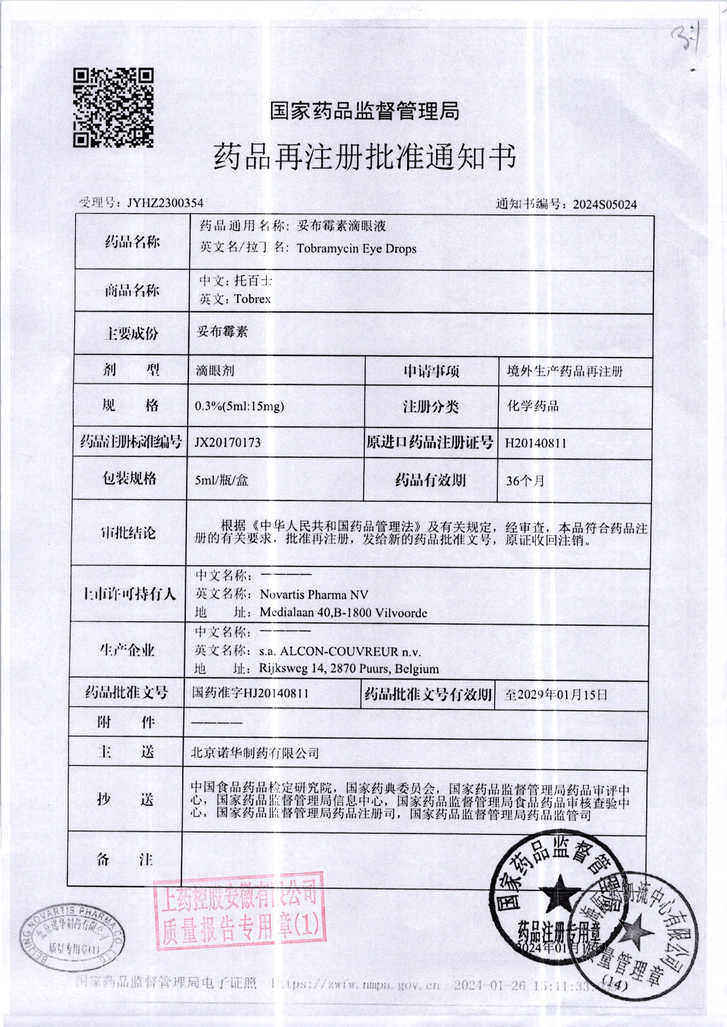 | 妥布霉素滴眼液(托百士) | 5ml | 17E16DC(注册证) | 查看详情 |