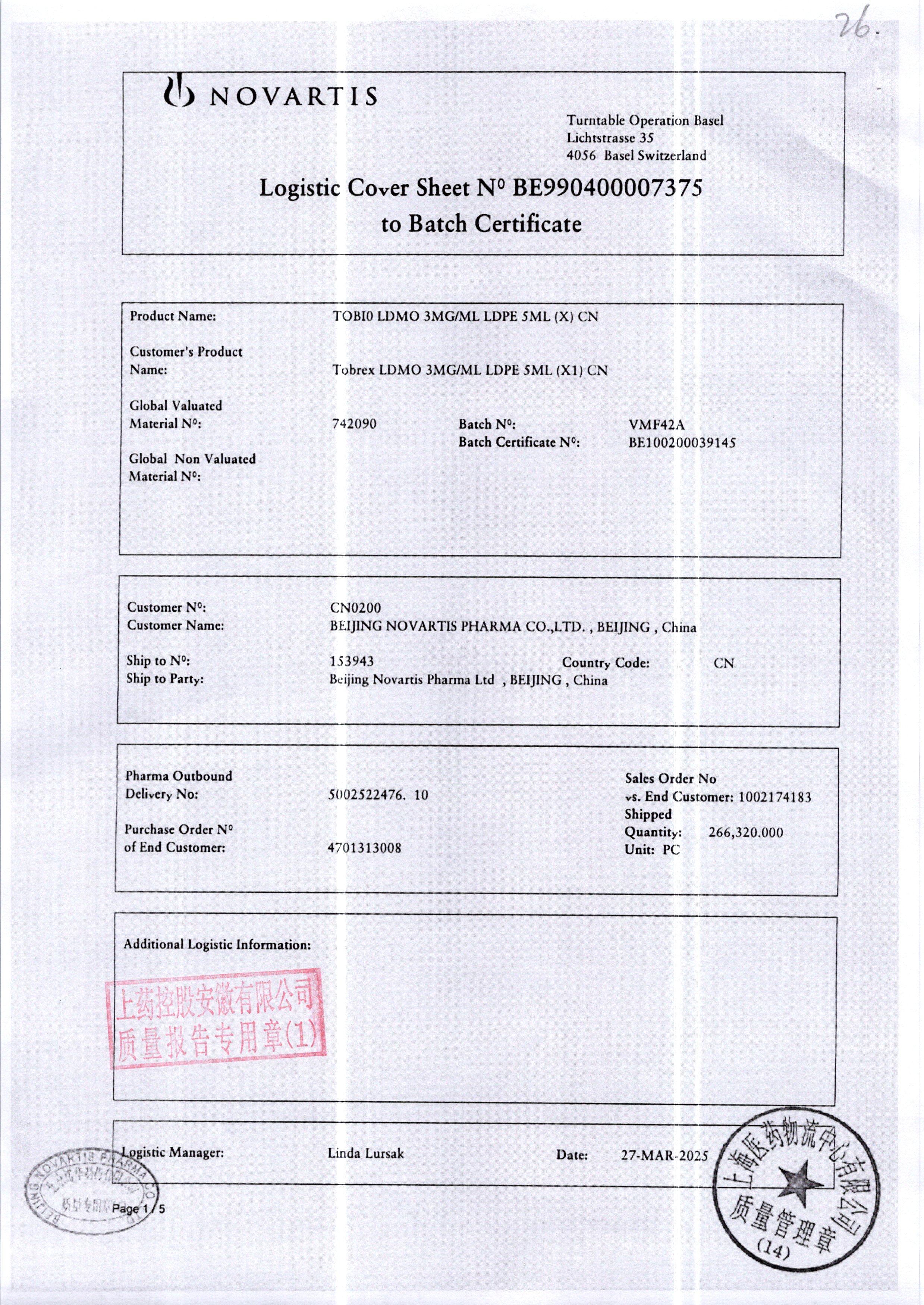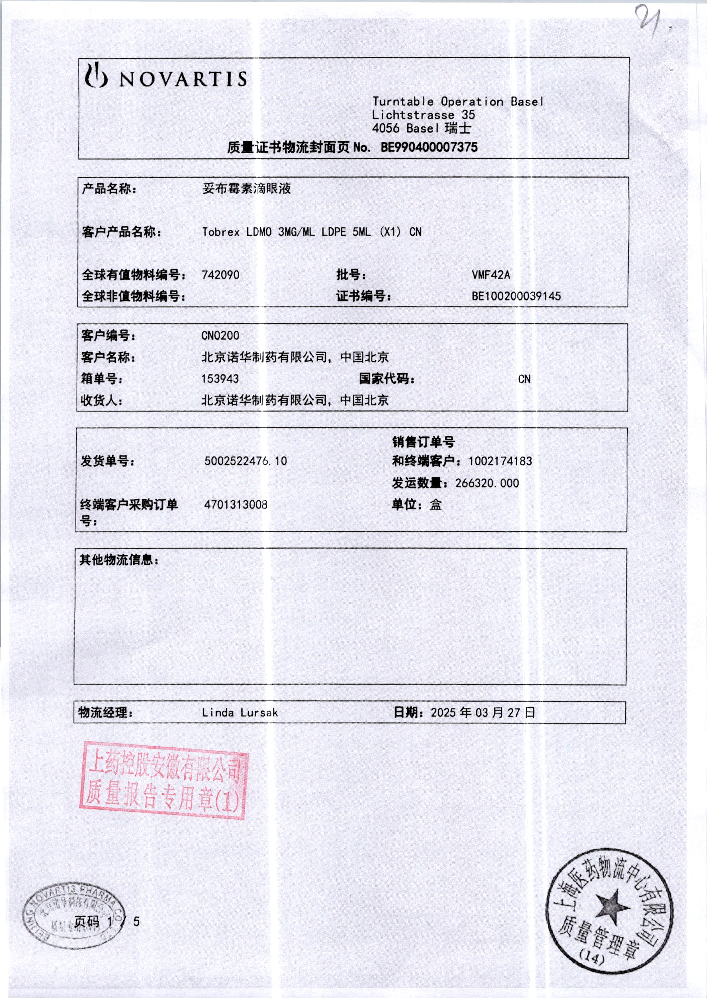 | 妥布霉素滴眼液(托百士) | 5ml | 22B25EA/6 | 查看详情 |