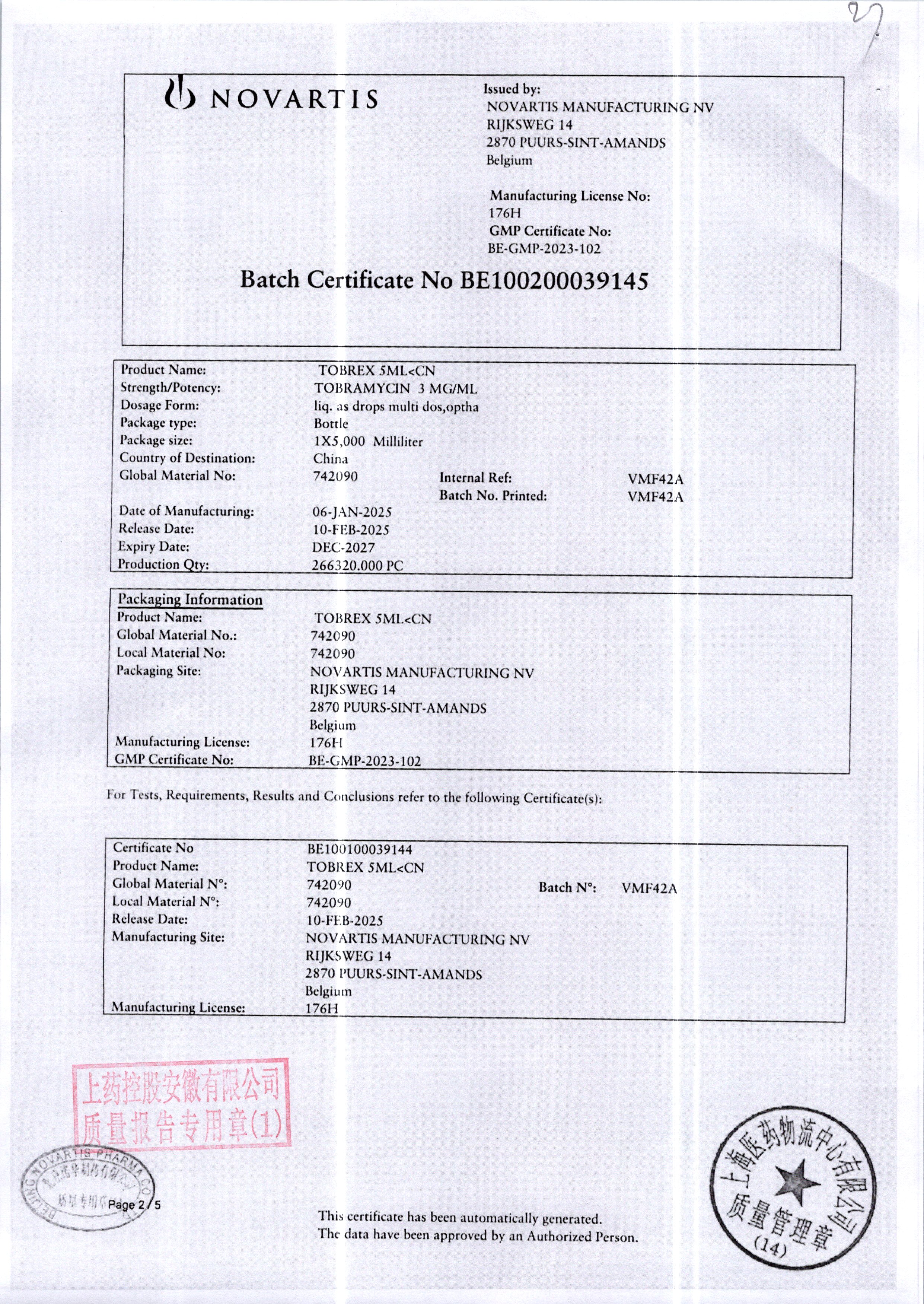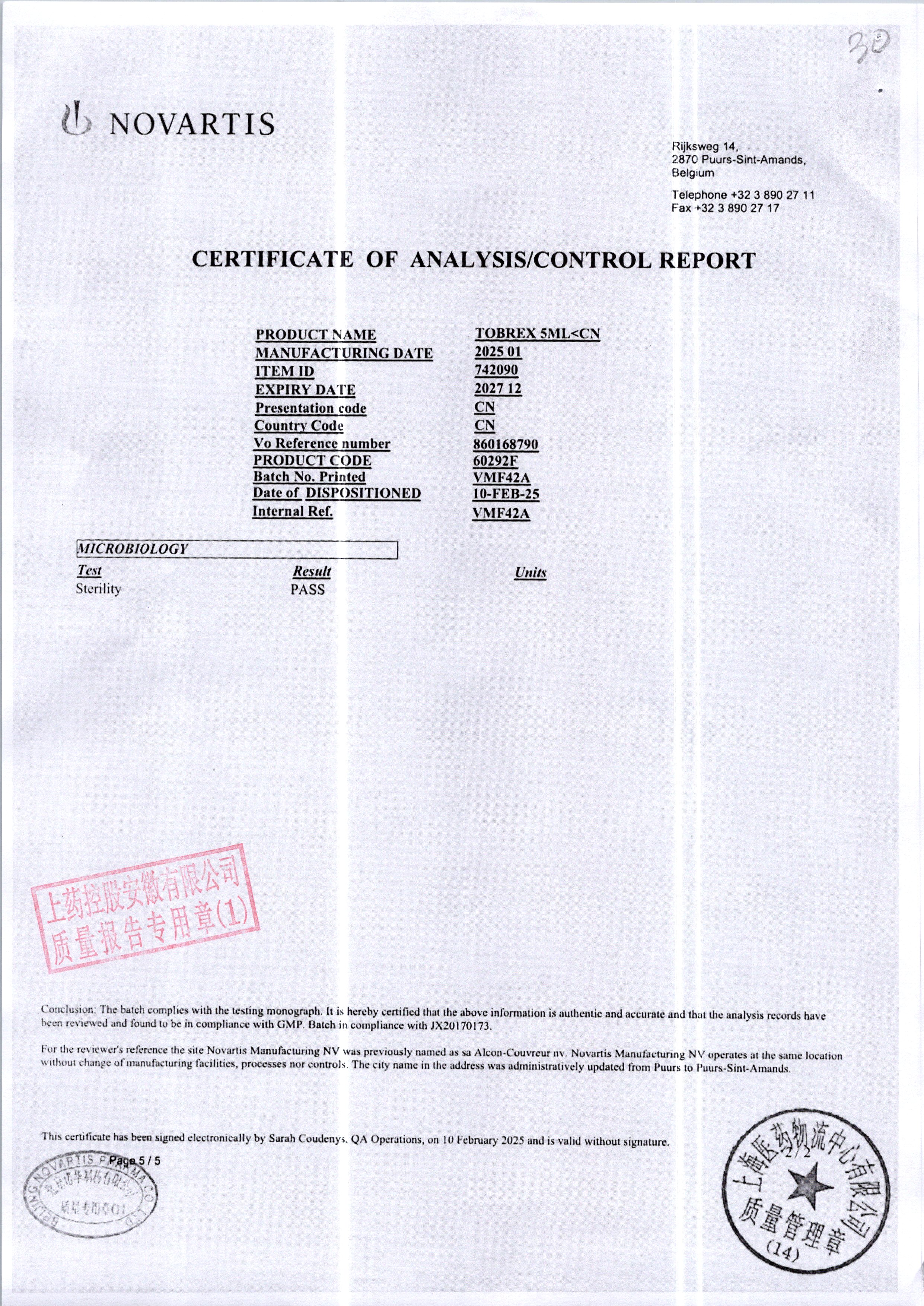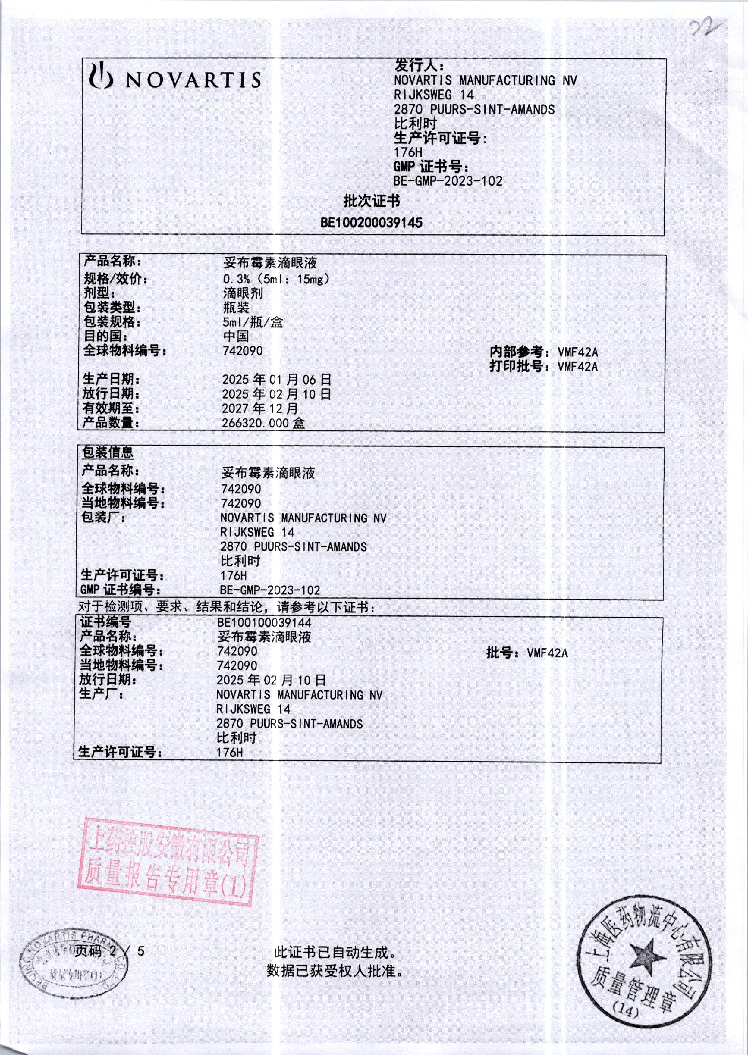 | 妥布霉素滴眼液(托百士) | 5ml | VMF42A/8 | 查看详情 |