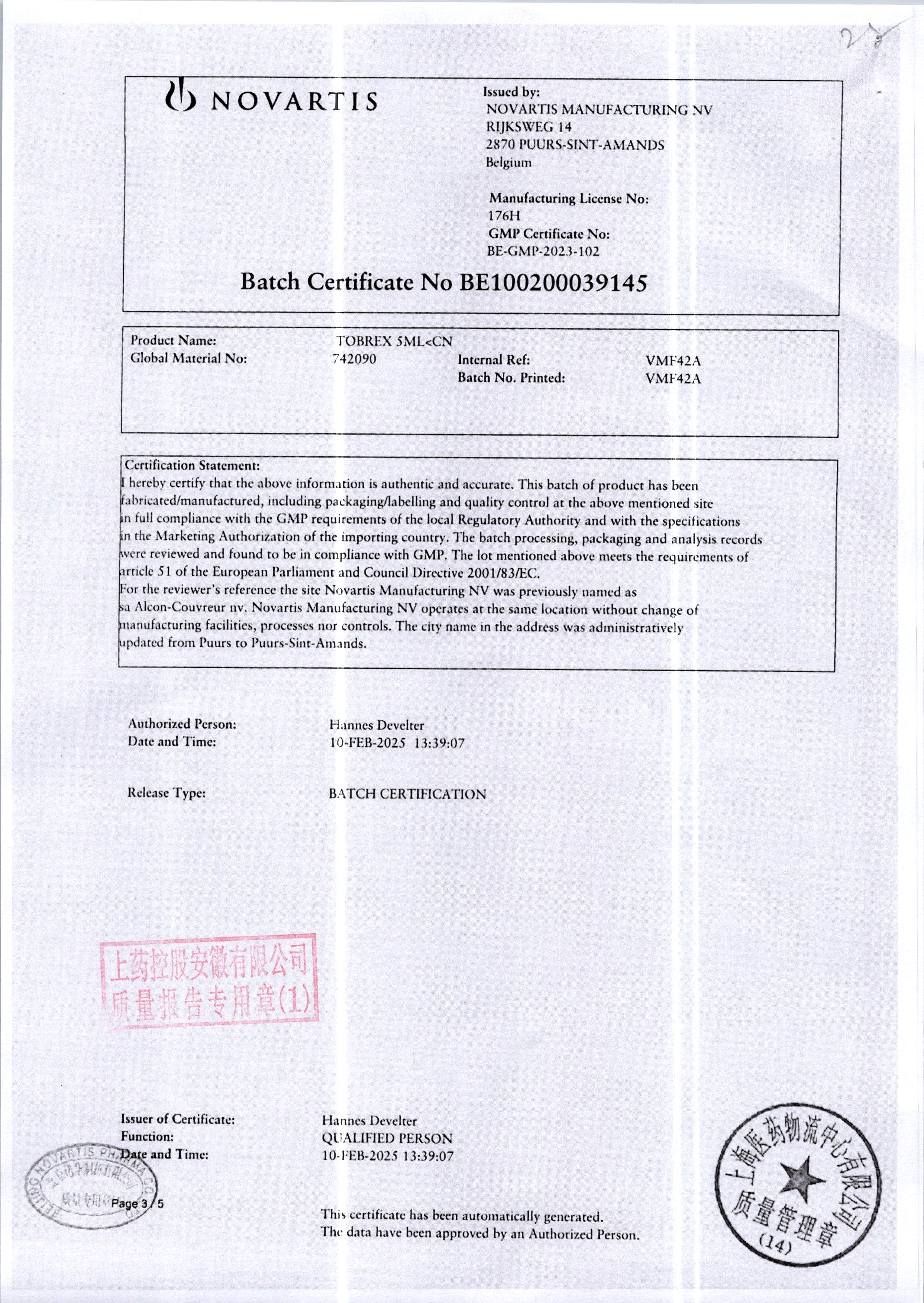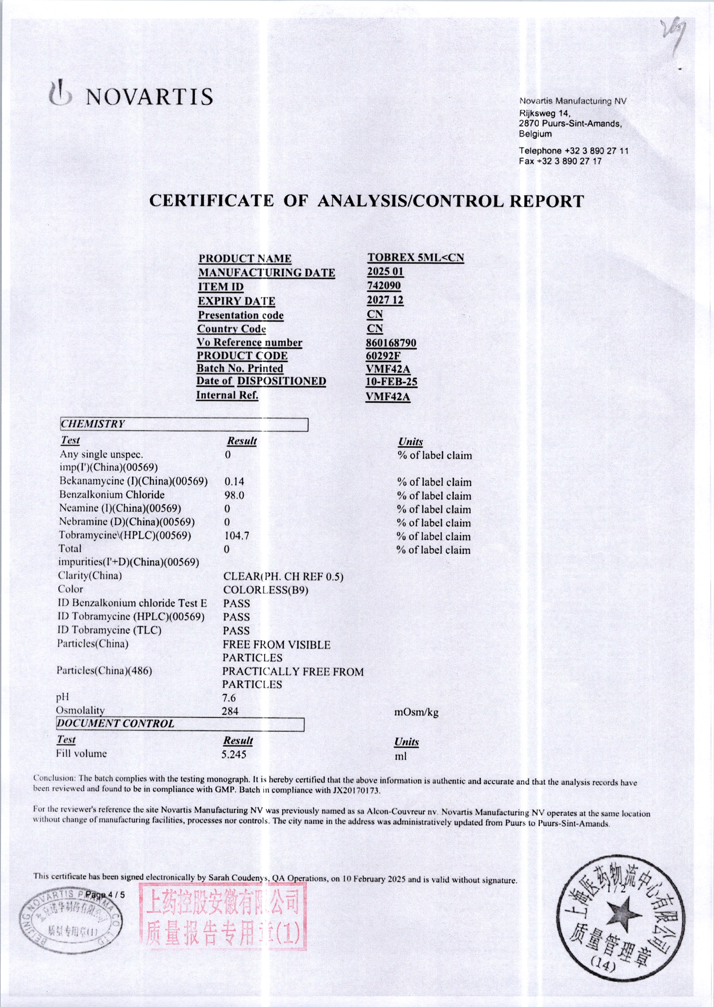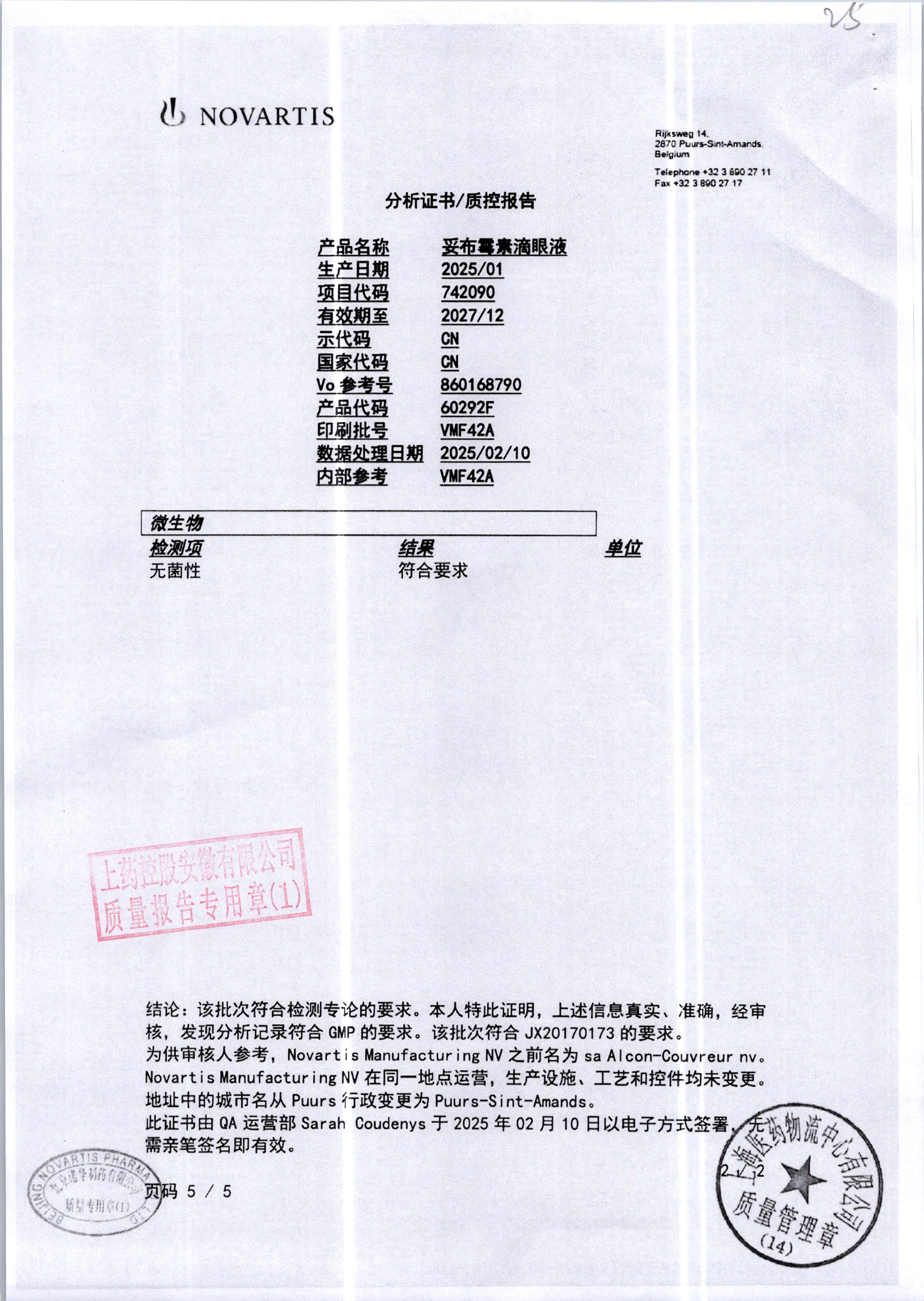 | 妥布霉素滴眼液(托百士) | 5ml | VMF42A/8 | 查看详情 |