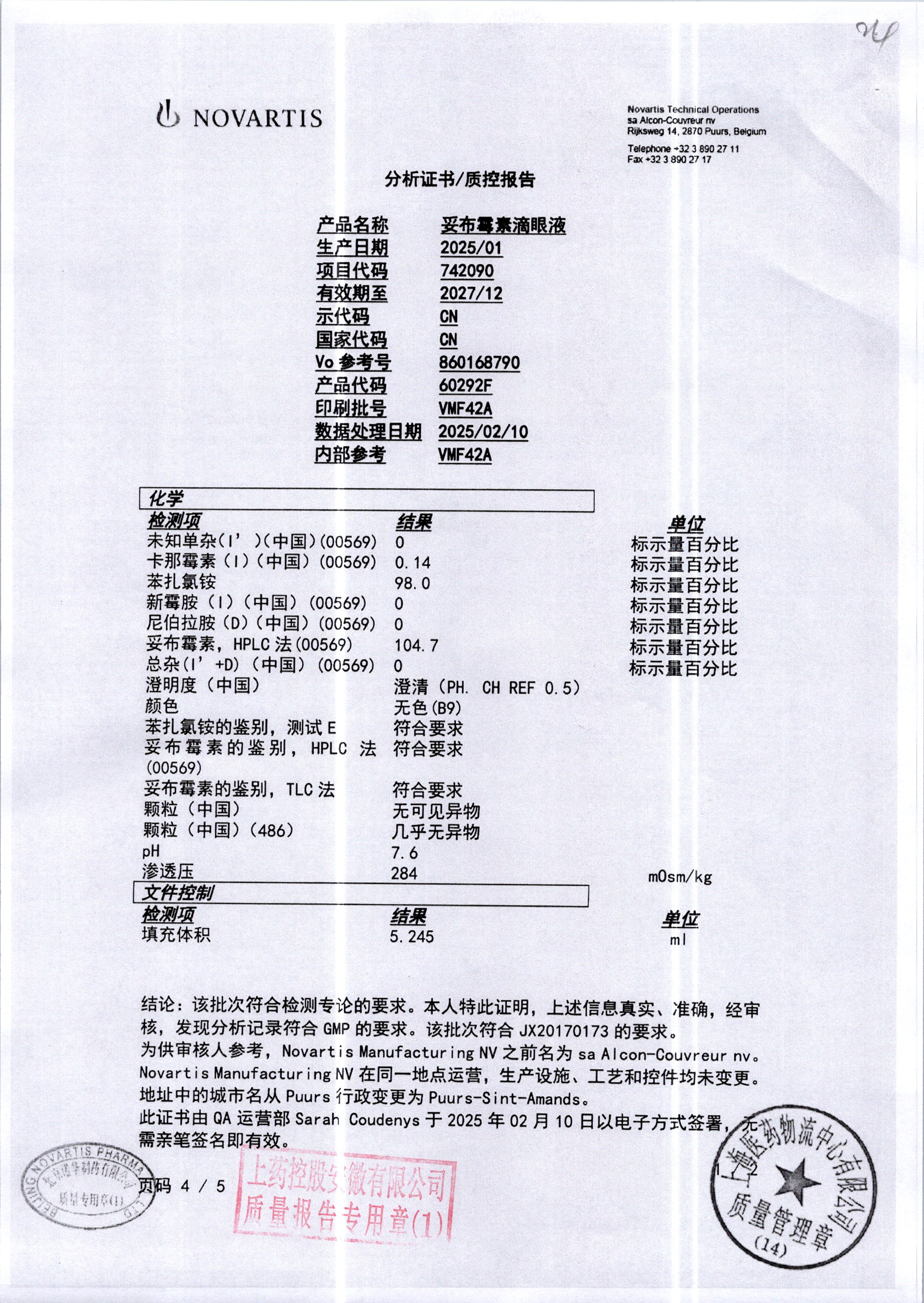 | 妥布霉素滴眼液(托百士) | 5ml | VMF42A/4 | 查看详情 |