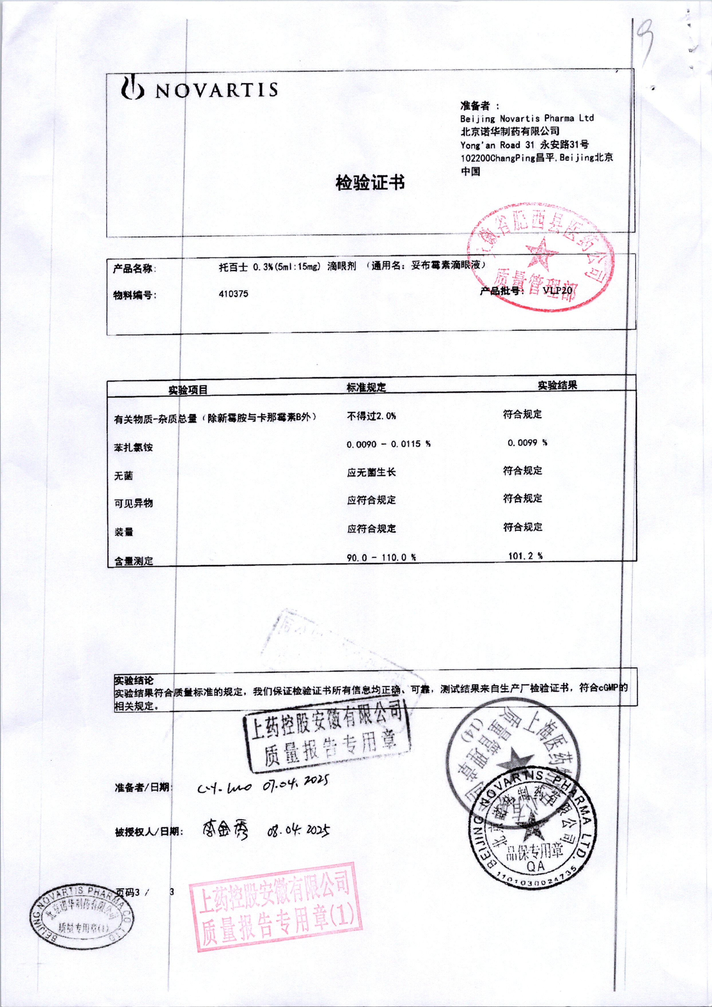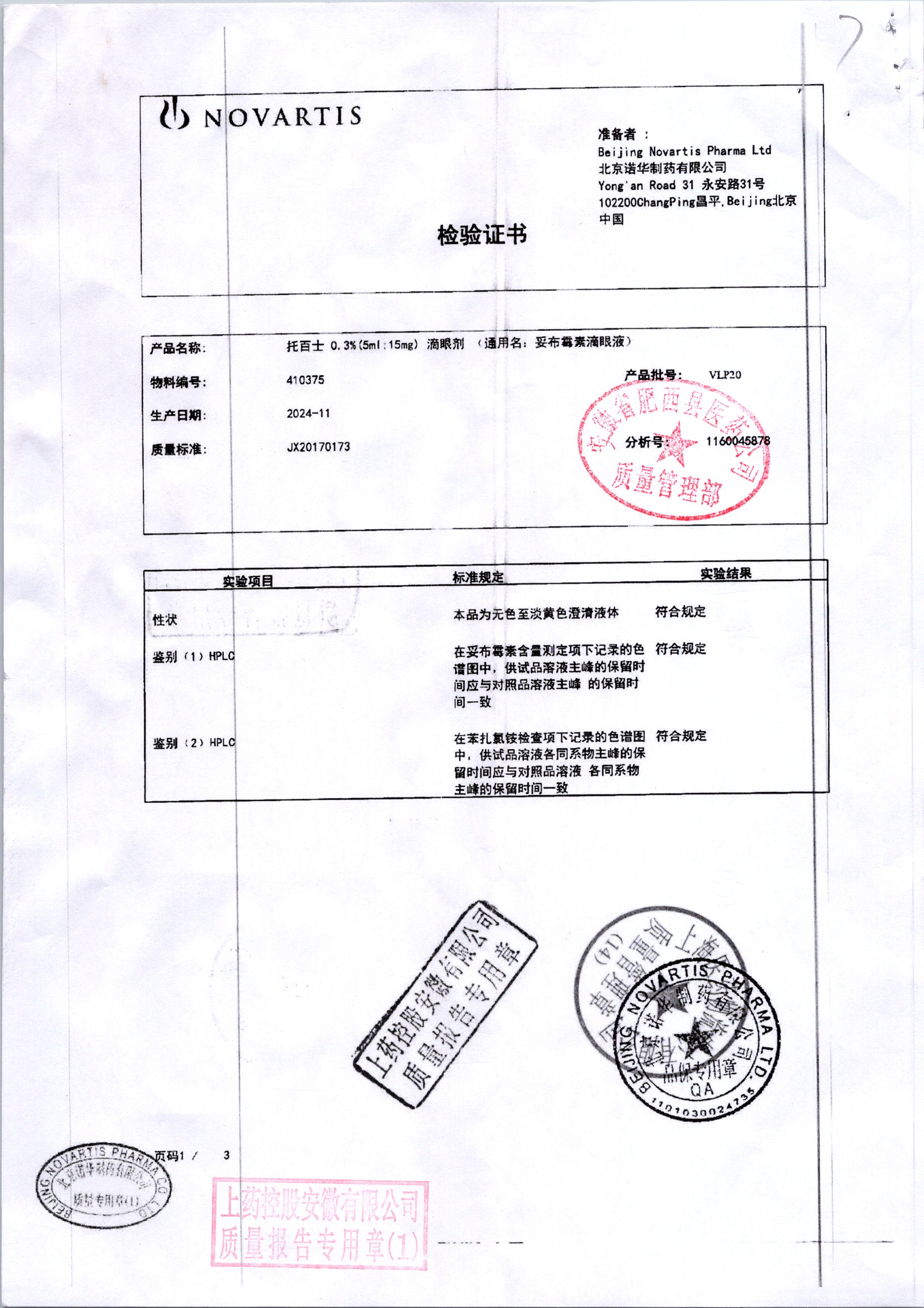 | 妥布霉素滴眼液(托百士) | 5ml | VLP20/4 | 查看详情 |