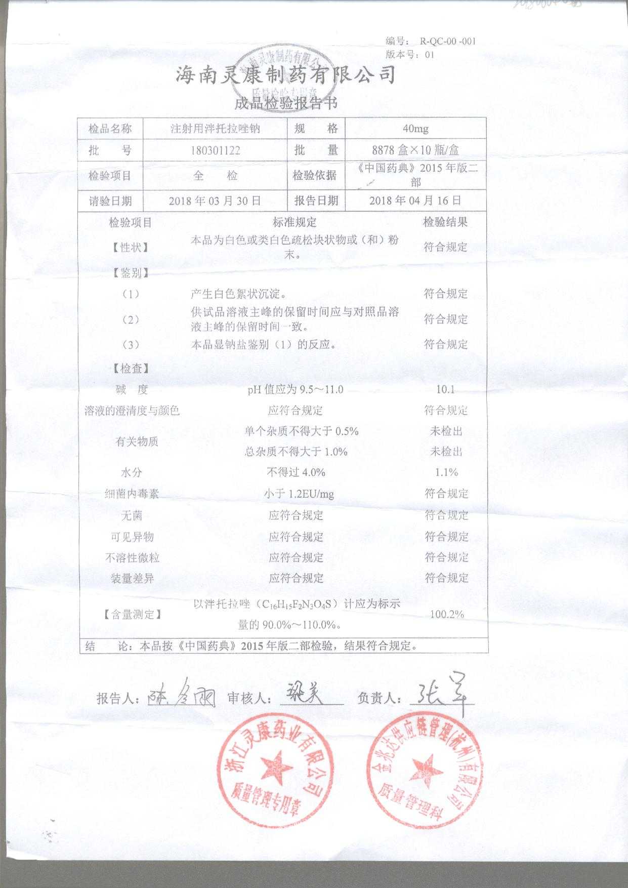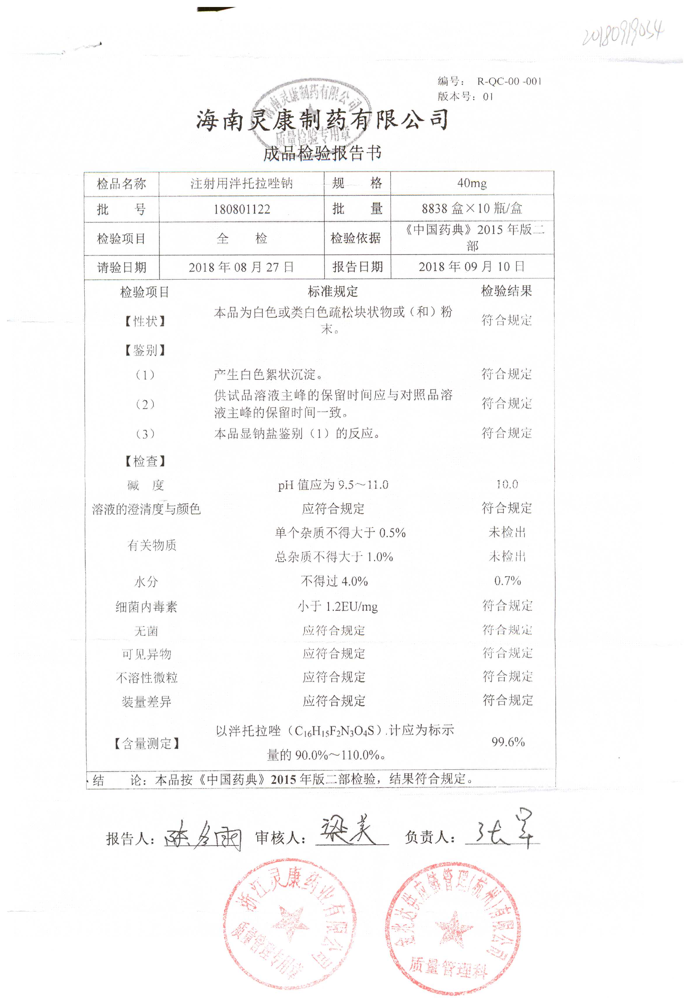 | 注射用泮托拉唑钠 | 40mg | 180801122 | 查看详情 |