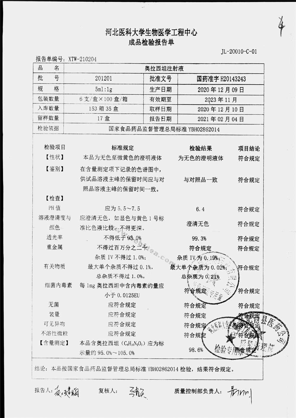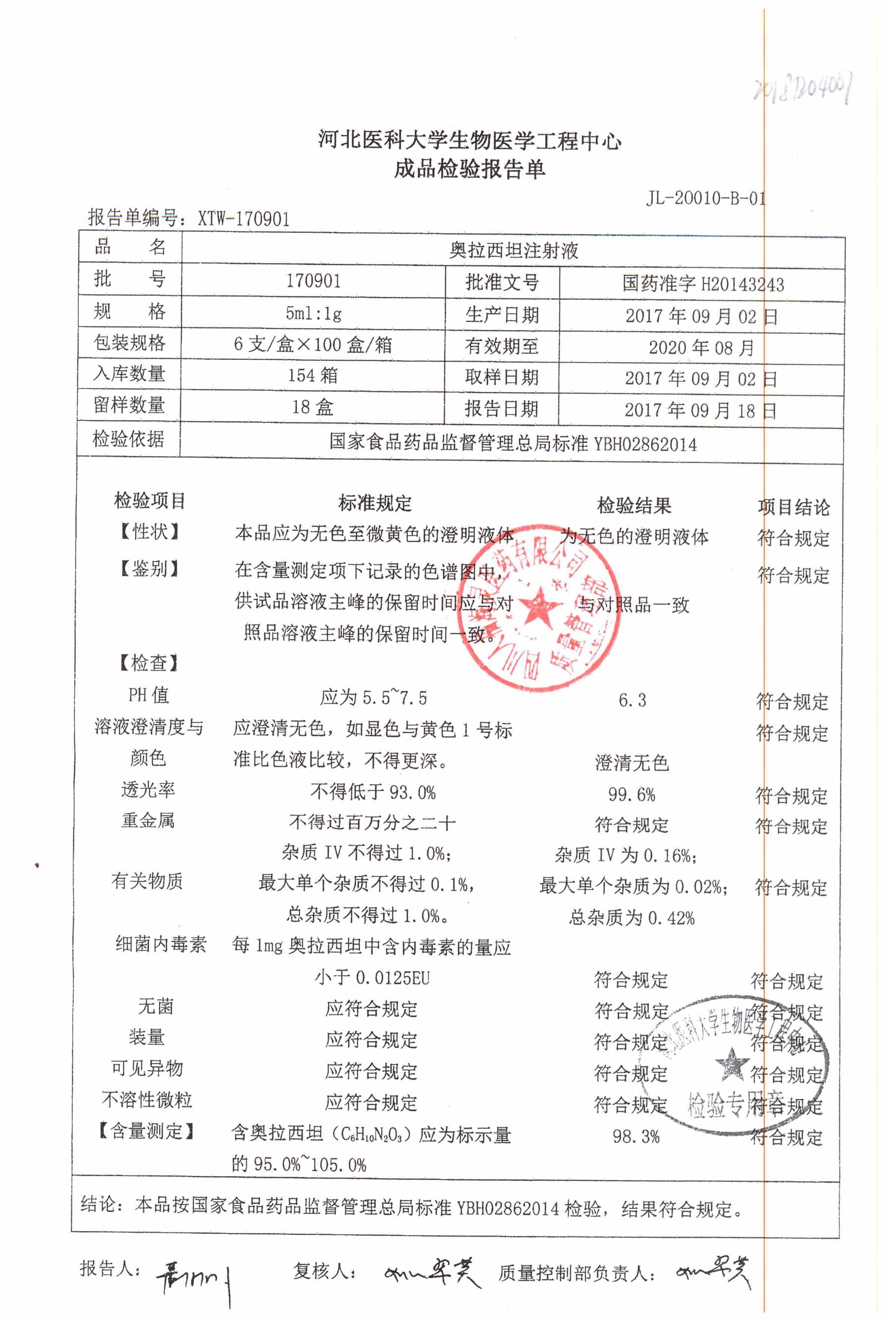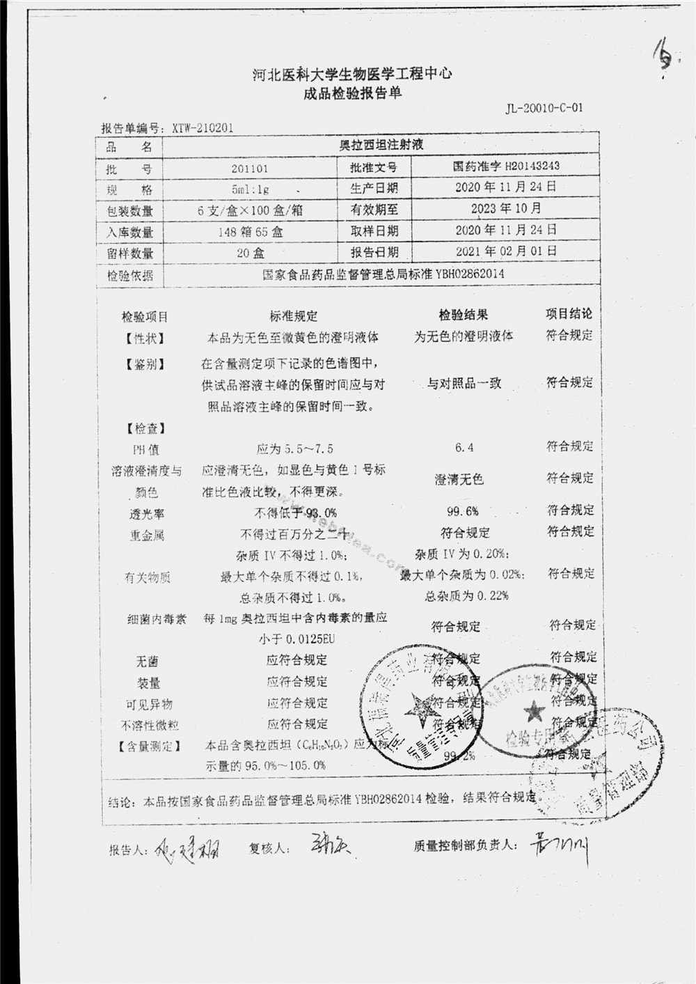 | 奥拉西坦注射液 | 5ml:1g*6支 | 201206 | 查看详情 |