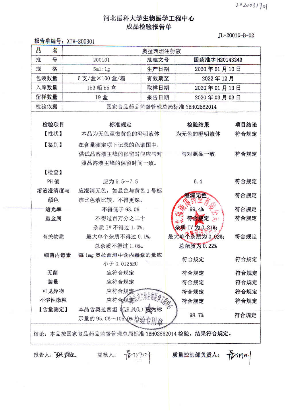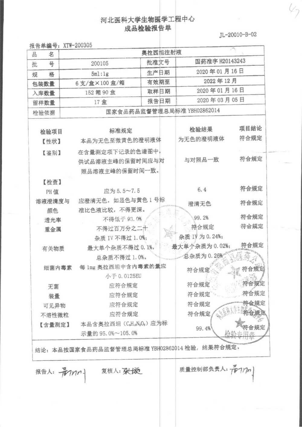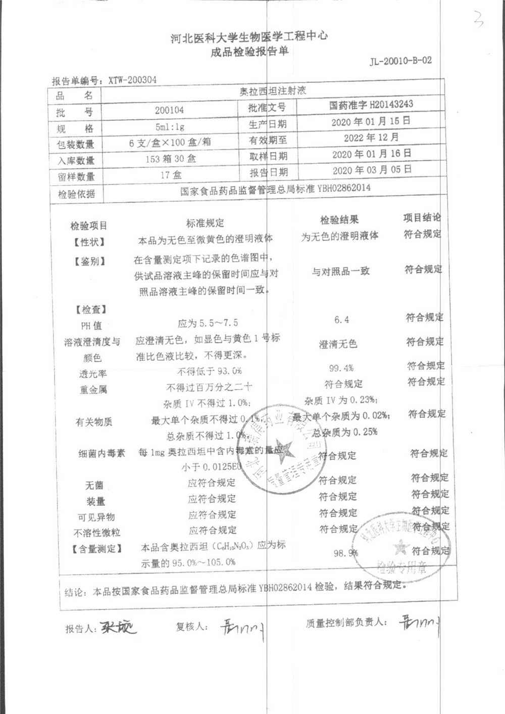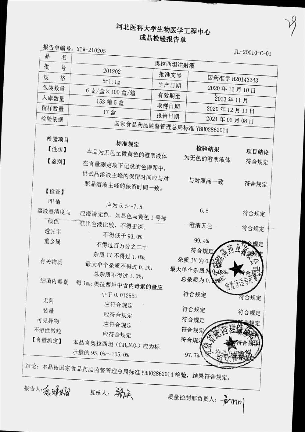 | 奥拉西坦注射液 | 5ml:1g*6支 | 201206 | 查看详情 |