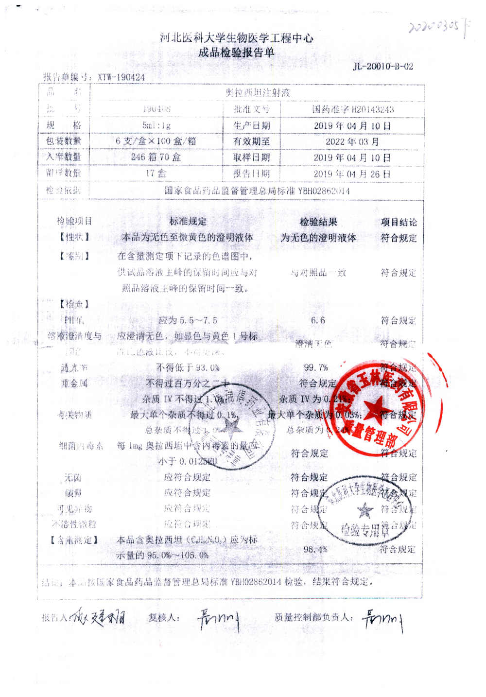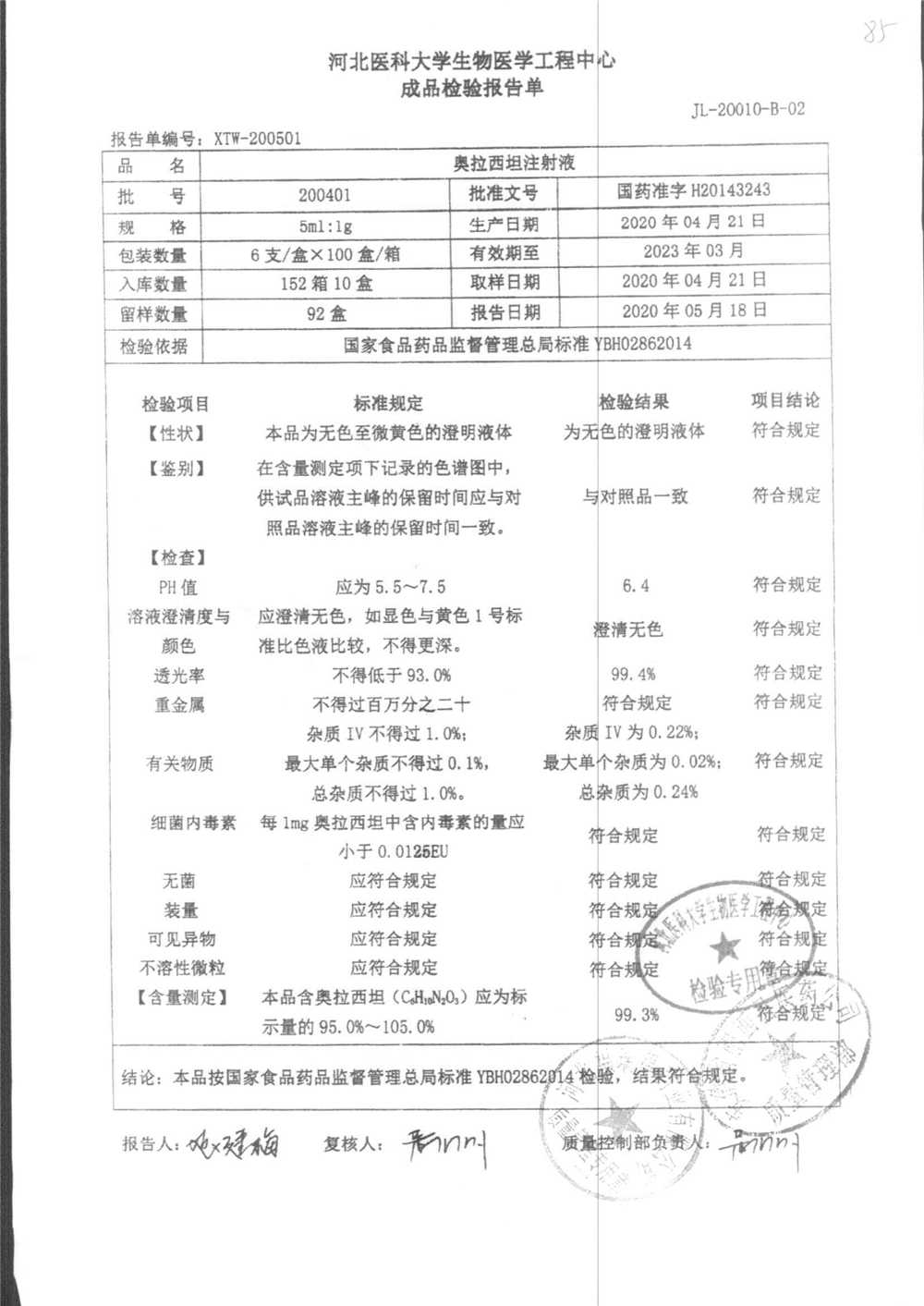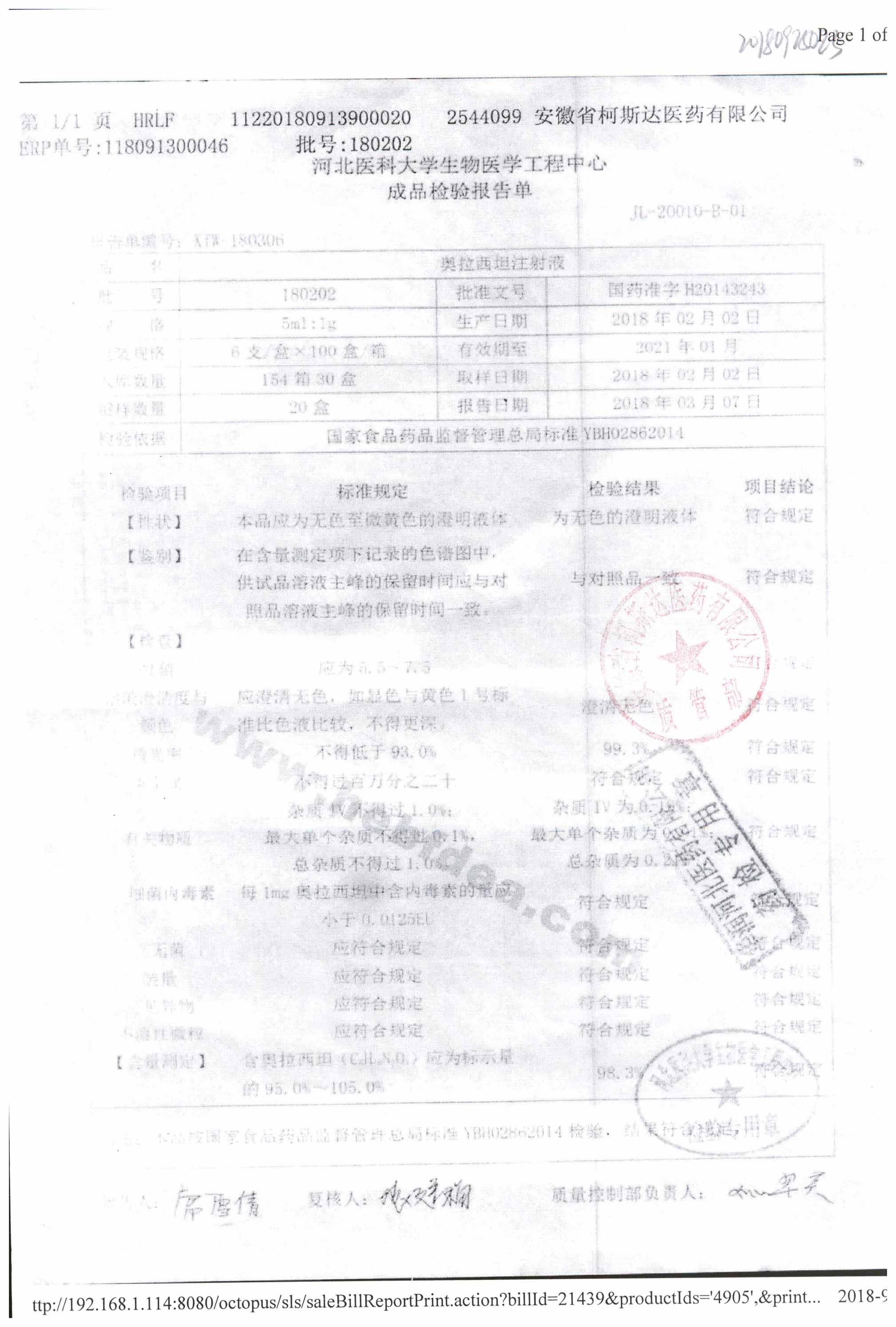 | 名称 | 规格 | 批号 | 药检报告 |