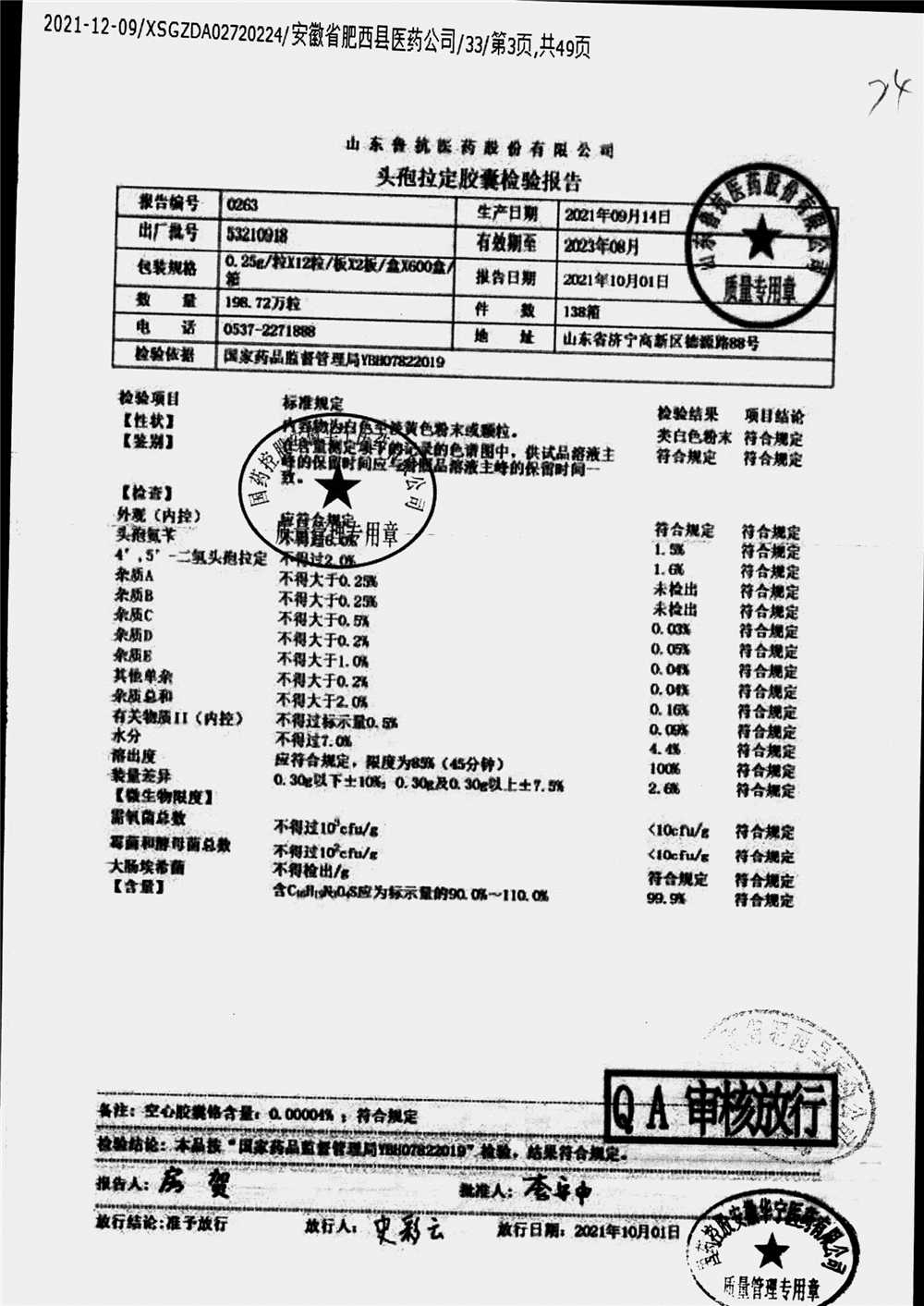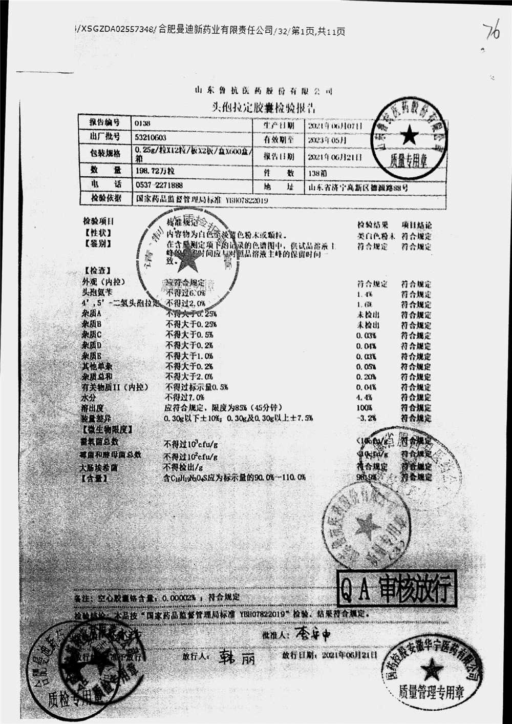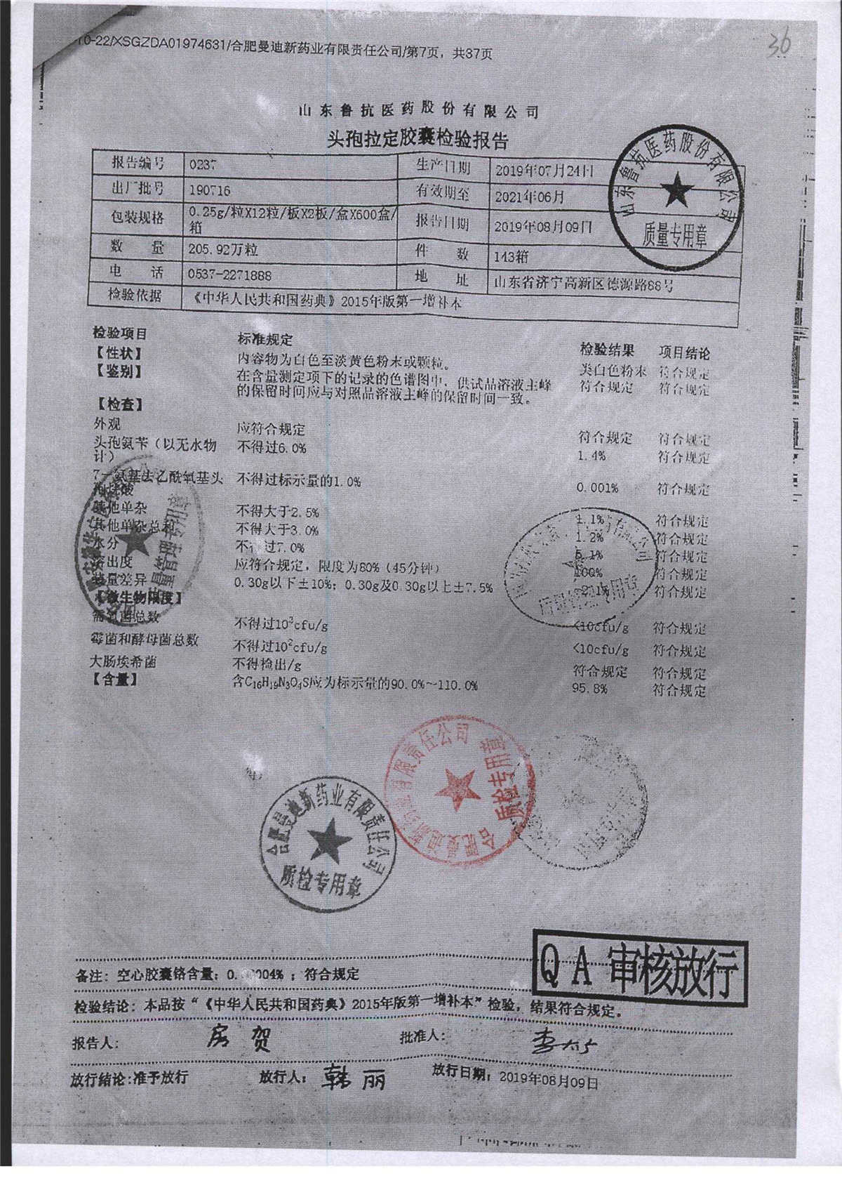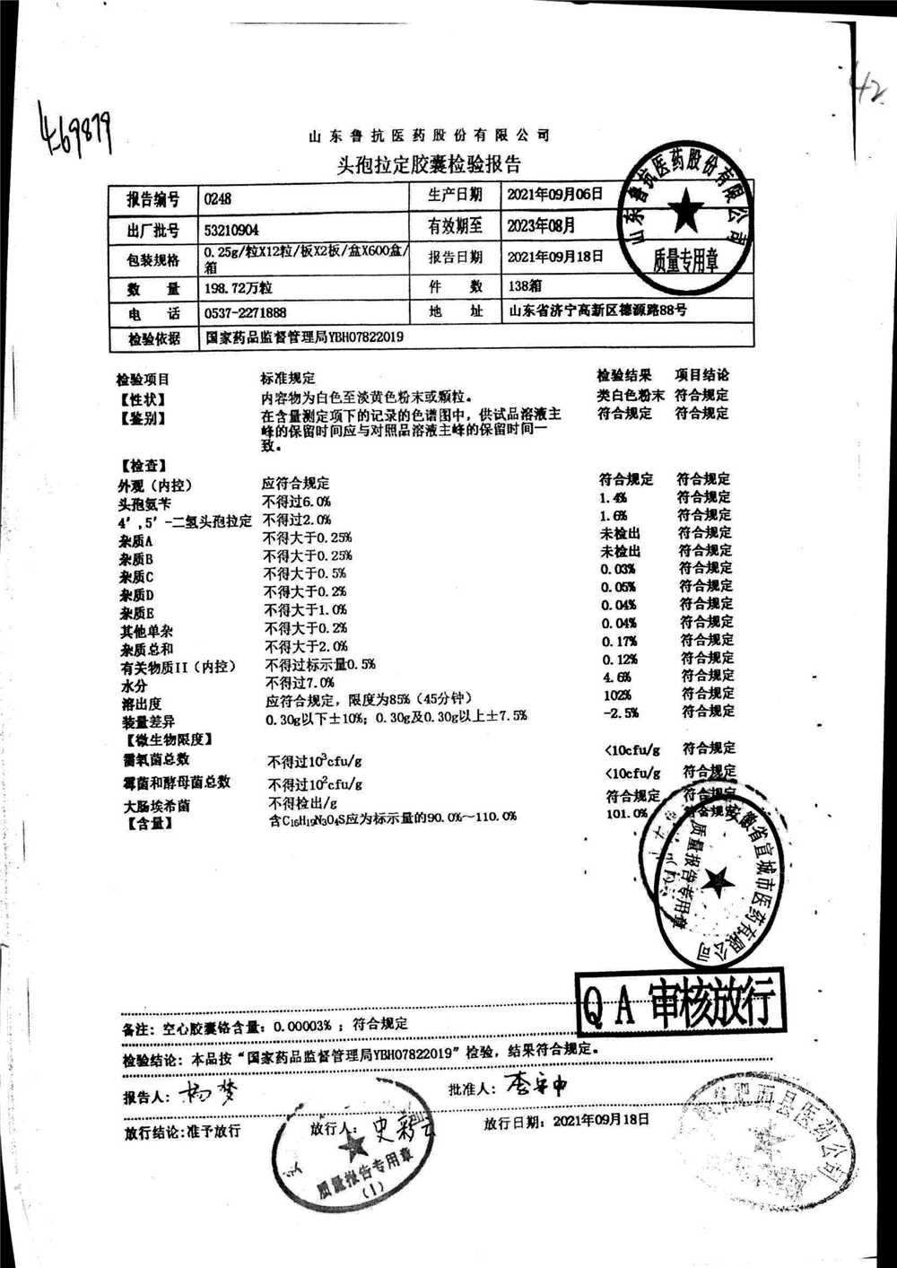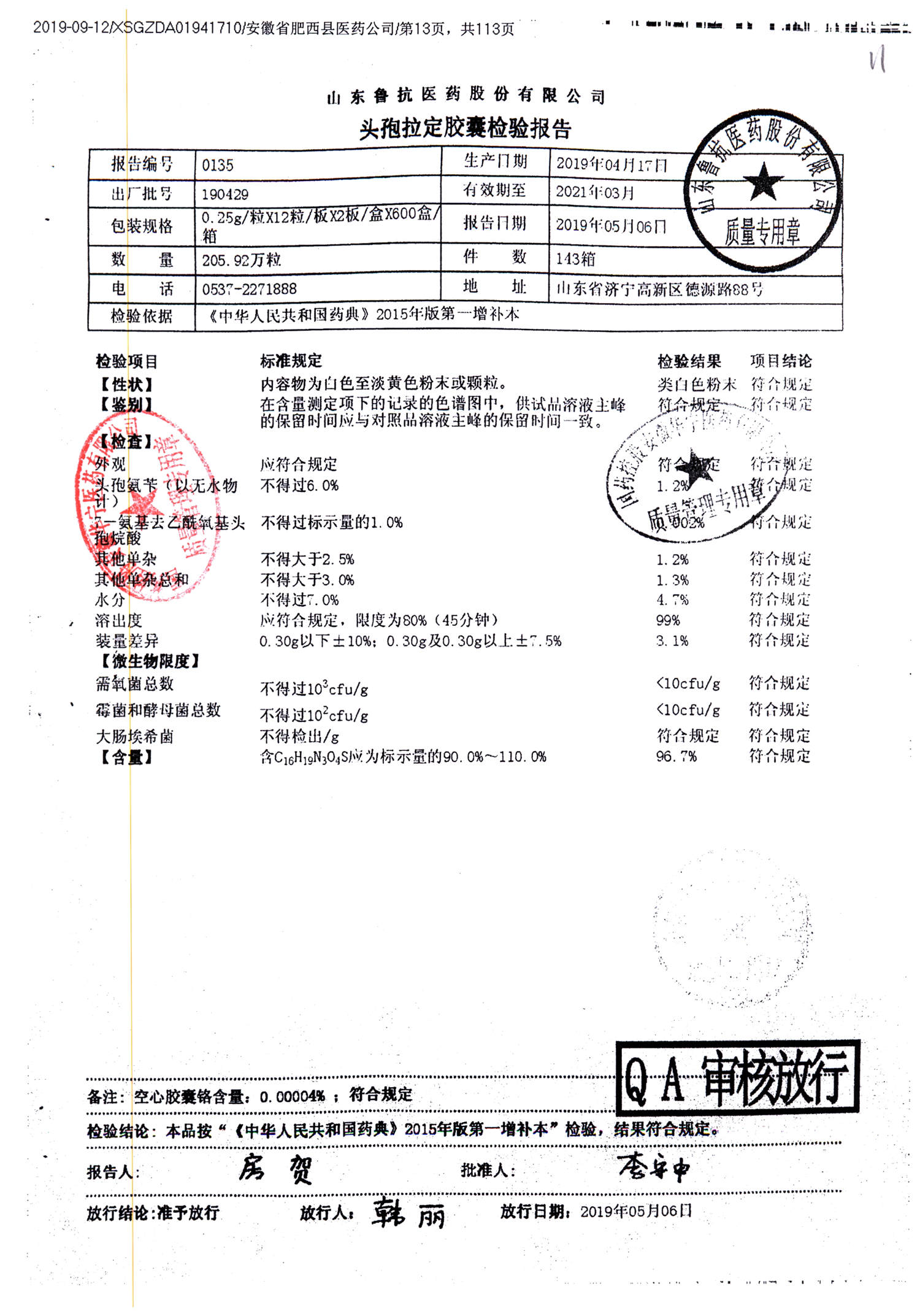 | 头孢拉定胶囊 | 0.25g*24粒 | 190613 | 查看详情 |