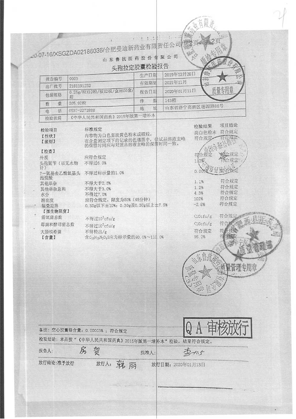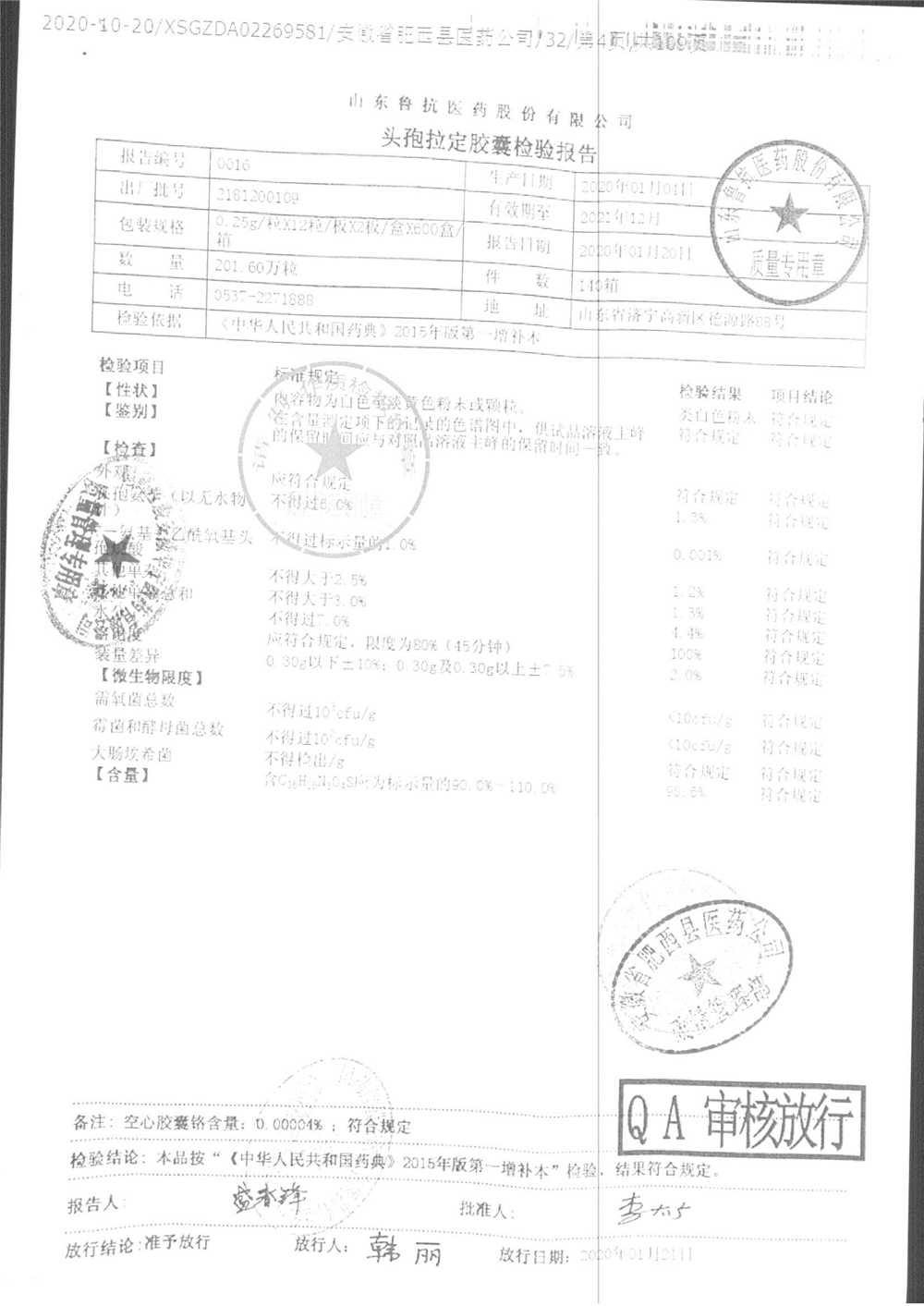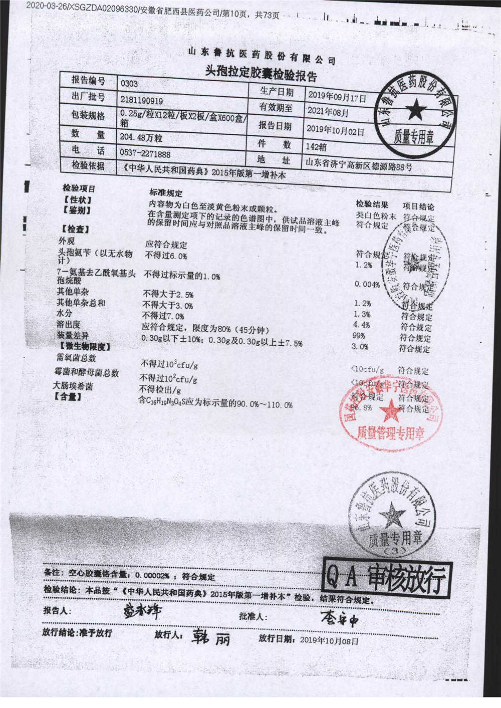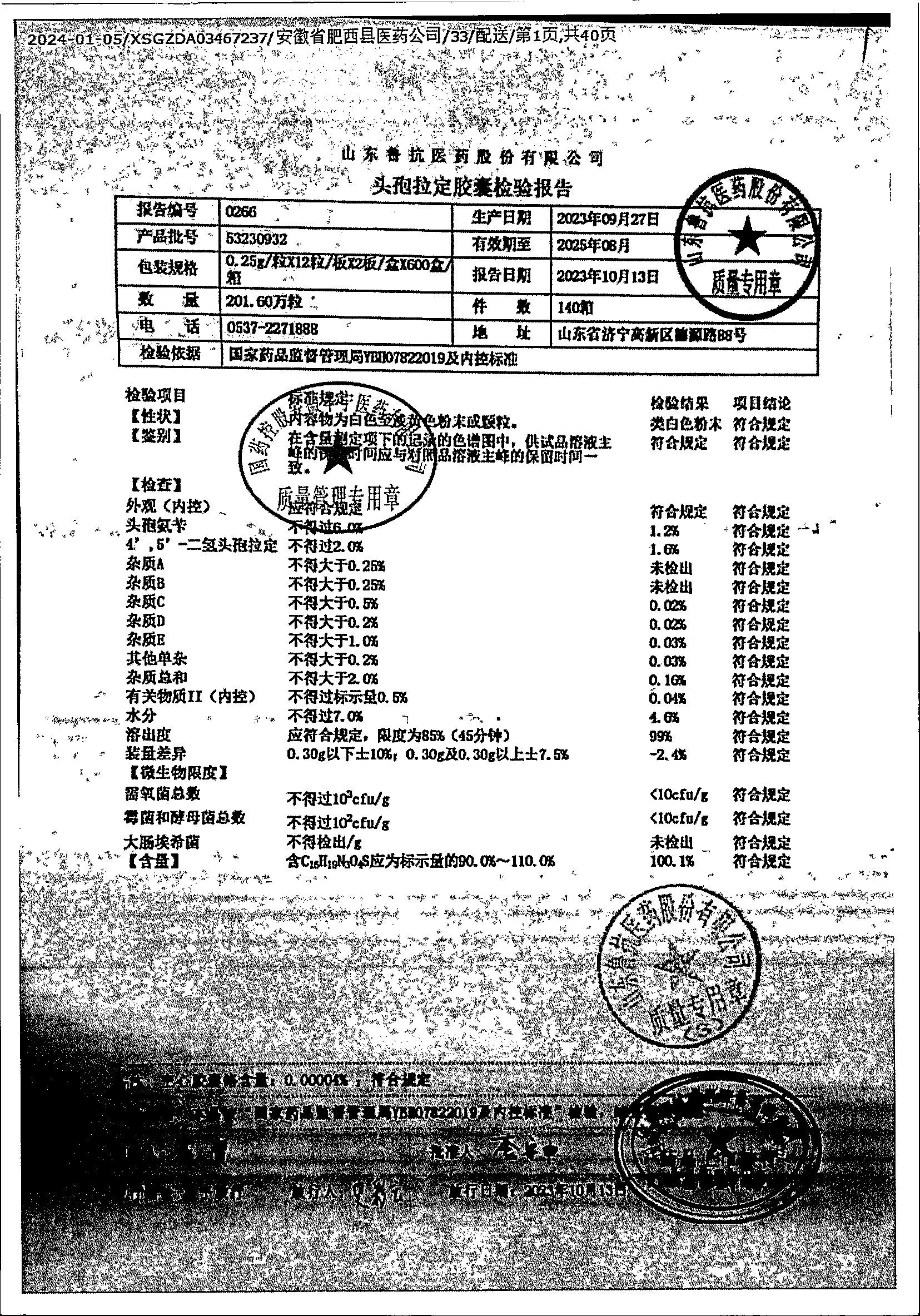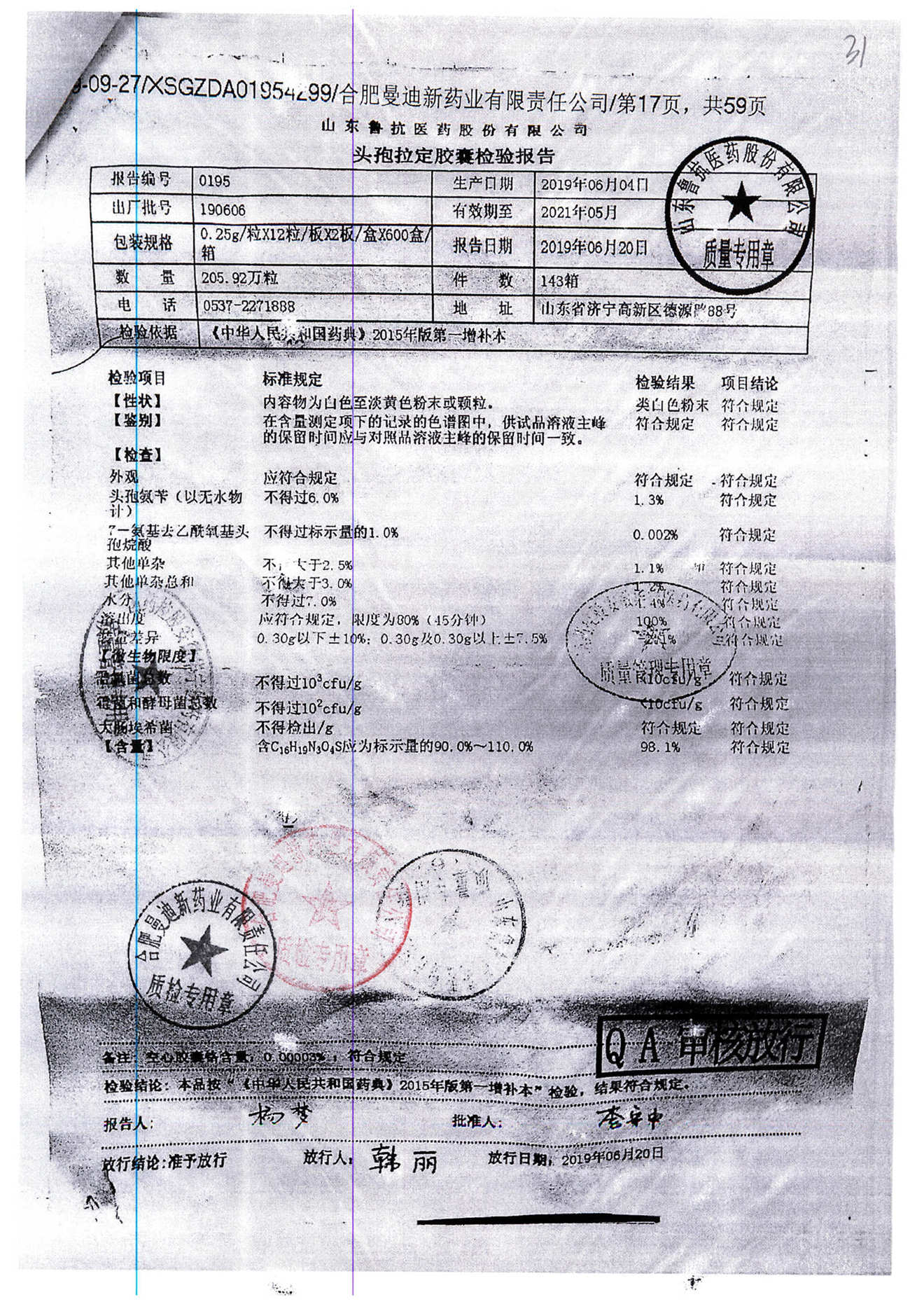 | 头孢拉定胶囊 | 0.25g*24粒 | 190429 | 查看详情 |