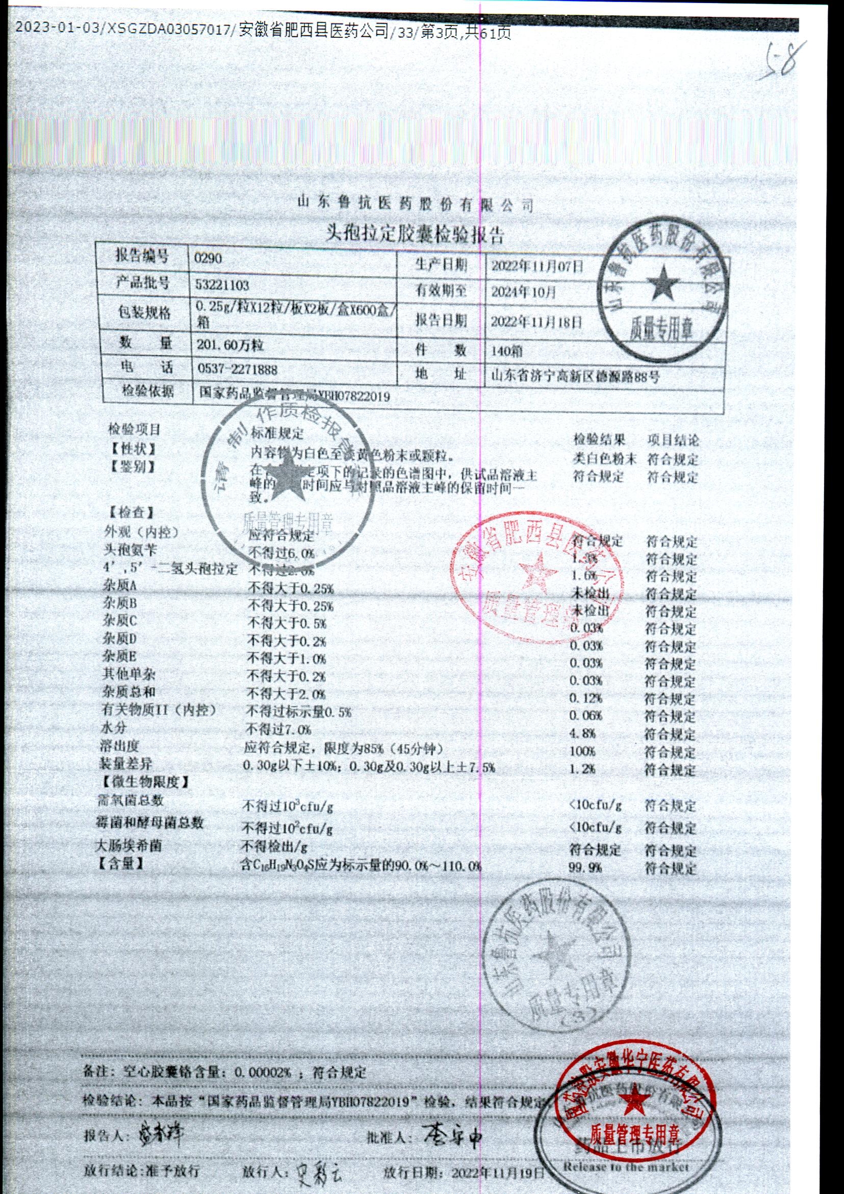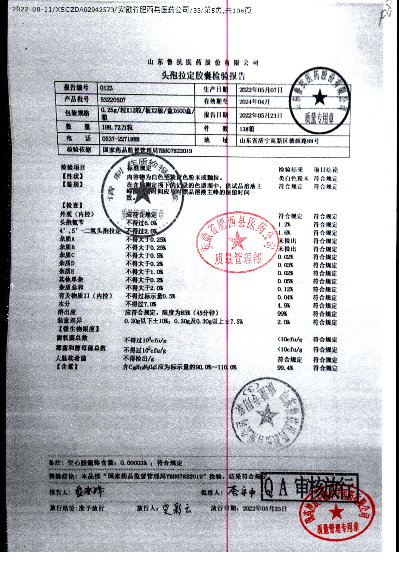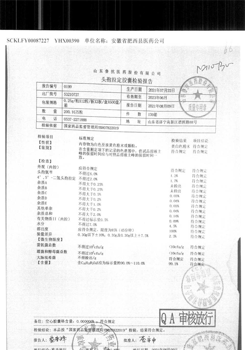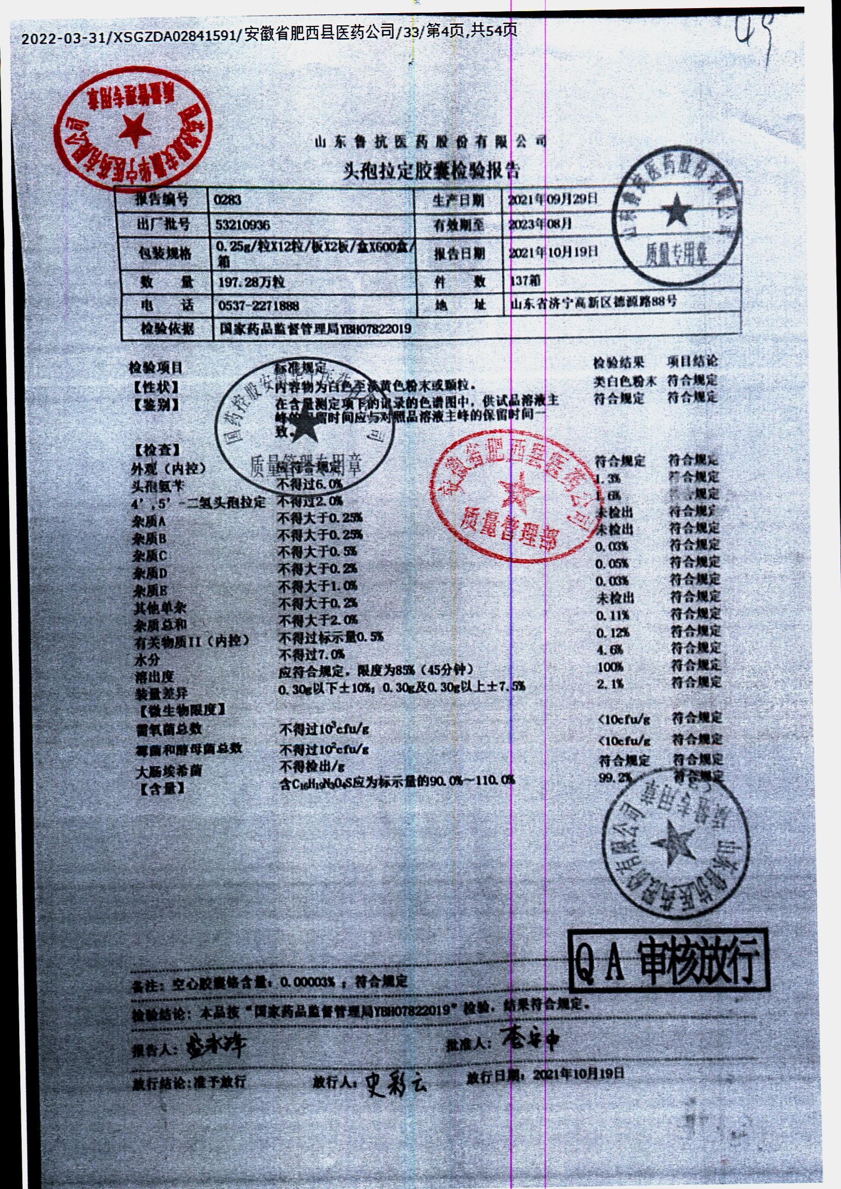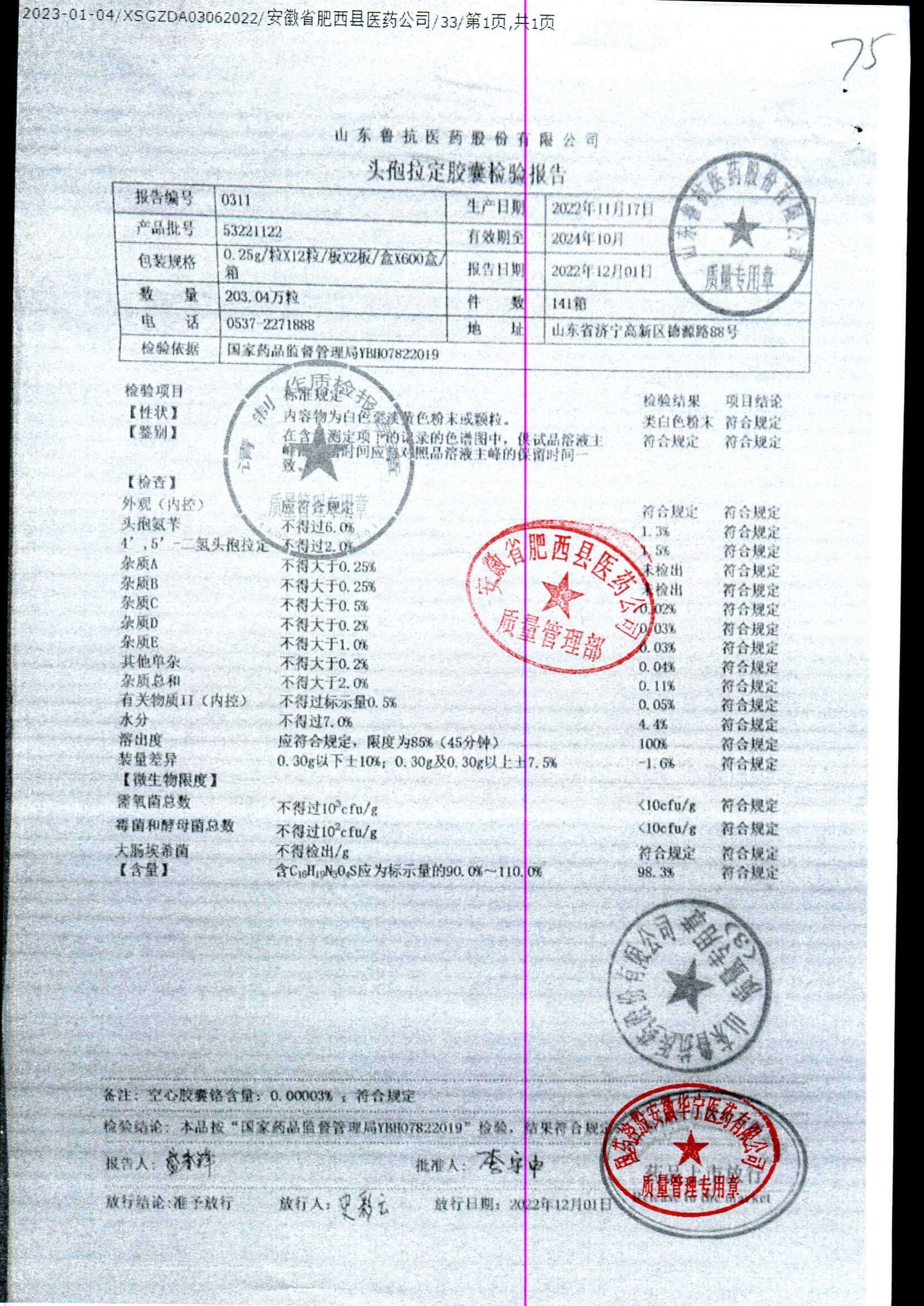 | 头孢拉定胶囊 | 0.25g*24粒 | 190429 | 查看详情 |