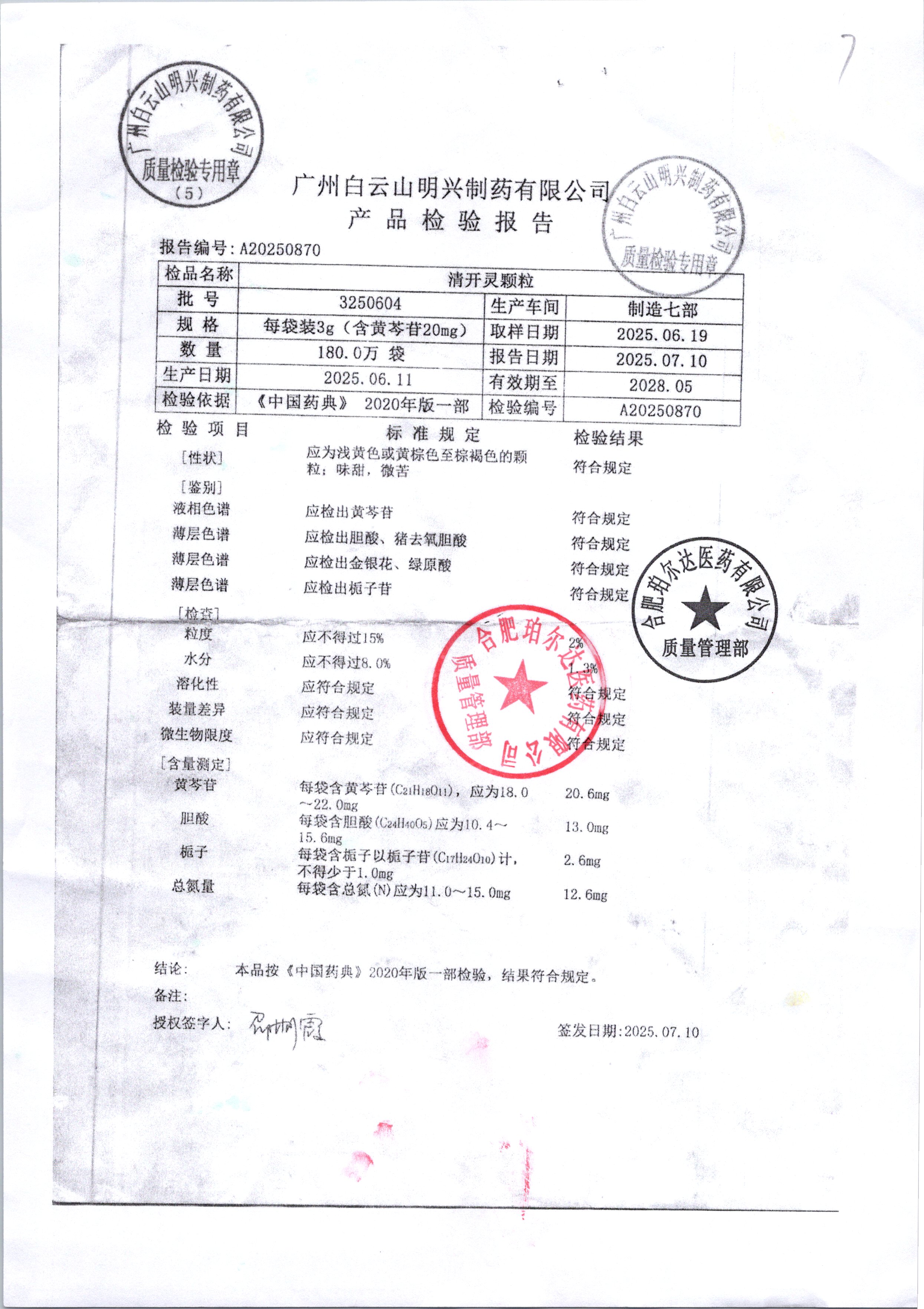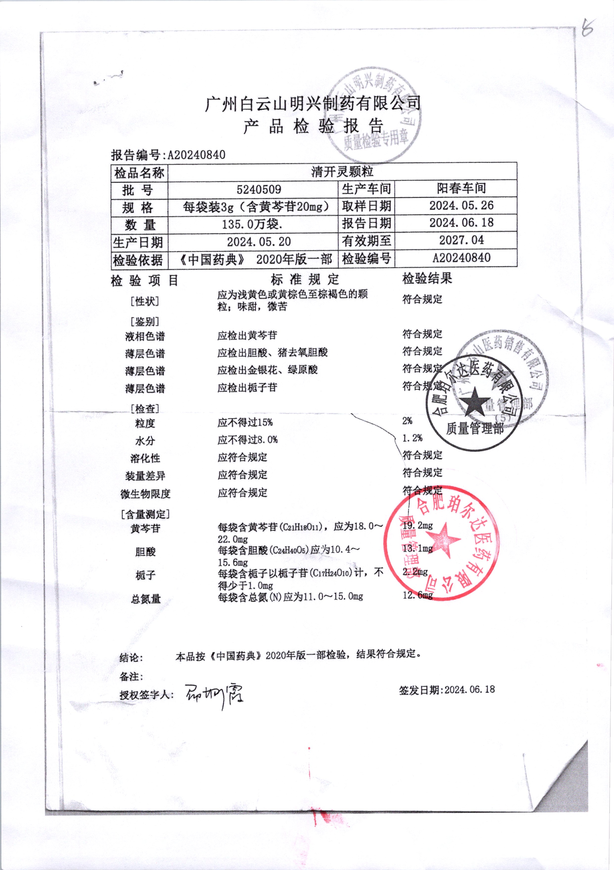 | 清开灵颗粒 | 3g | 5230903 | 查看详情 |