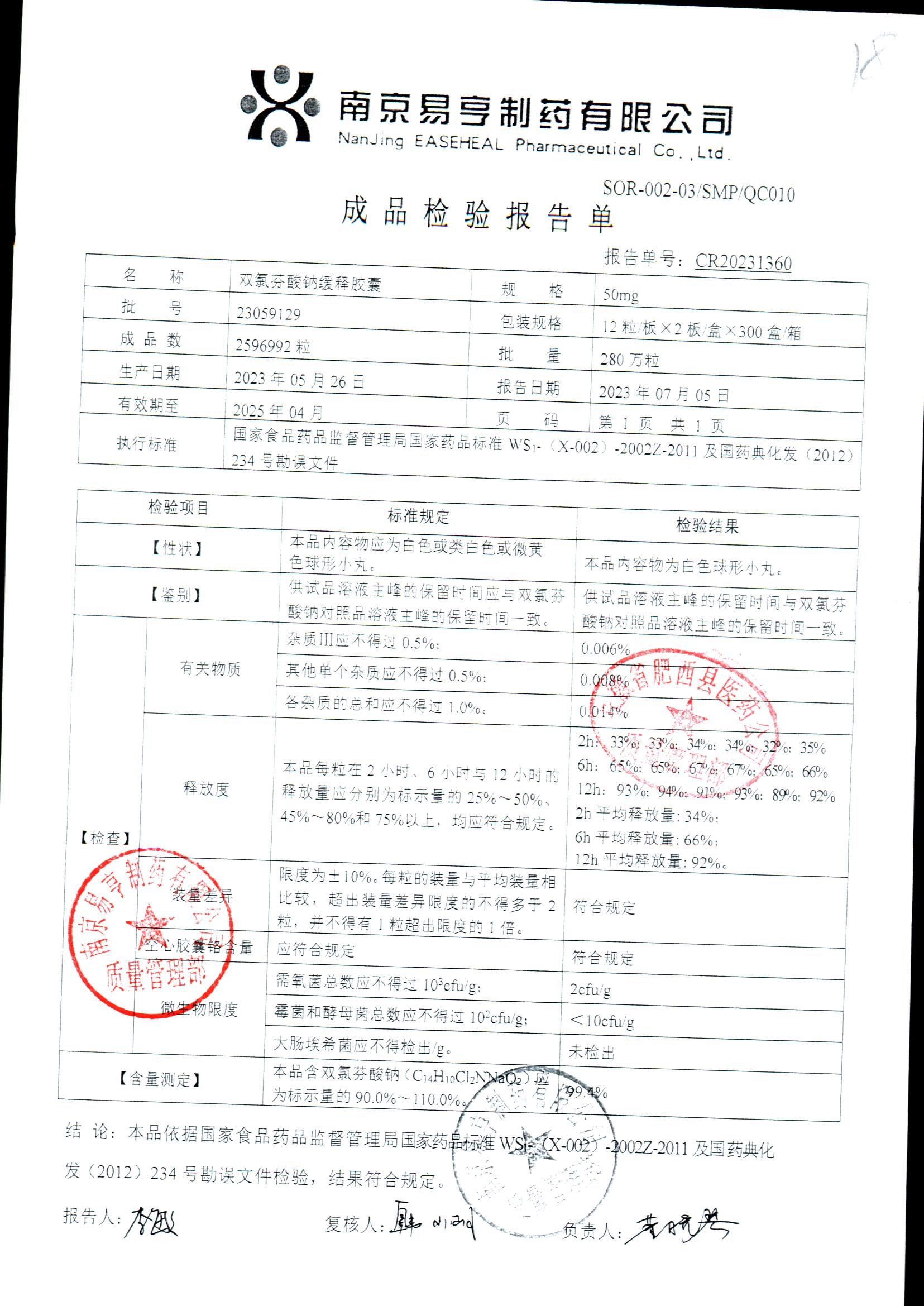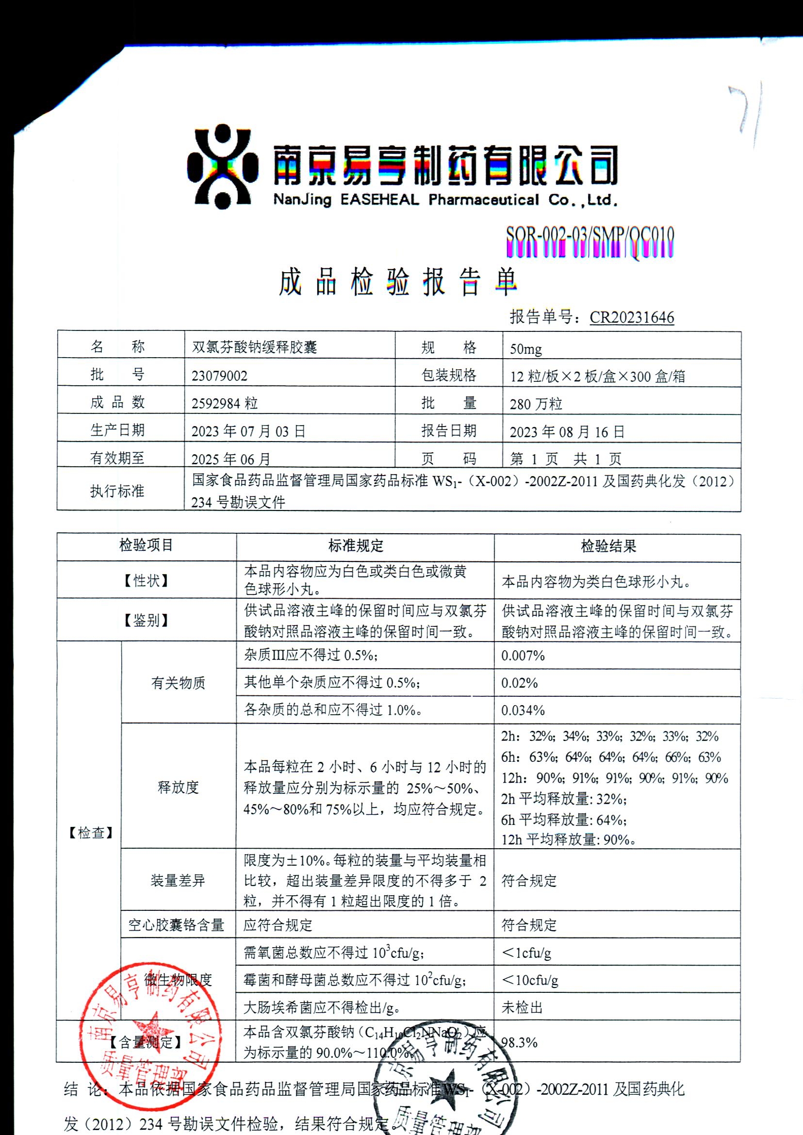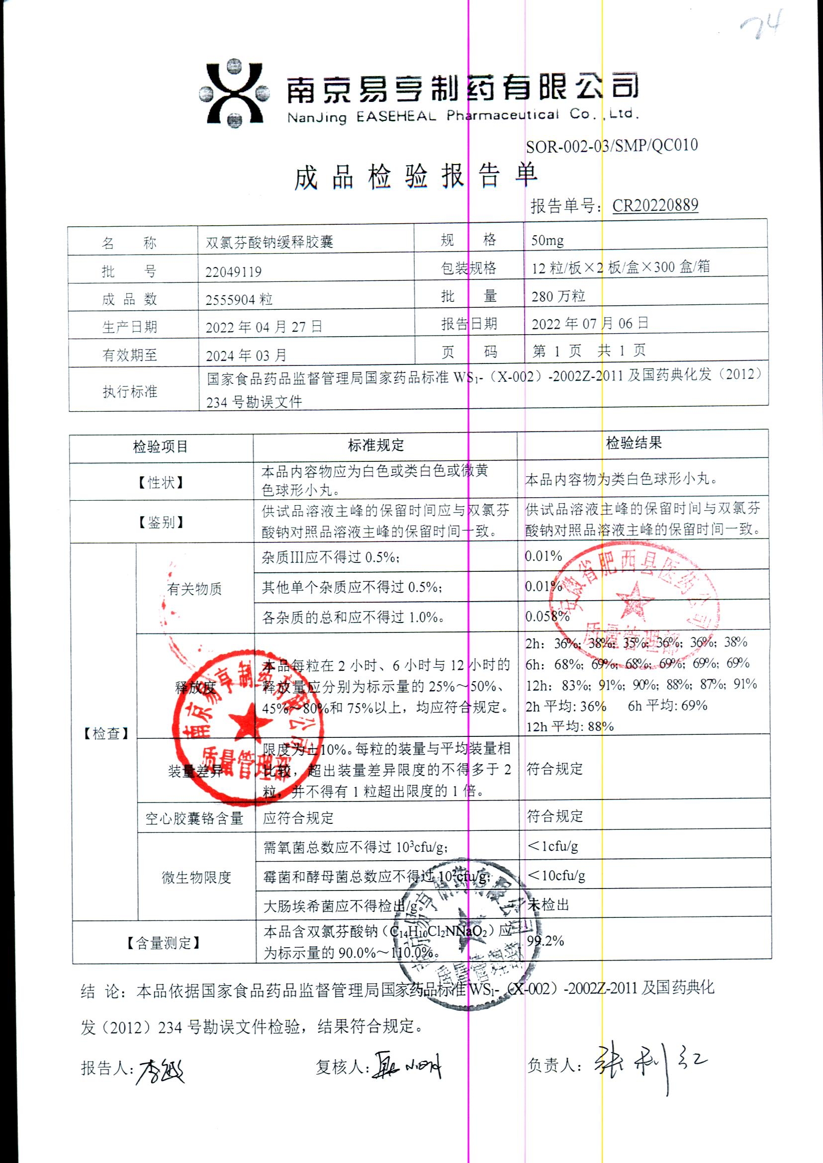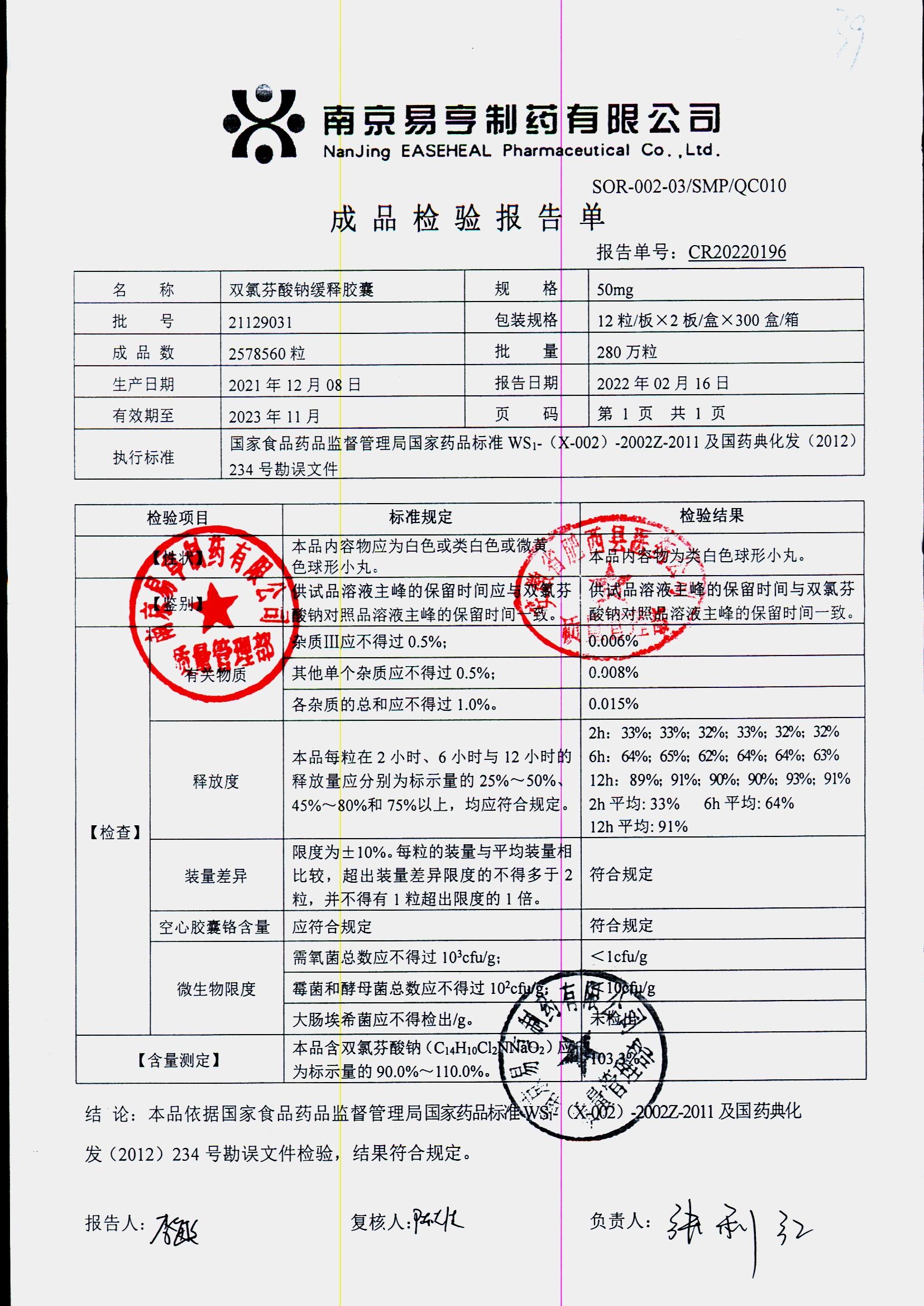 | Ë«ÂÈ·ÒËáÄÆ»ºÊͽºÄÒ | 50mg*24Á£/ºÐ | 2401A011 | ²é¿´ÏêÇé |