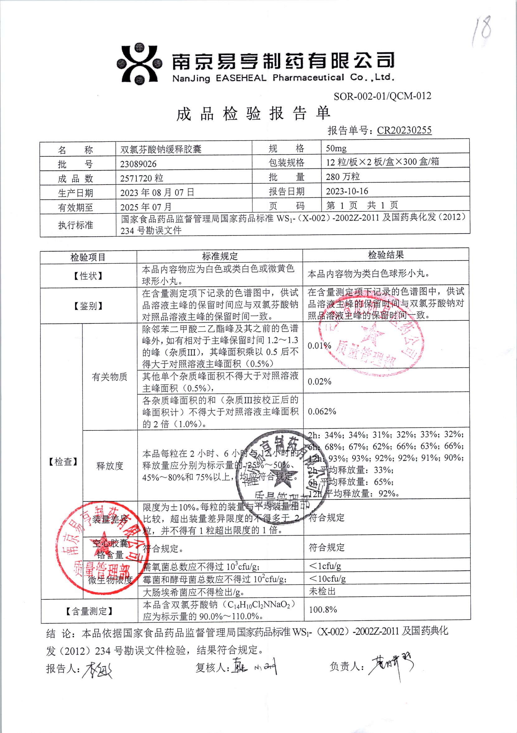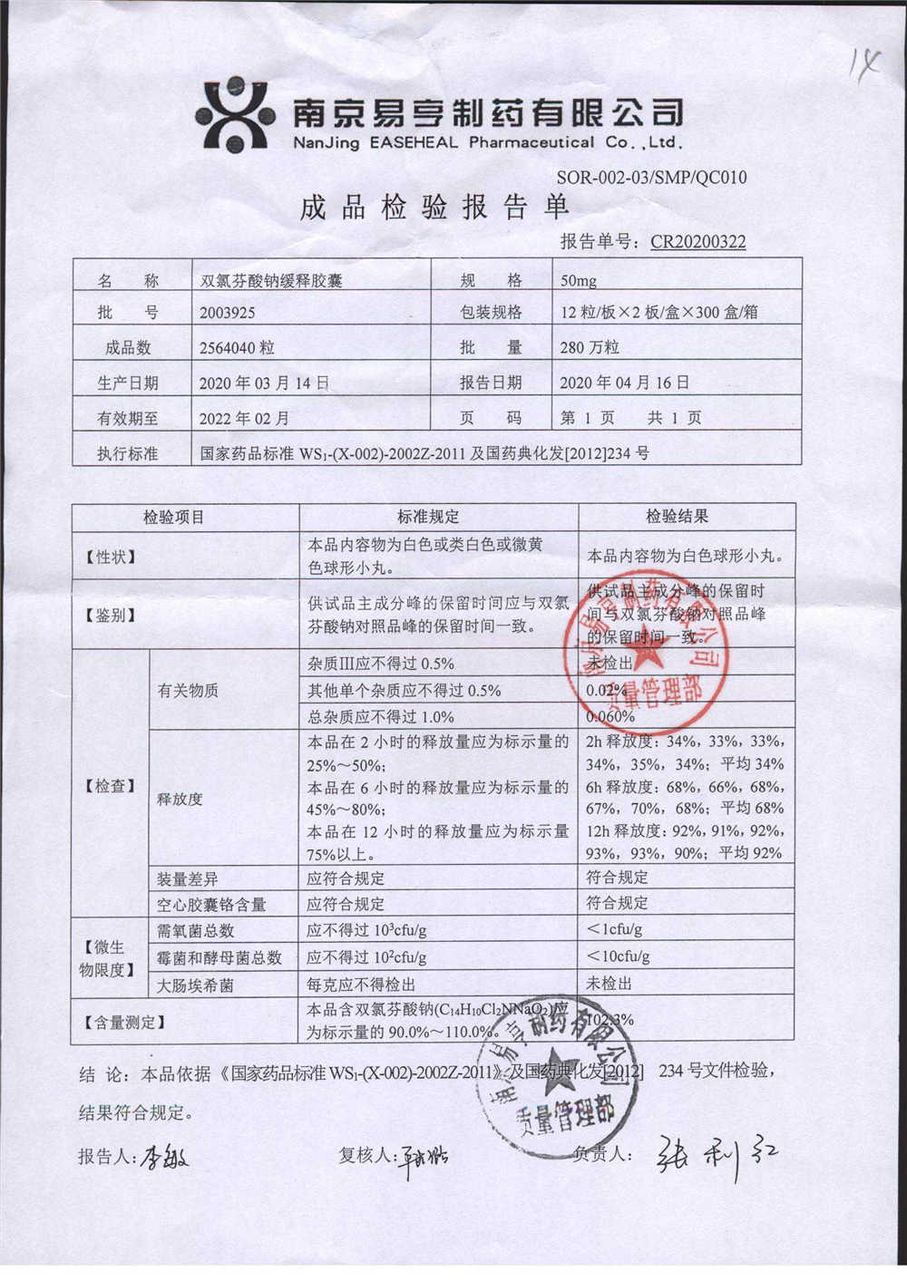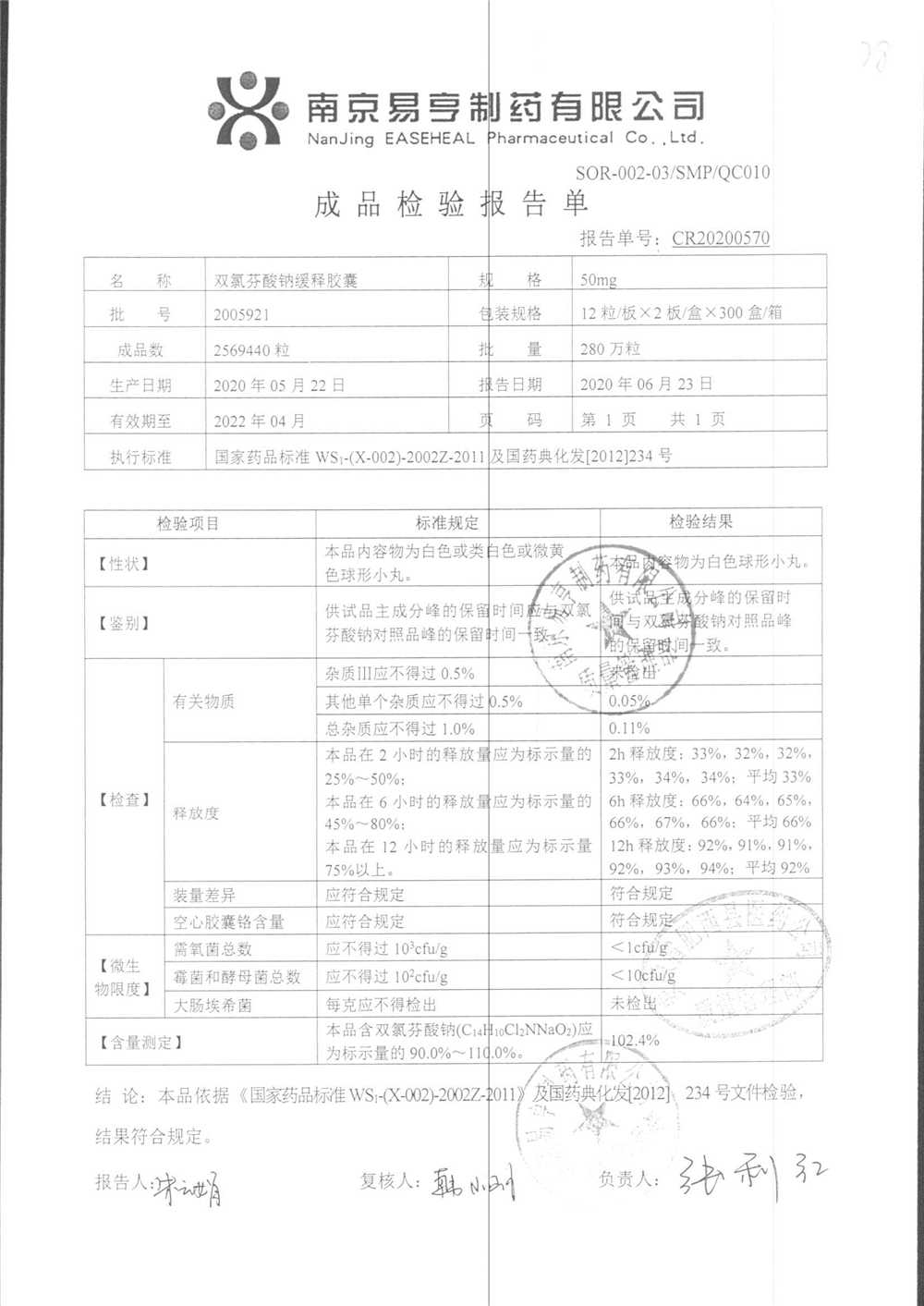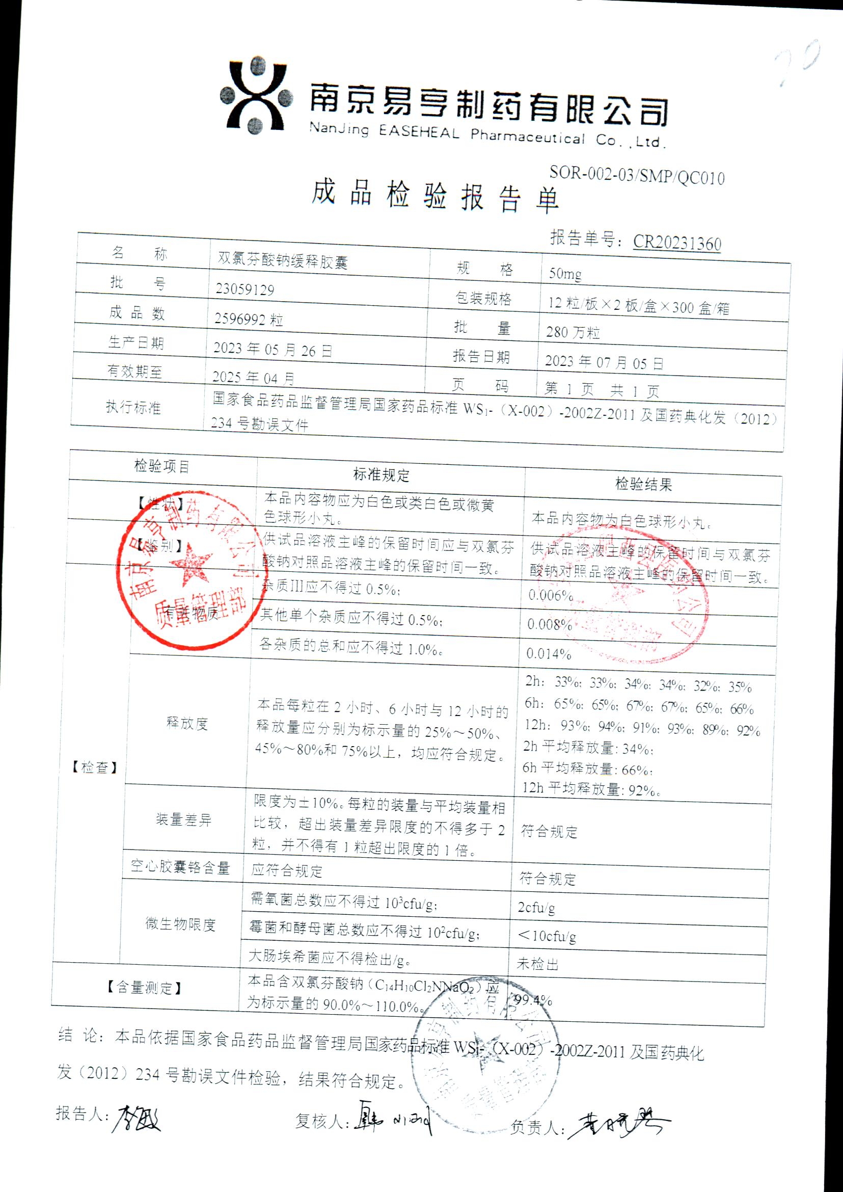 | Ë«ÂÈ·ÒËáÄÆ»ºÊͽºÄÒ | 50mg*24Á£/ºÐ | 2401A011 | ²é¿´ÏêÇé |