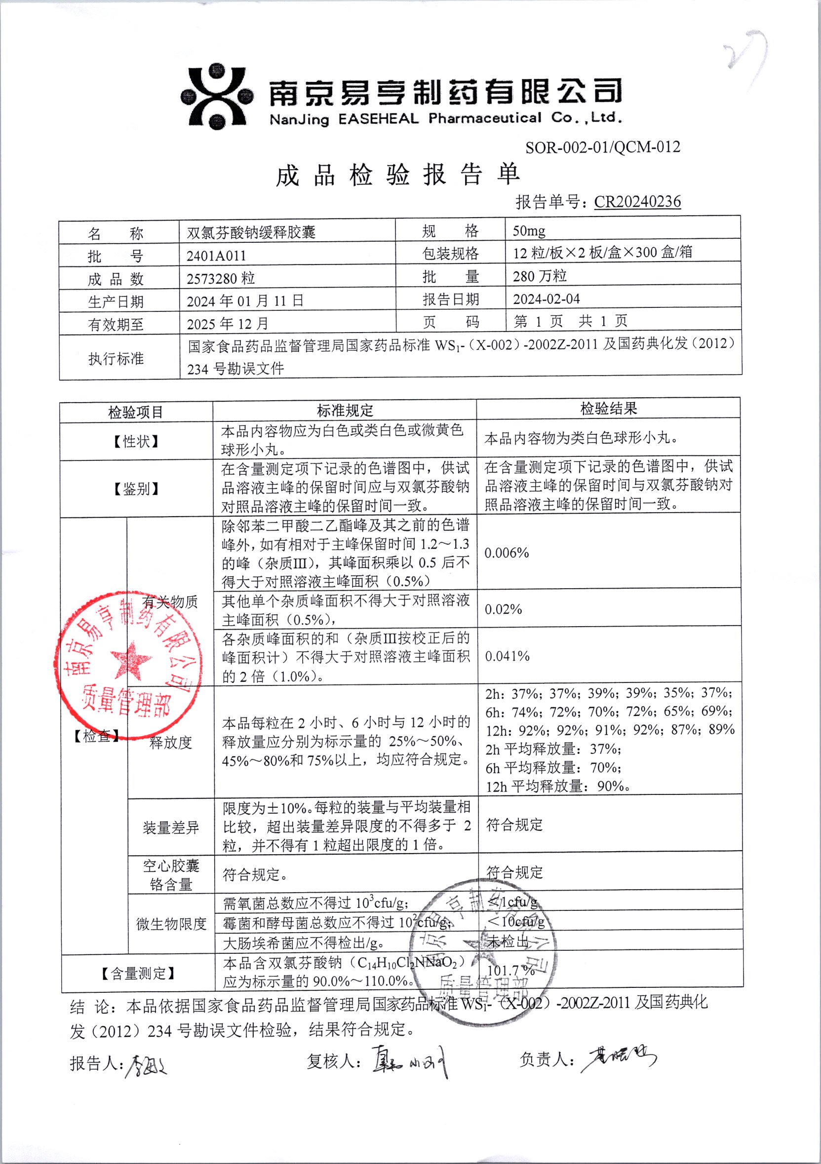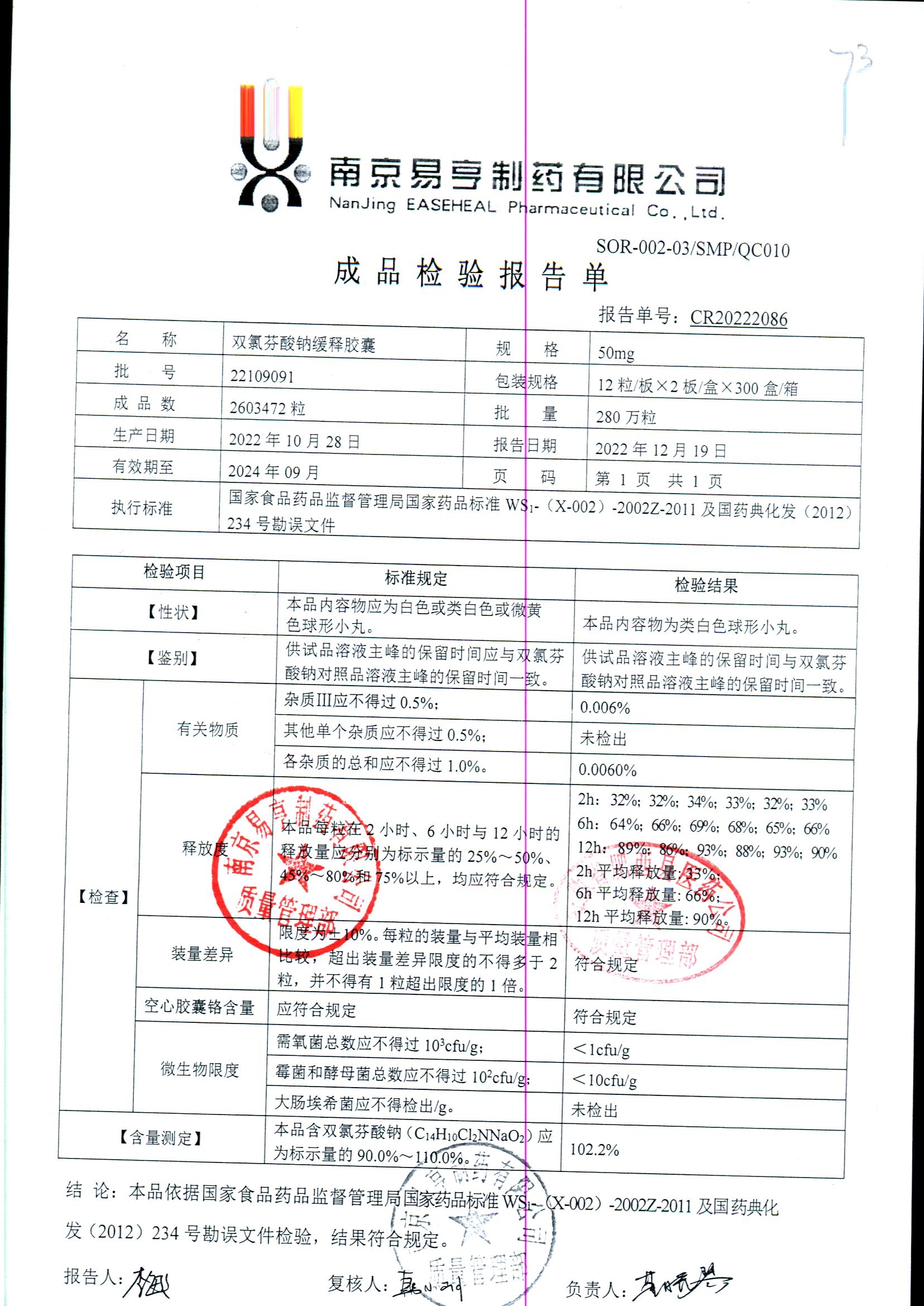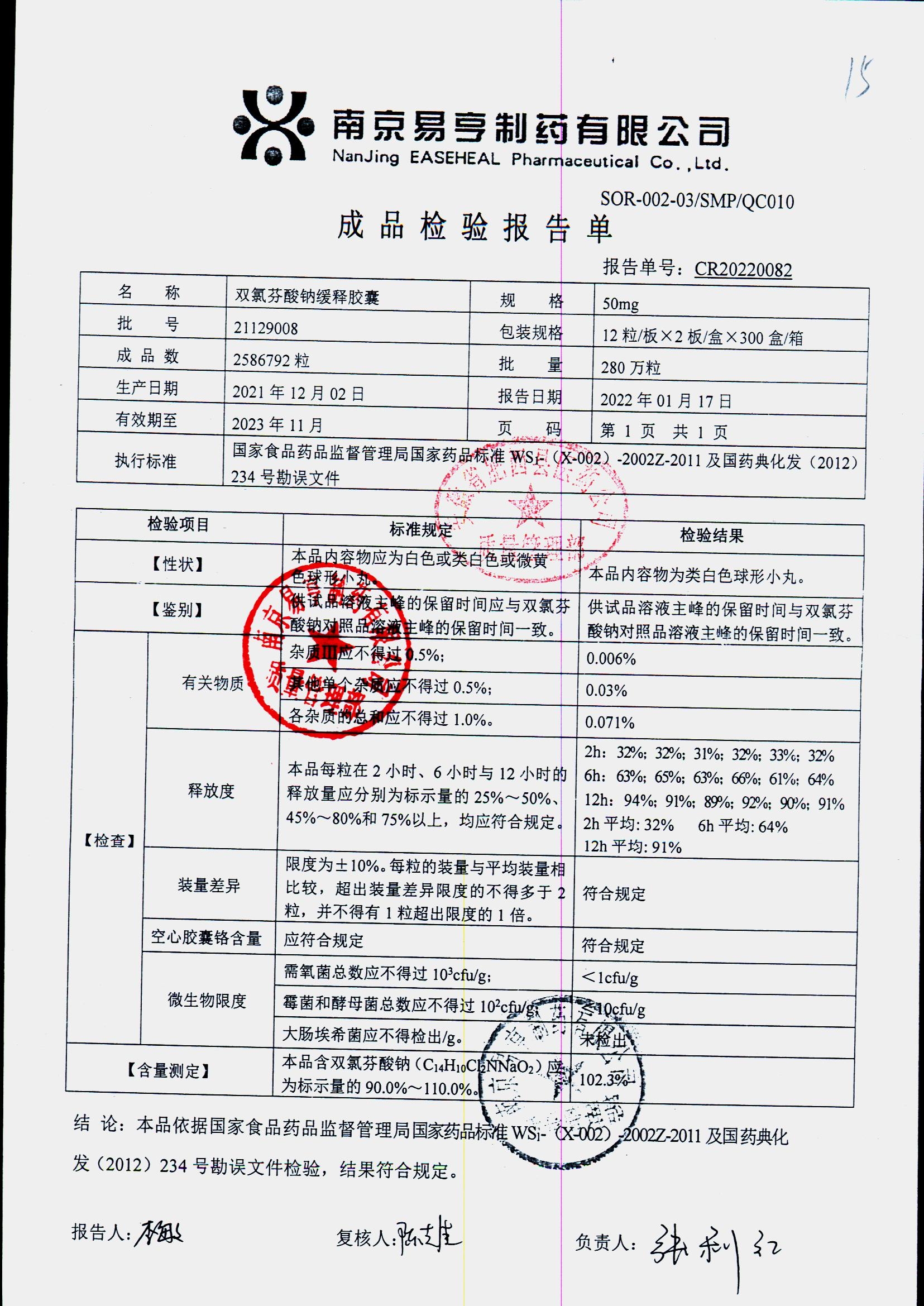 | Ë«ÂÈ·ÒËáÄÆ»ºÊͽºÄÒ | 50mg*24Á£/ºÐ | 2405A 011 | ²é¿´ÏêÇé |
