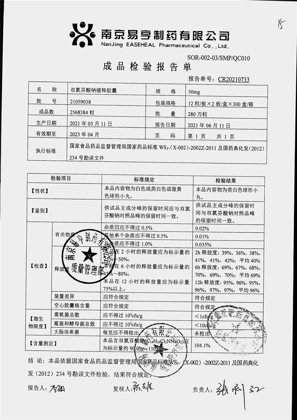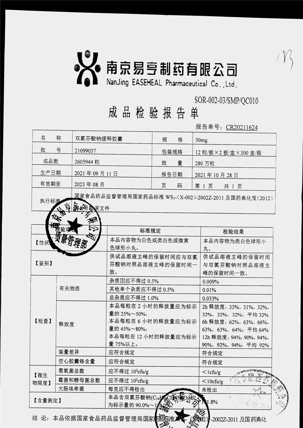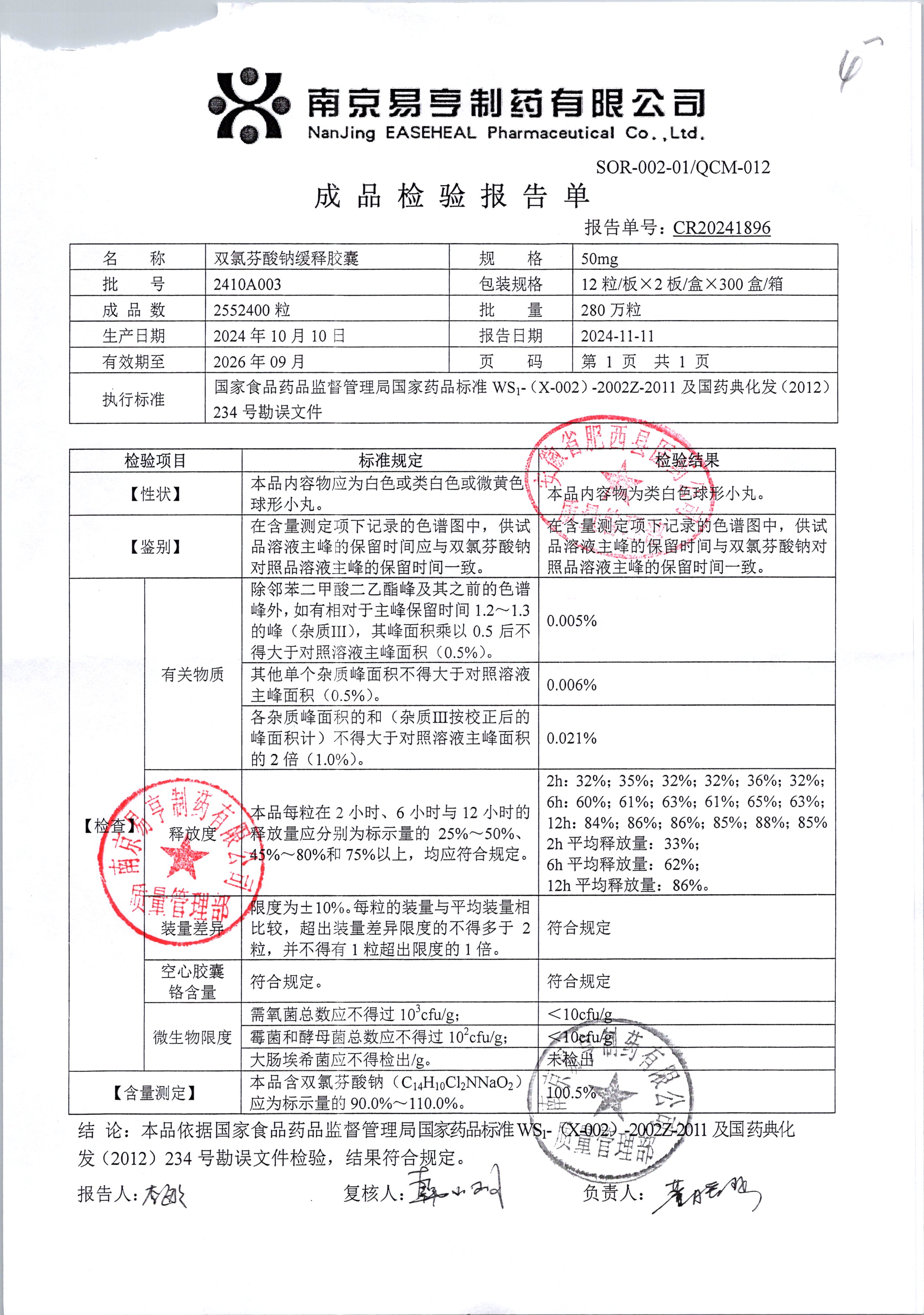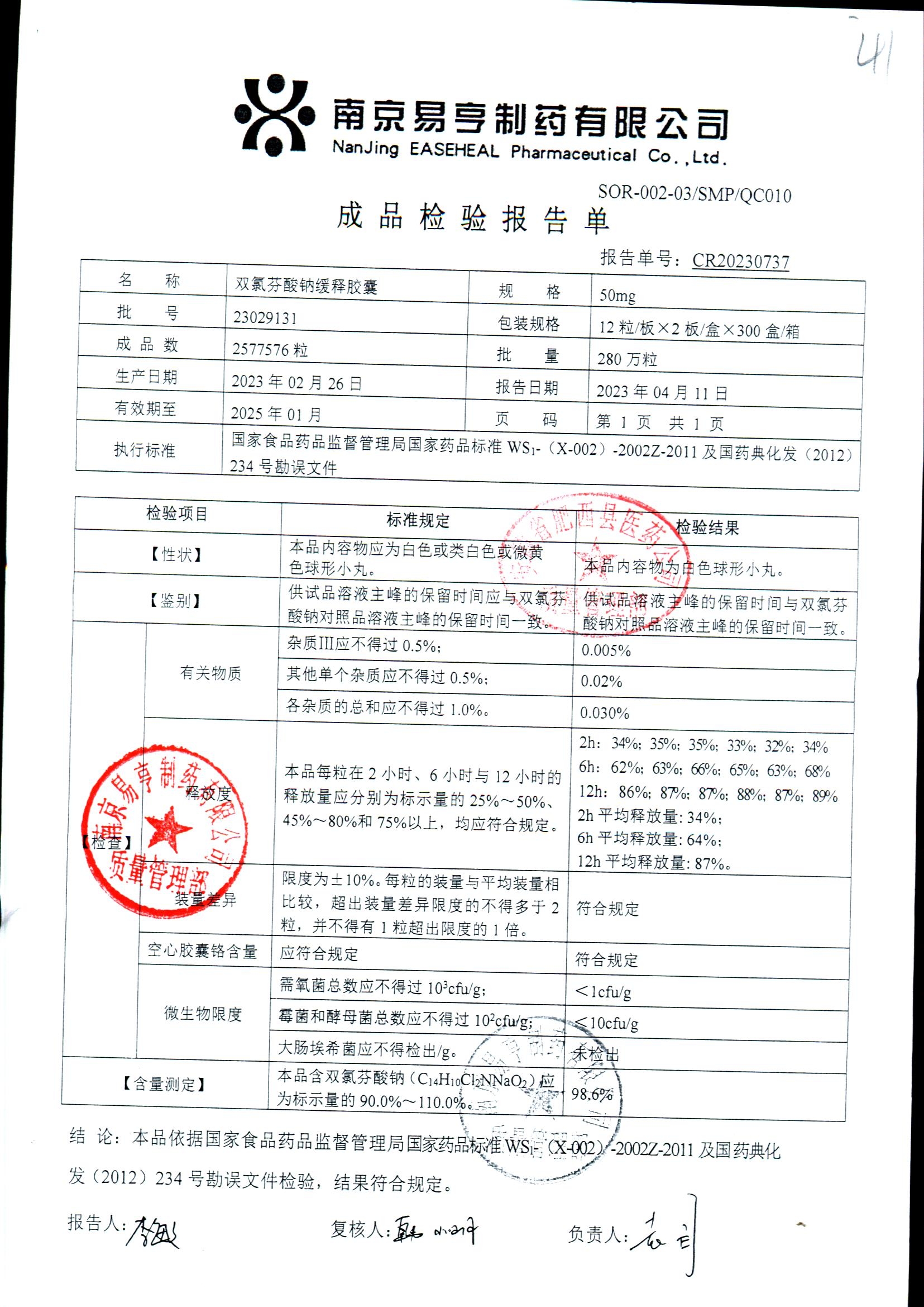 | Ë«ÂÈ·ÒËáÄÆ»ºÊͽºÄÒ | 50mg*24Á£/ºÐ | 2405A 011 | ²é¿´ÏêÇé |