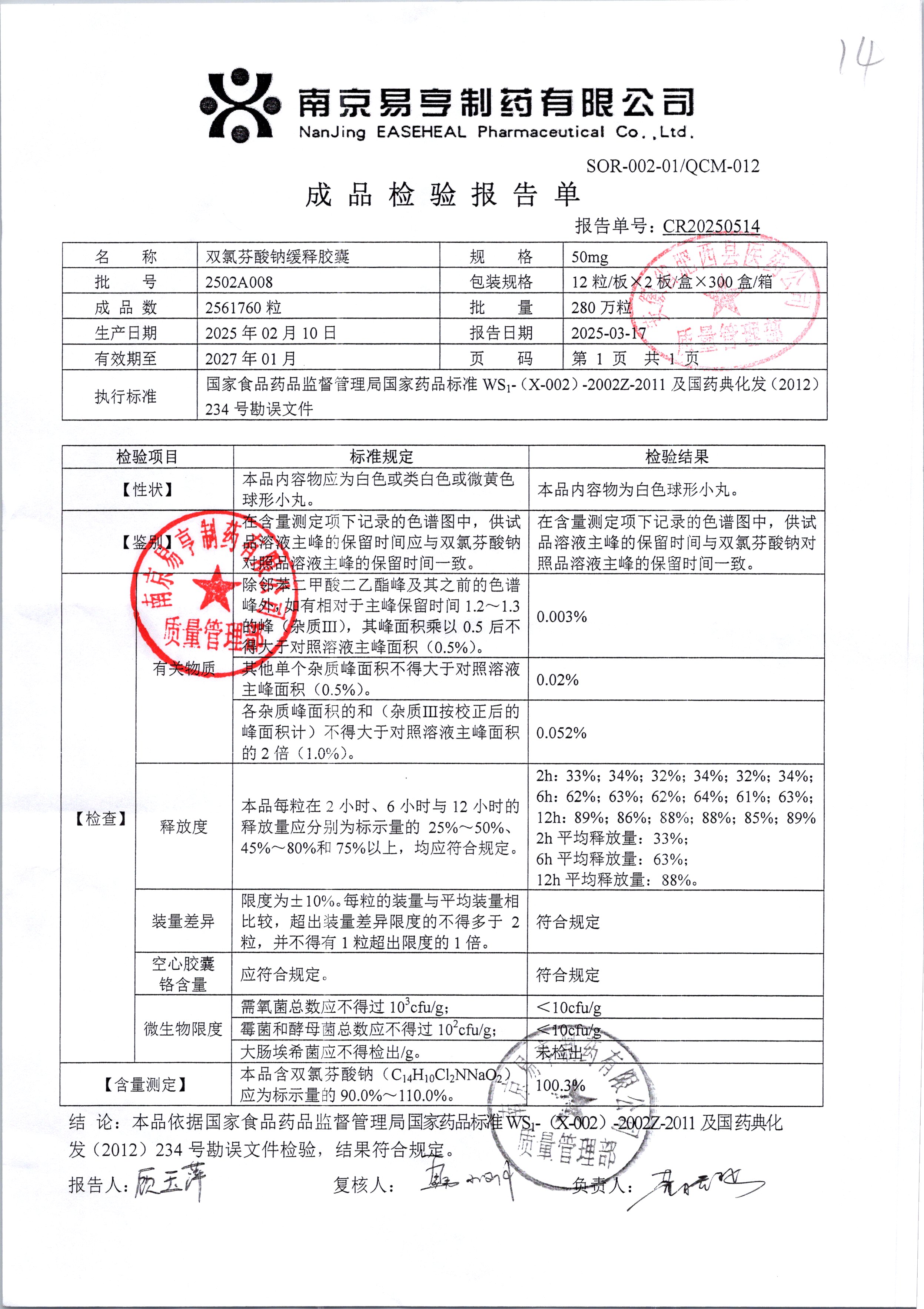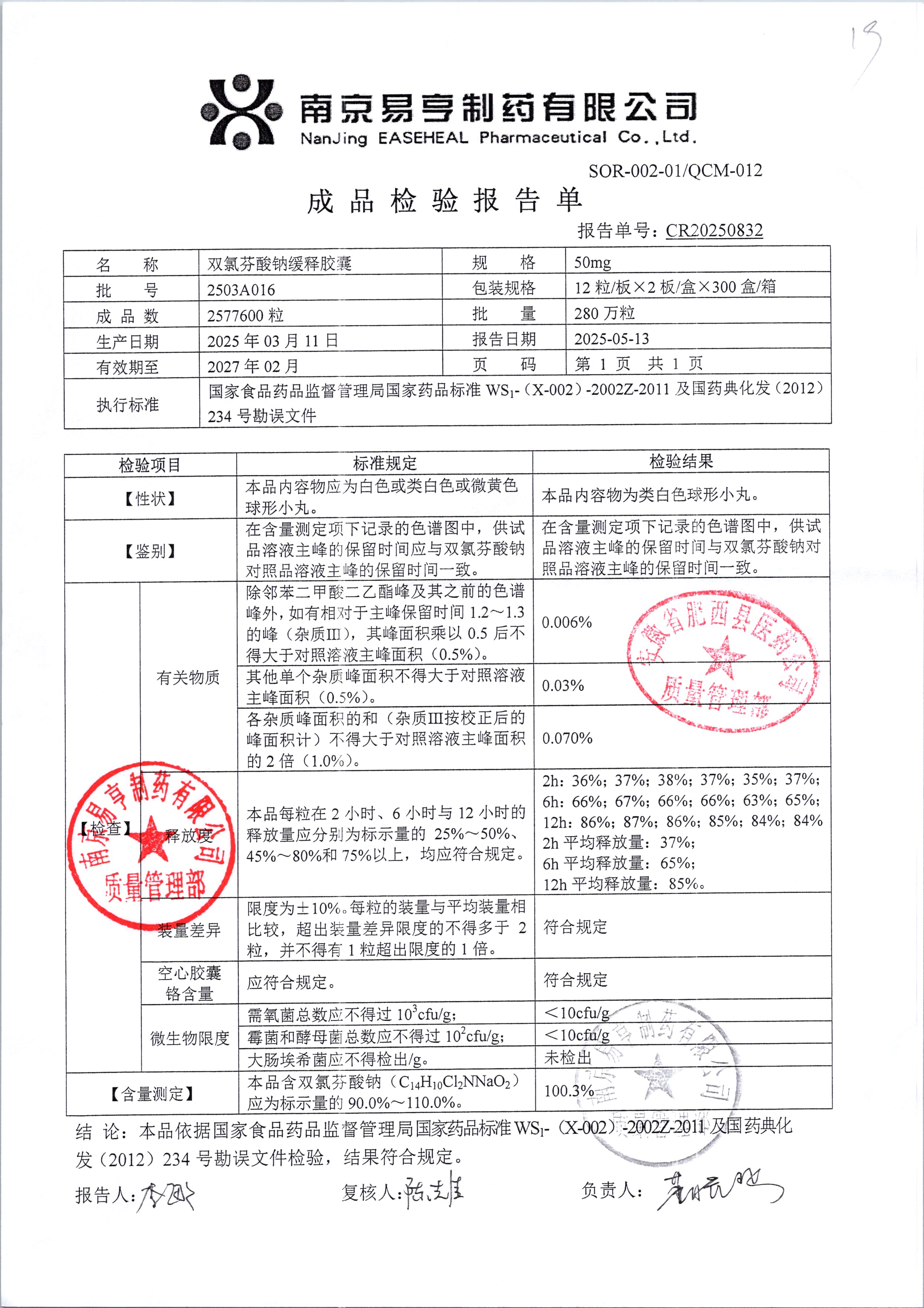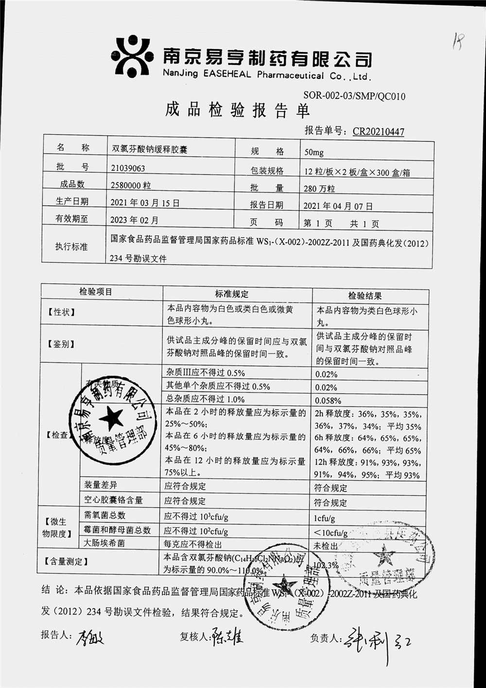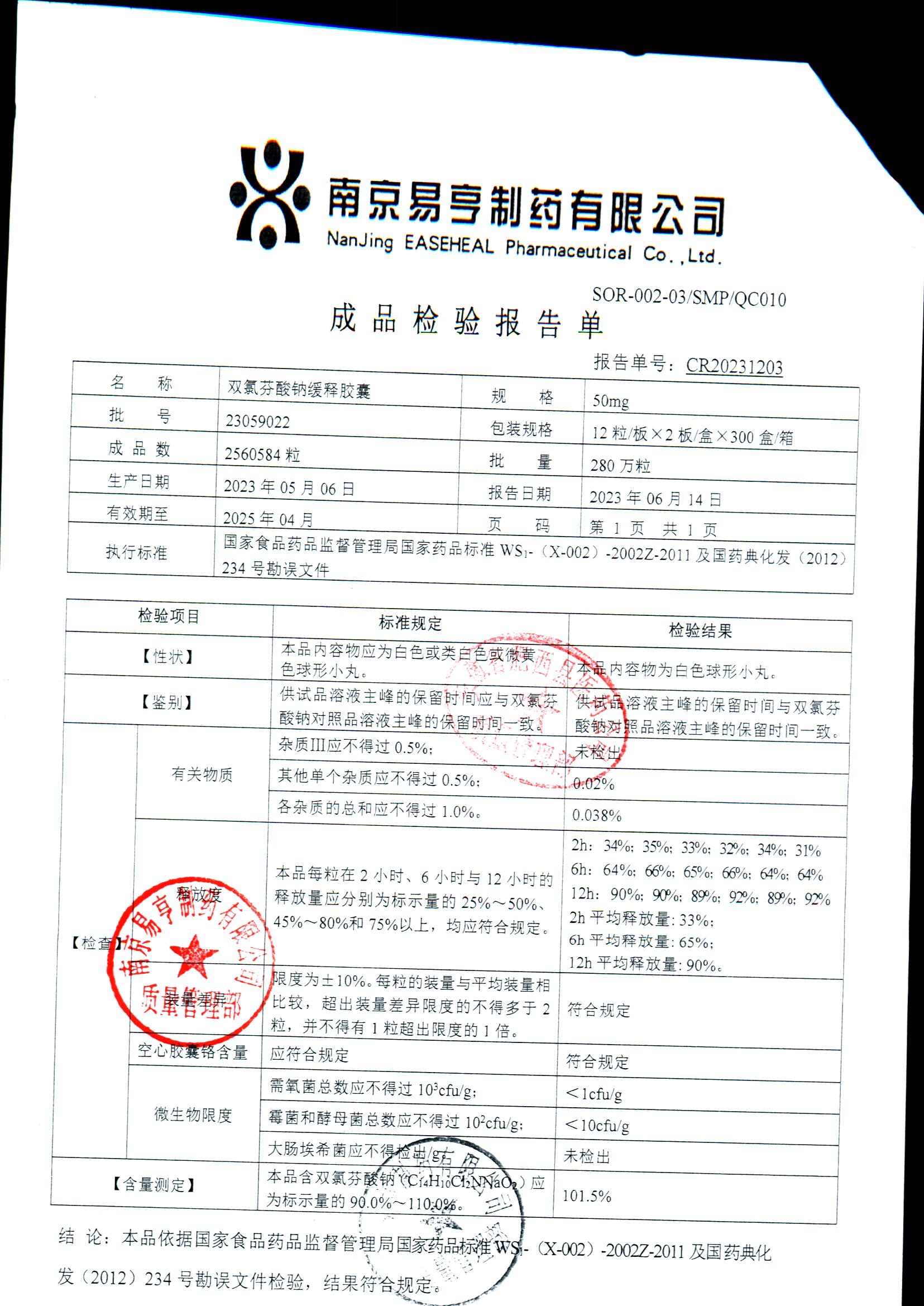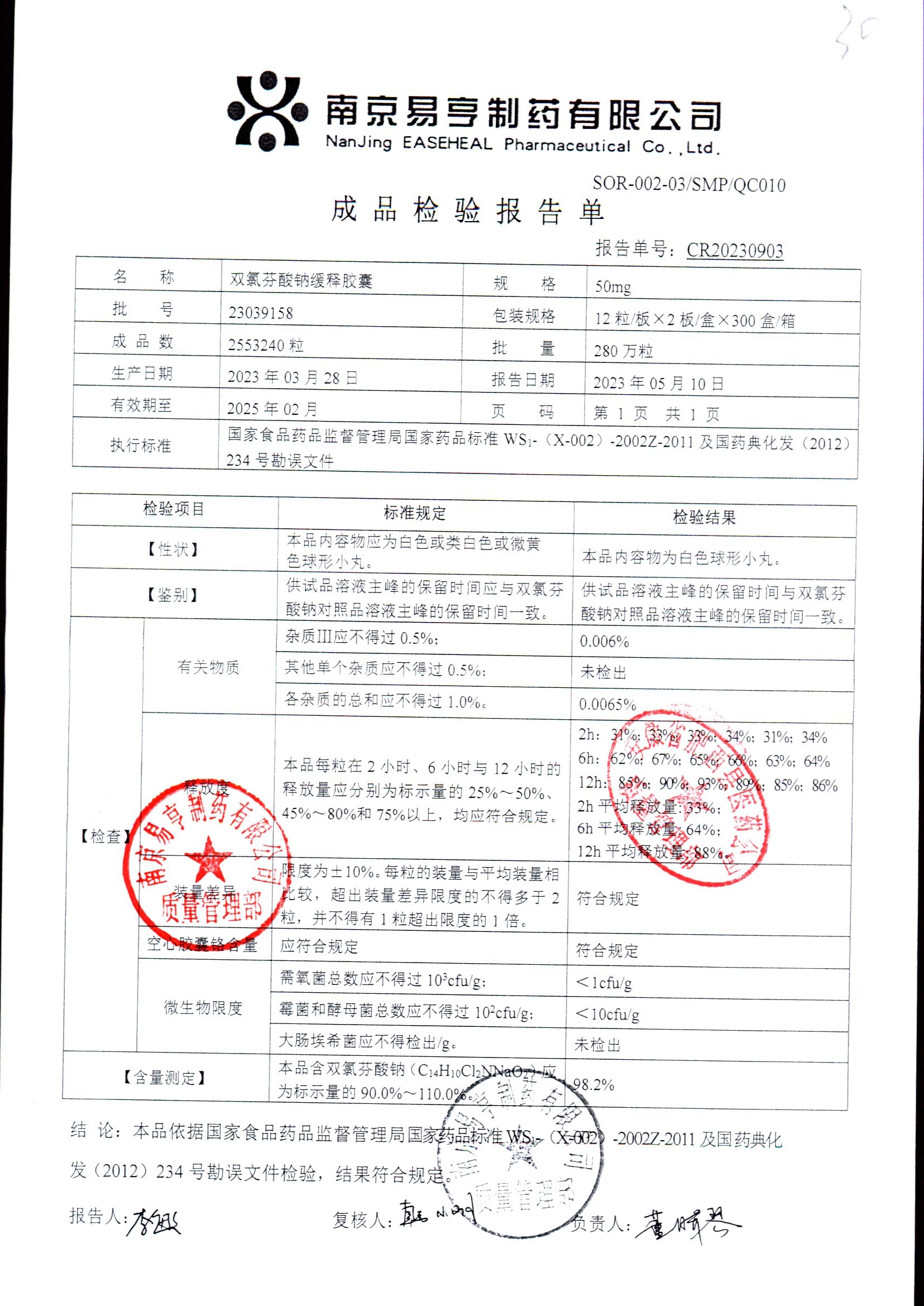 | Ë«ÂÈ·ÒËáÄÆ»ºÊͽºÄÒ | 50mg*24Á£/ºÐ | 2503A014 | ²é¿´ÏêÇé |