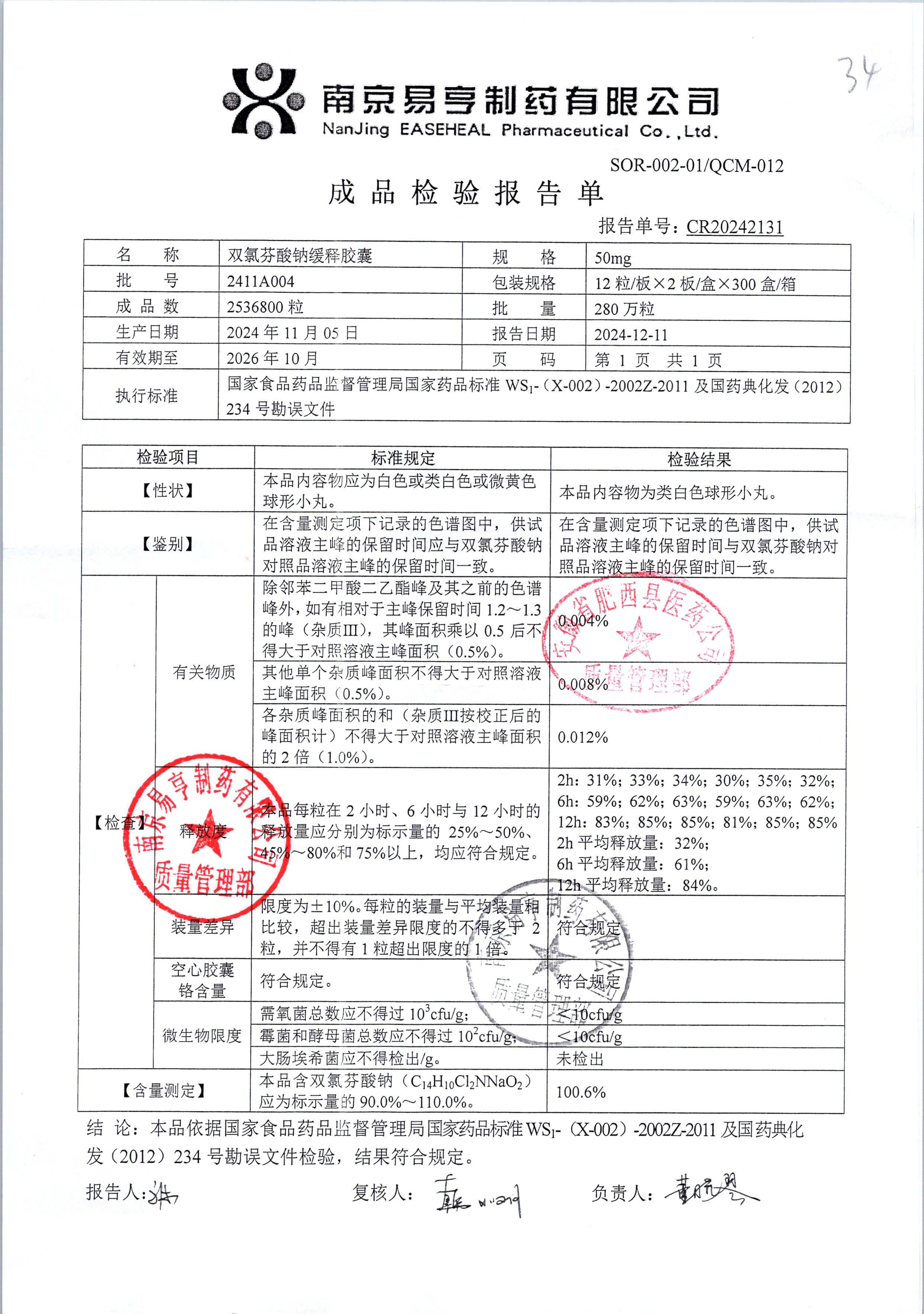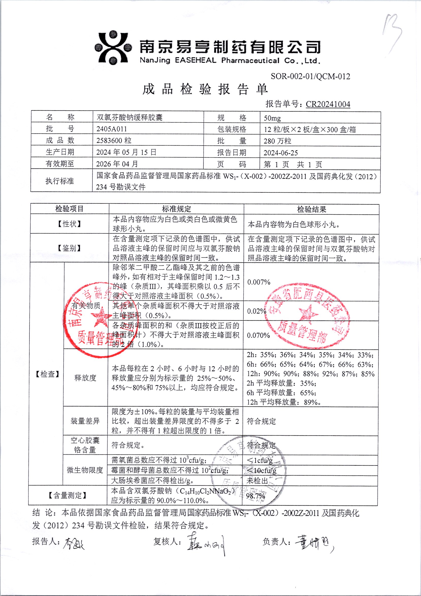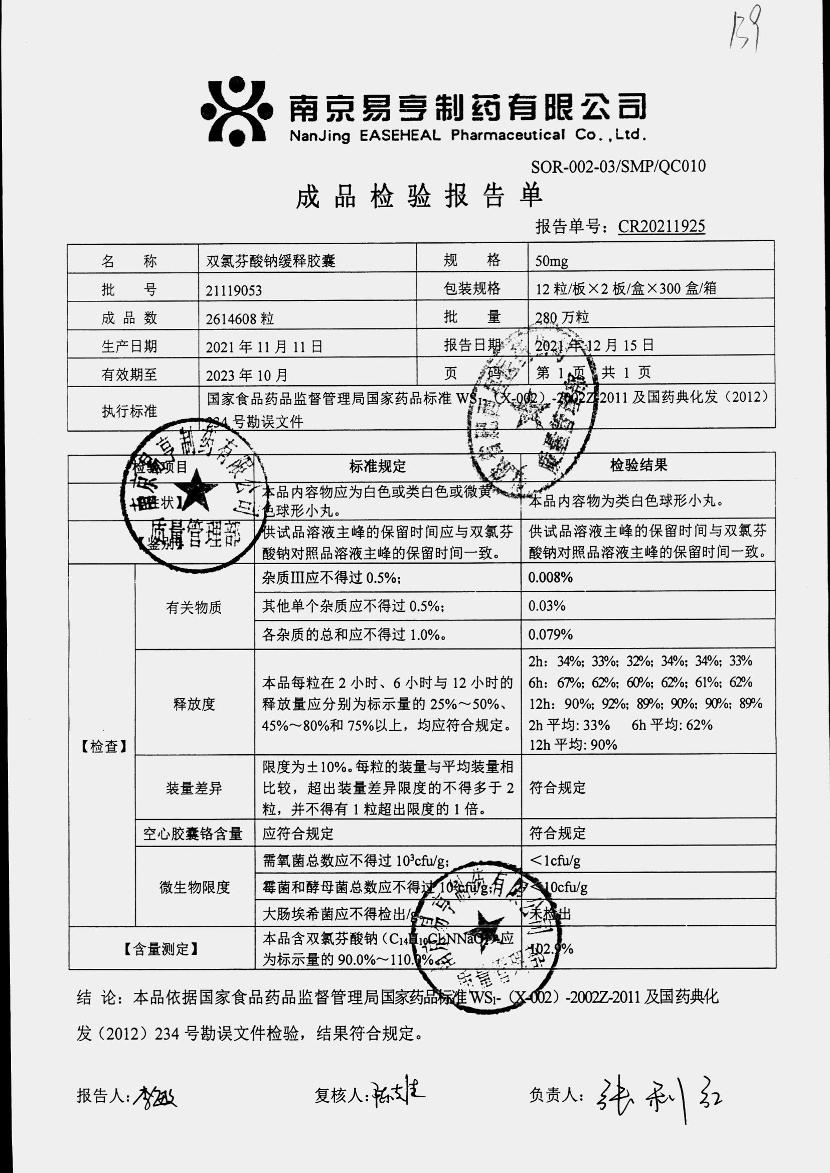| Ë«ÂÈ·ÒËáÄÆ»ºÊͽºÄÒ | 50mg*24Á£/ºÐ | 2411A004 | ²é¿´ÏêÇé |