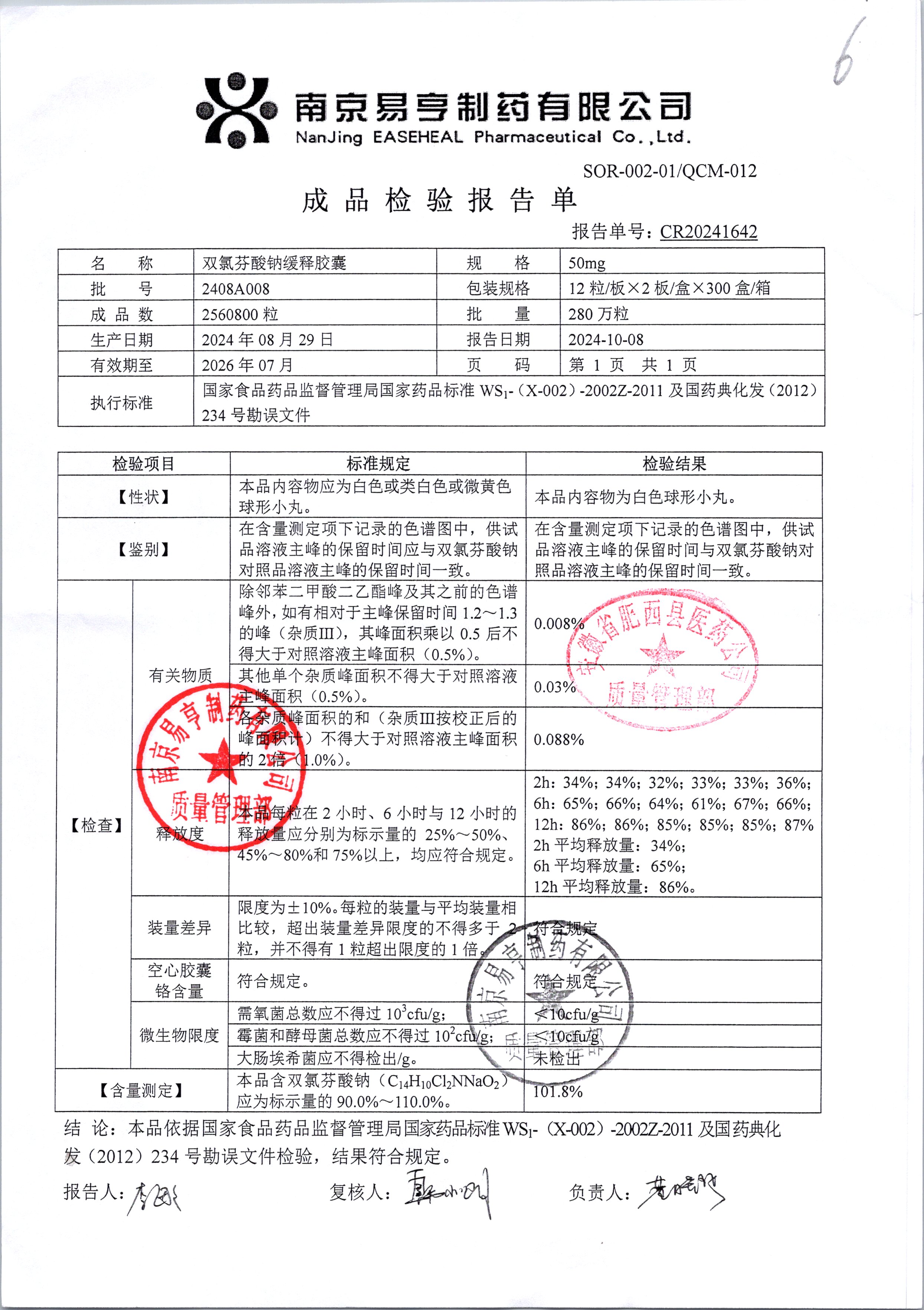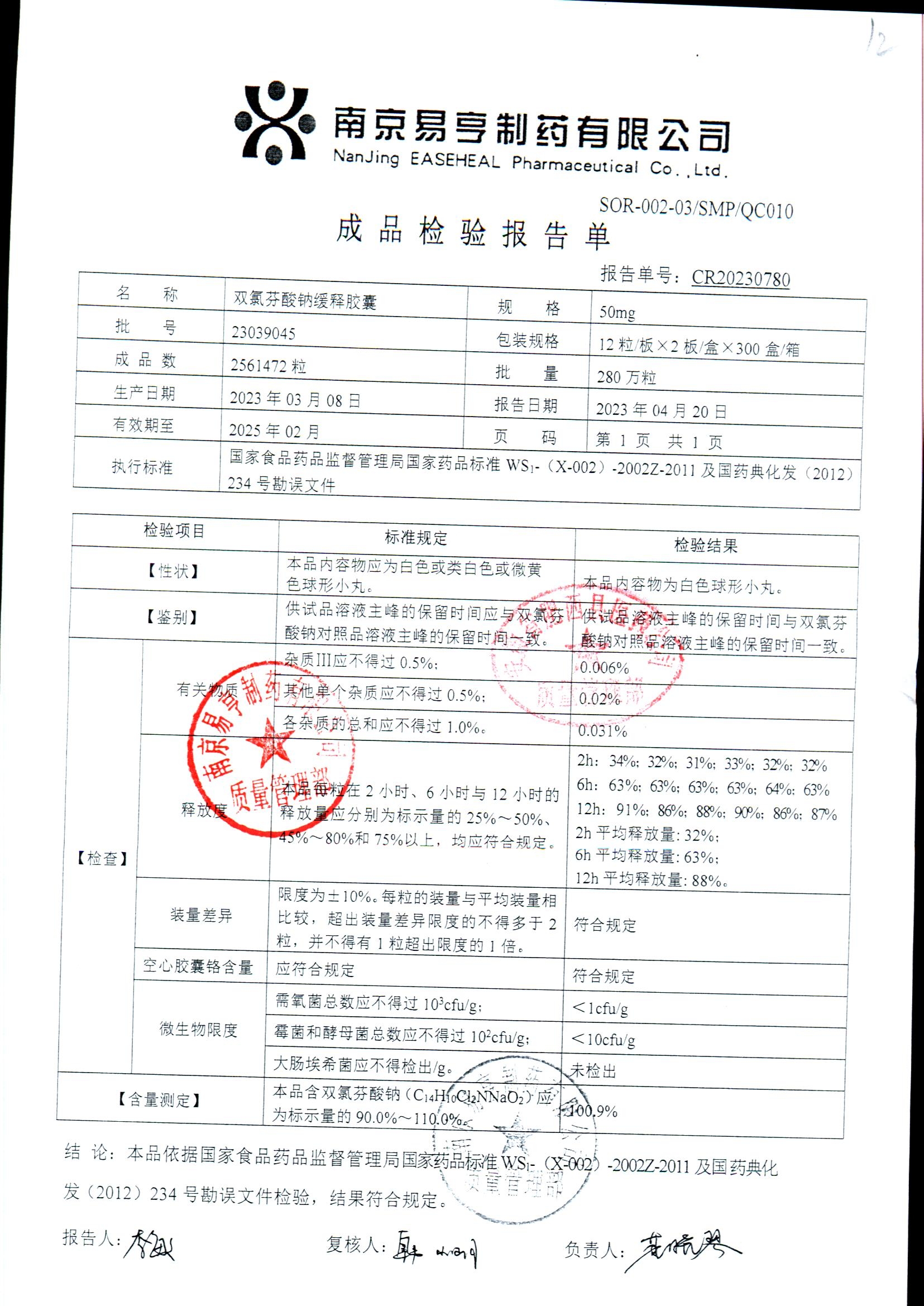 | Ë«ÂÈ·ÒËáÄÆ»ºÊͽºÄÒ | 50mg*24Á£/ºÐ | 2402A004 | ²é¿´ÏêÇé |
