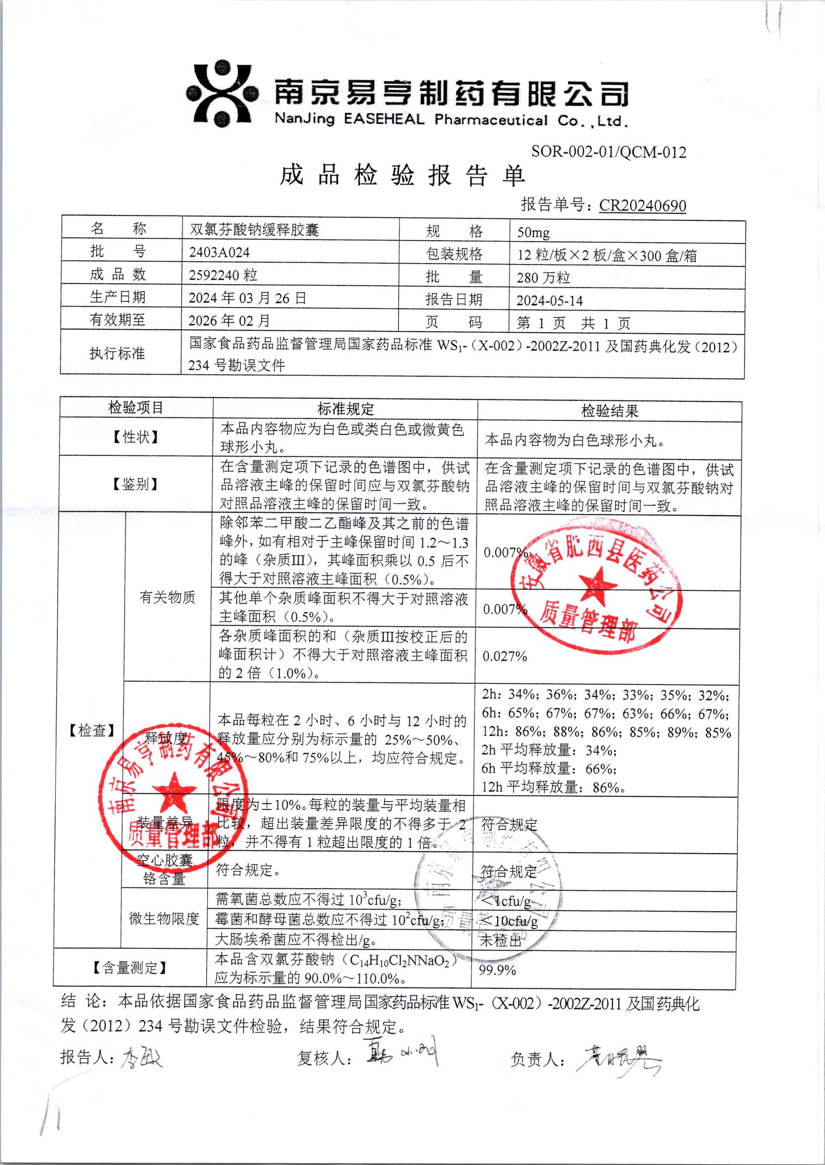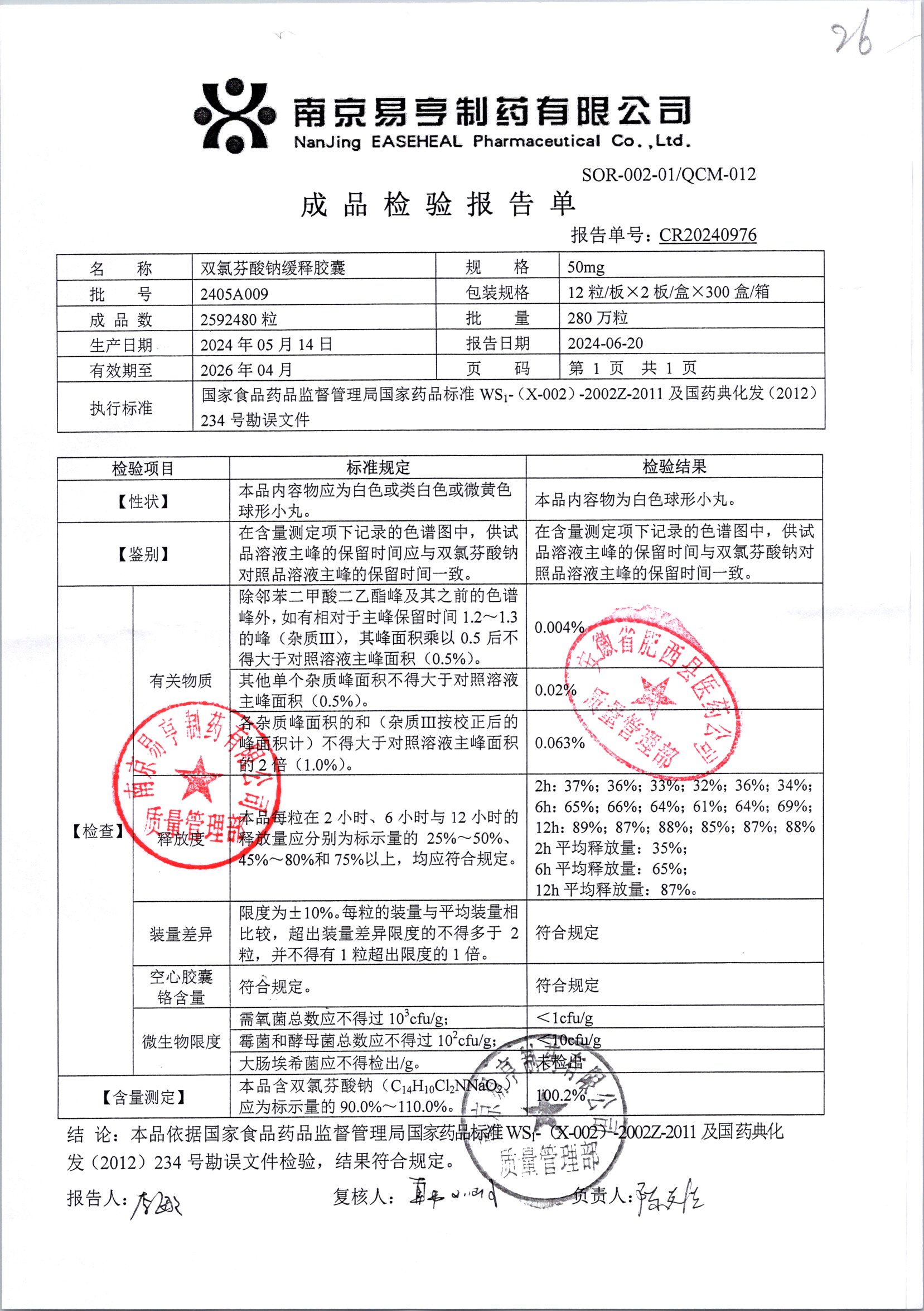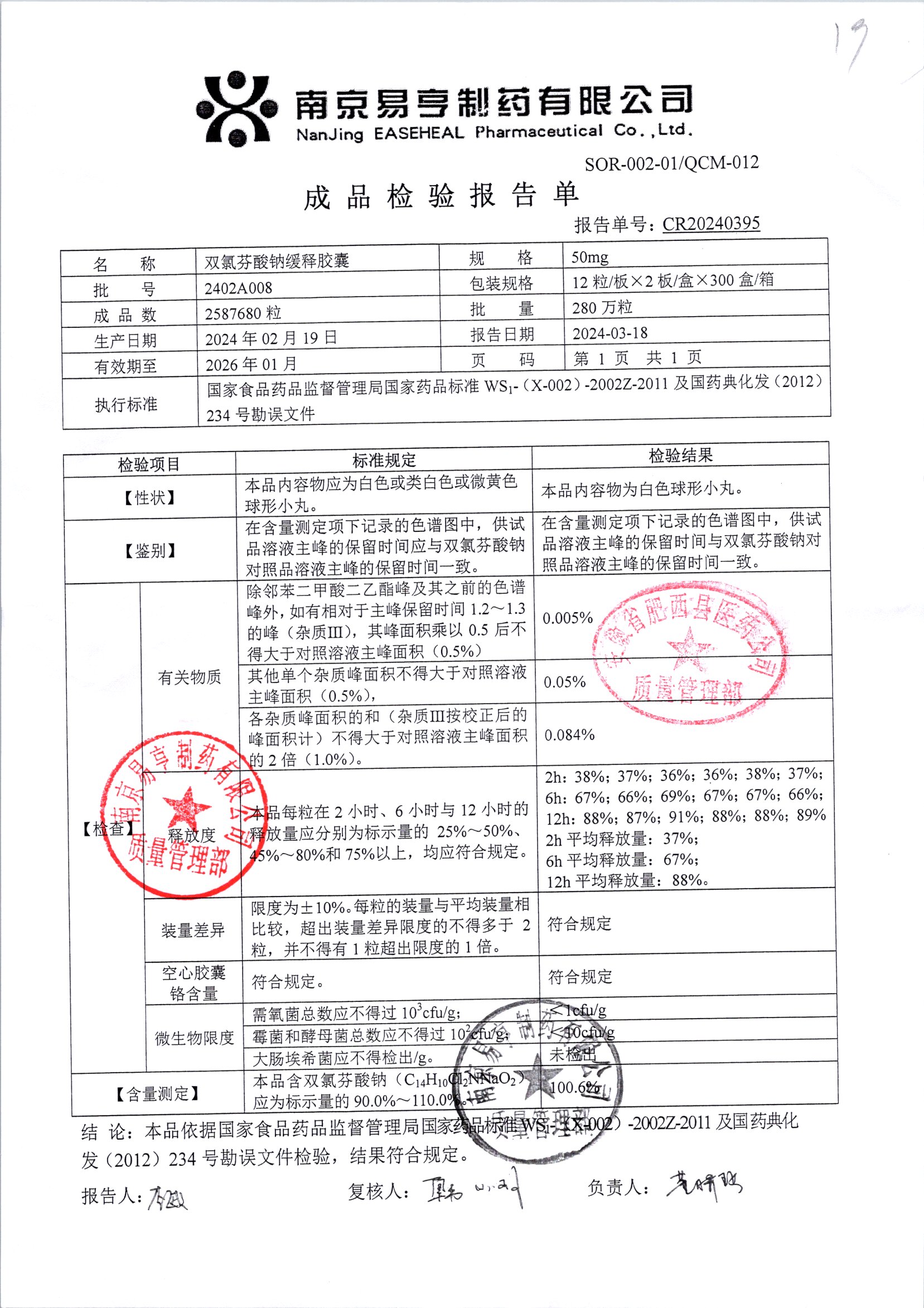 | Ë«ÂÈ·ÒËáÄÆ»ºÊͽºÄÒ | 50mg*24Á£/ºÐ | 2403A024 | ²é¿´ÏêÇé |