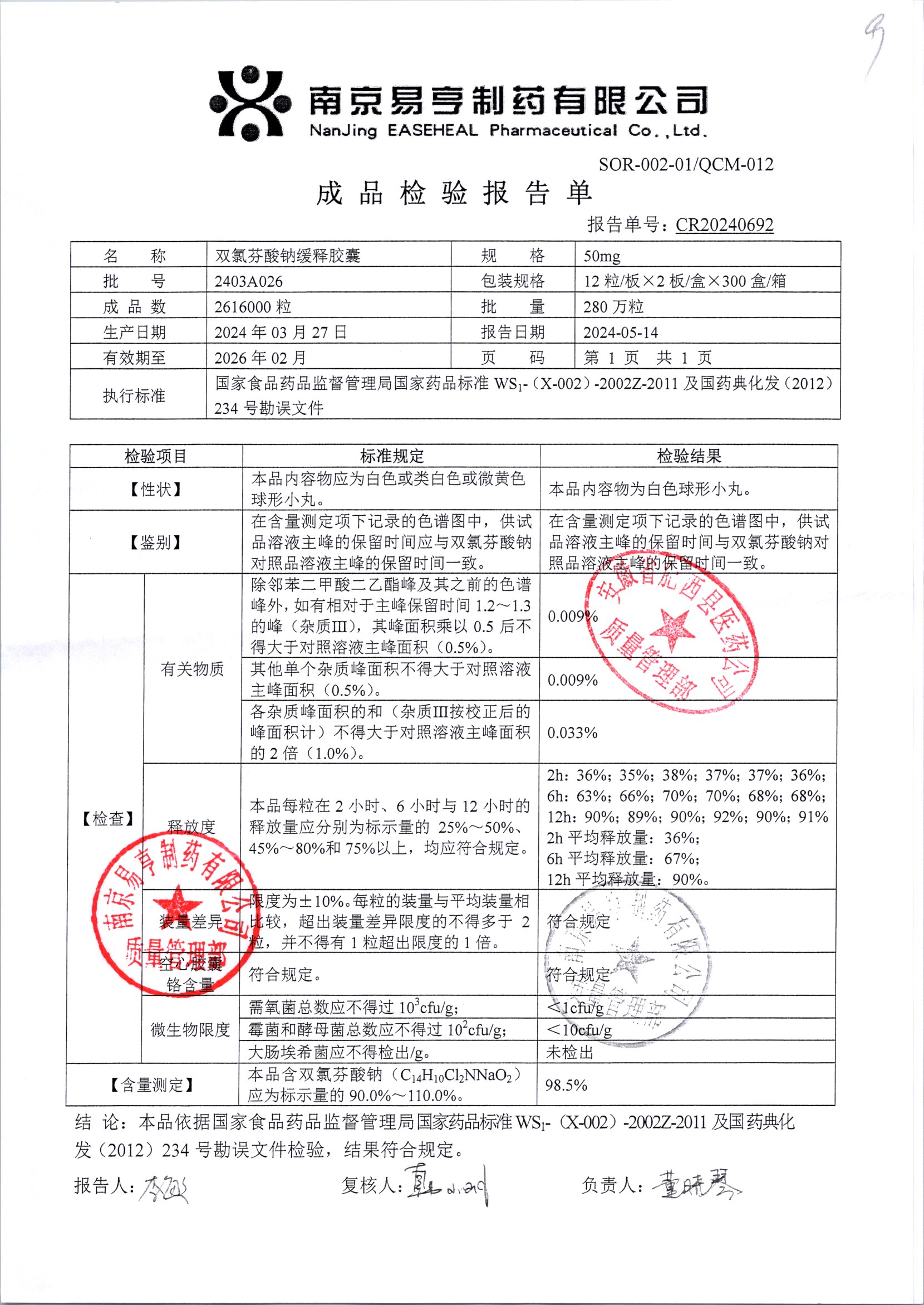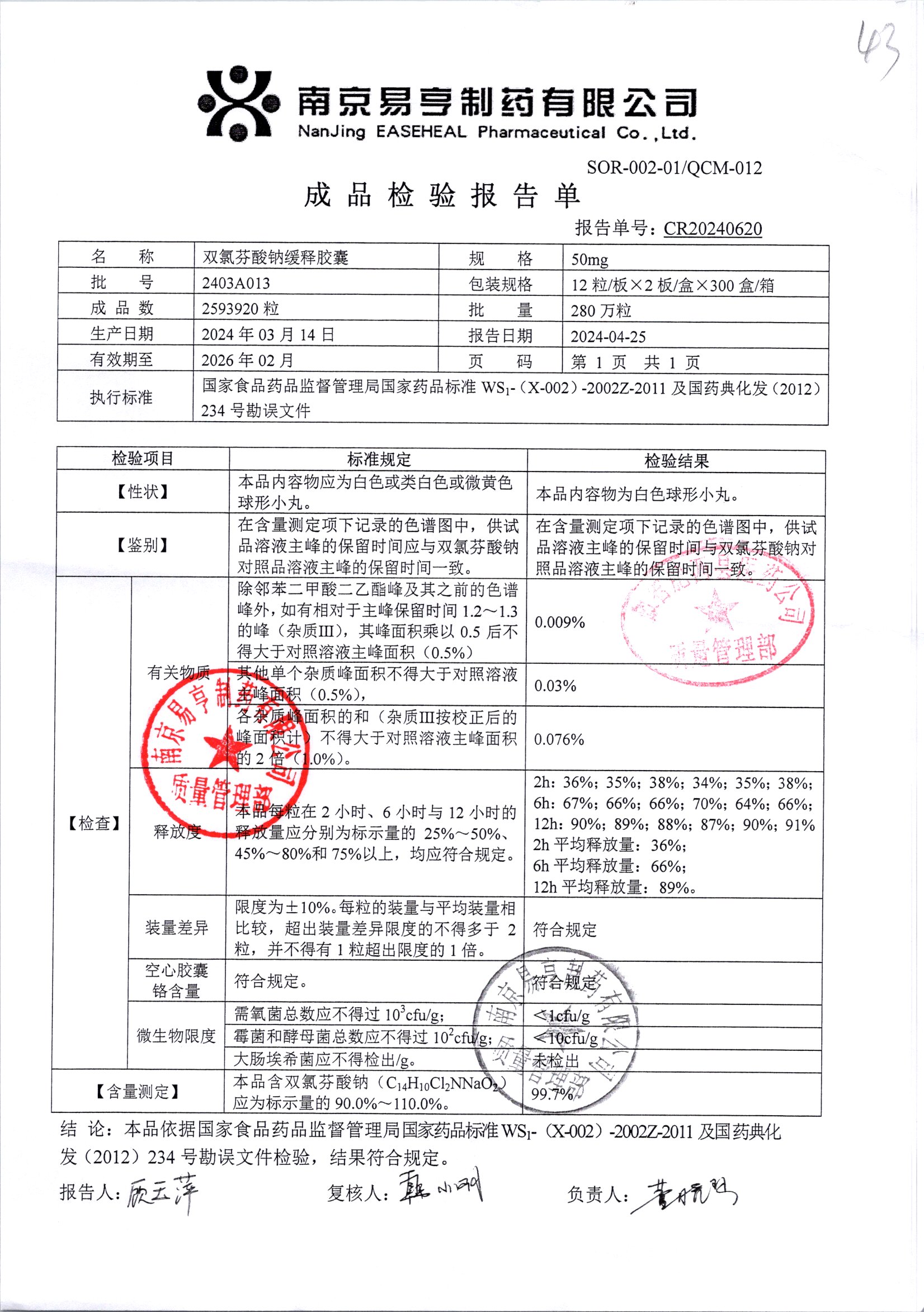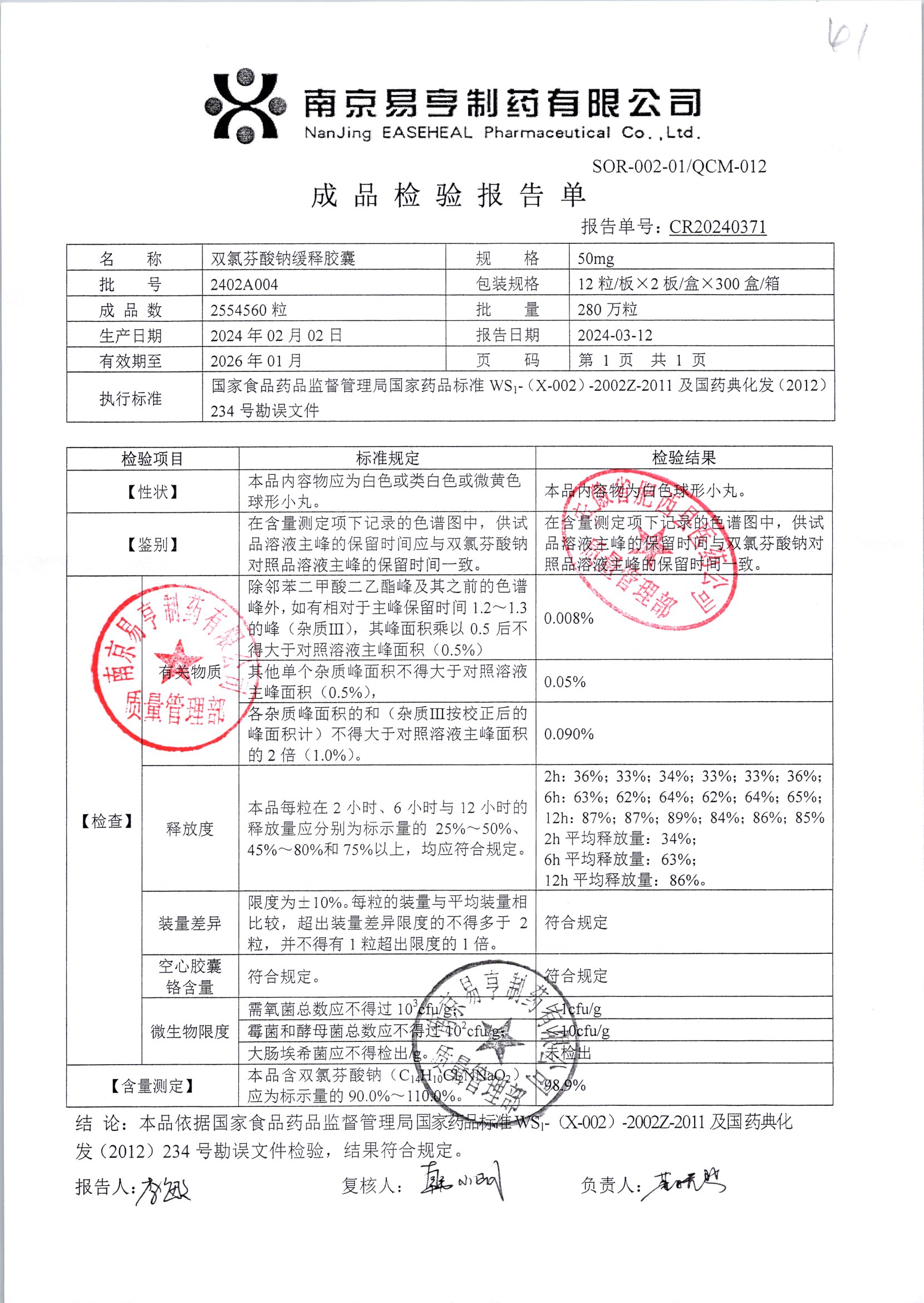 | Ë«ÂÈ·ÒËáÄÆ»ºÊͽºÄÒ | 50mg*24Á£/ºÐ | 2403A024 | ²é¿´ÏêÇé |