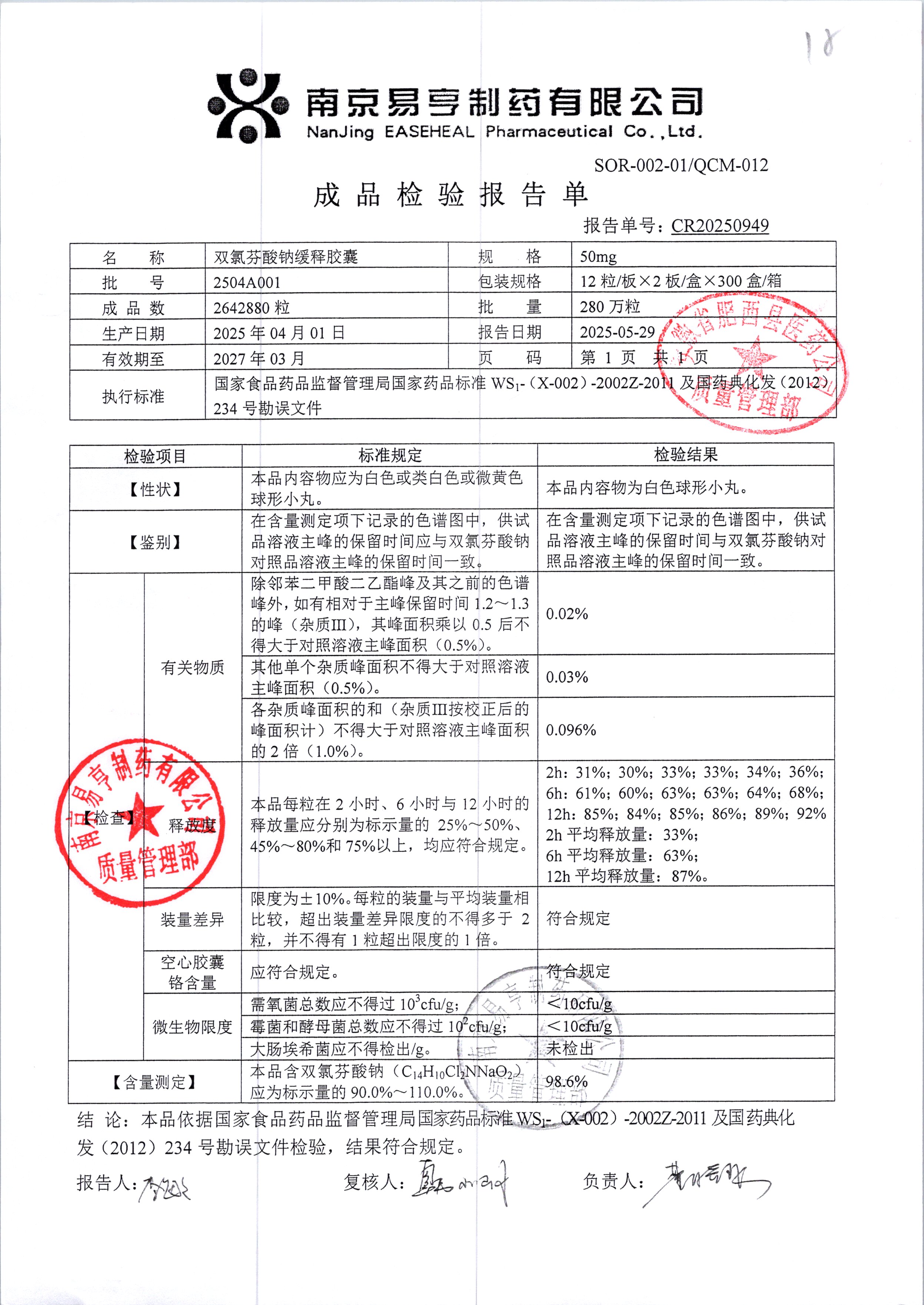 | Ë«ÂÈ·ÒËáÄÆ»ºÊͽºÄÒ | 50mg*24Á£/ºÐ | 2501A018 | ²é¿´ÏêÇé |