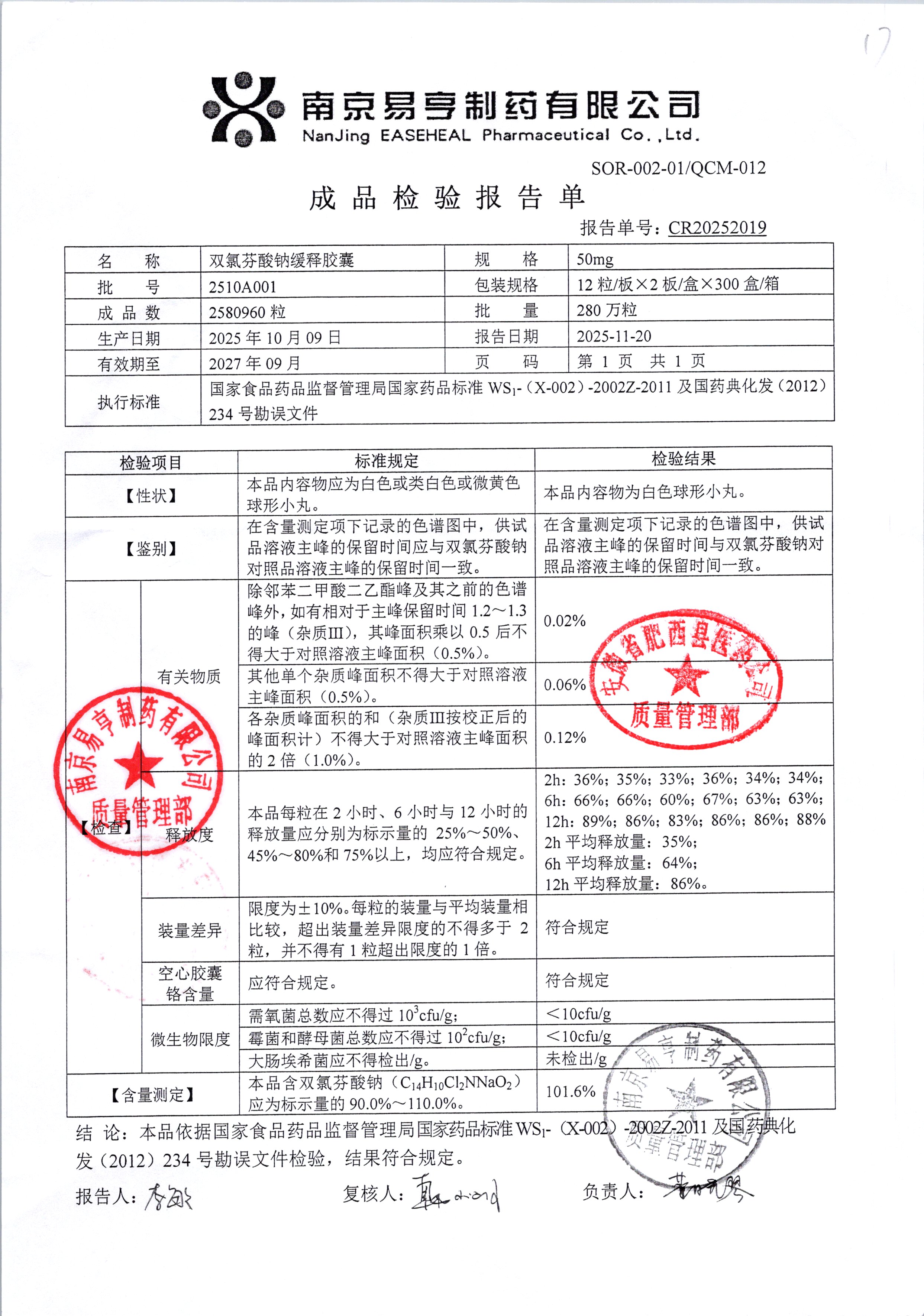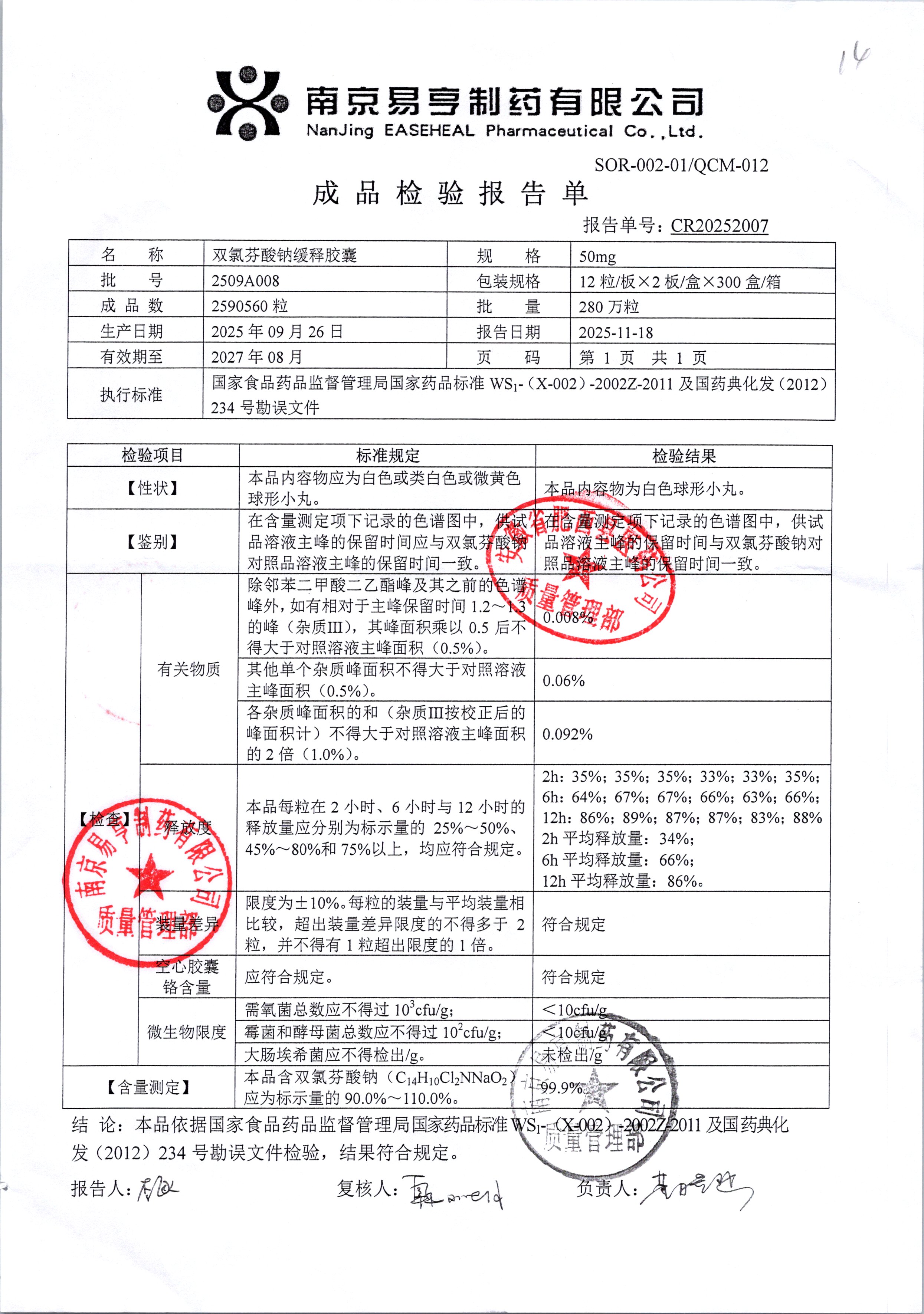 | Ë«ÂÈ·ÒËáÄÆ»ºÊͽºÄÒ | 50mg*24Á£/ºÐ | 2510A001 | ²é¿´ÏêÇé |