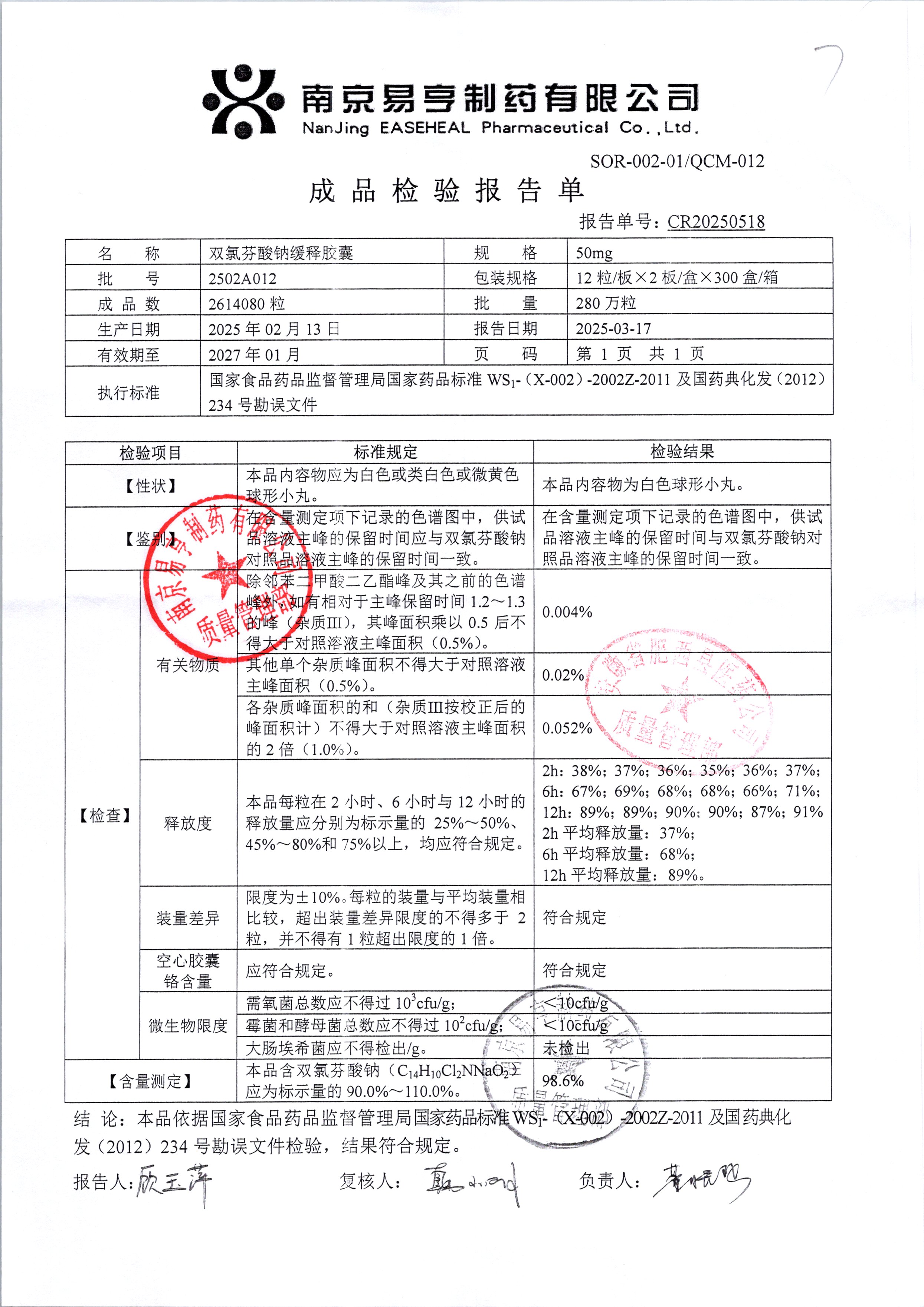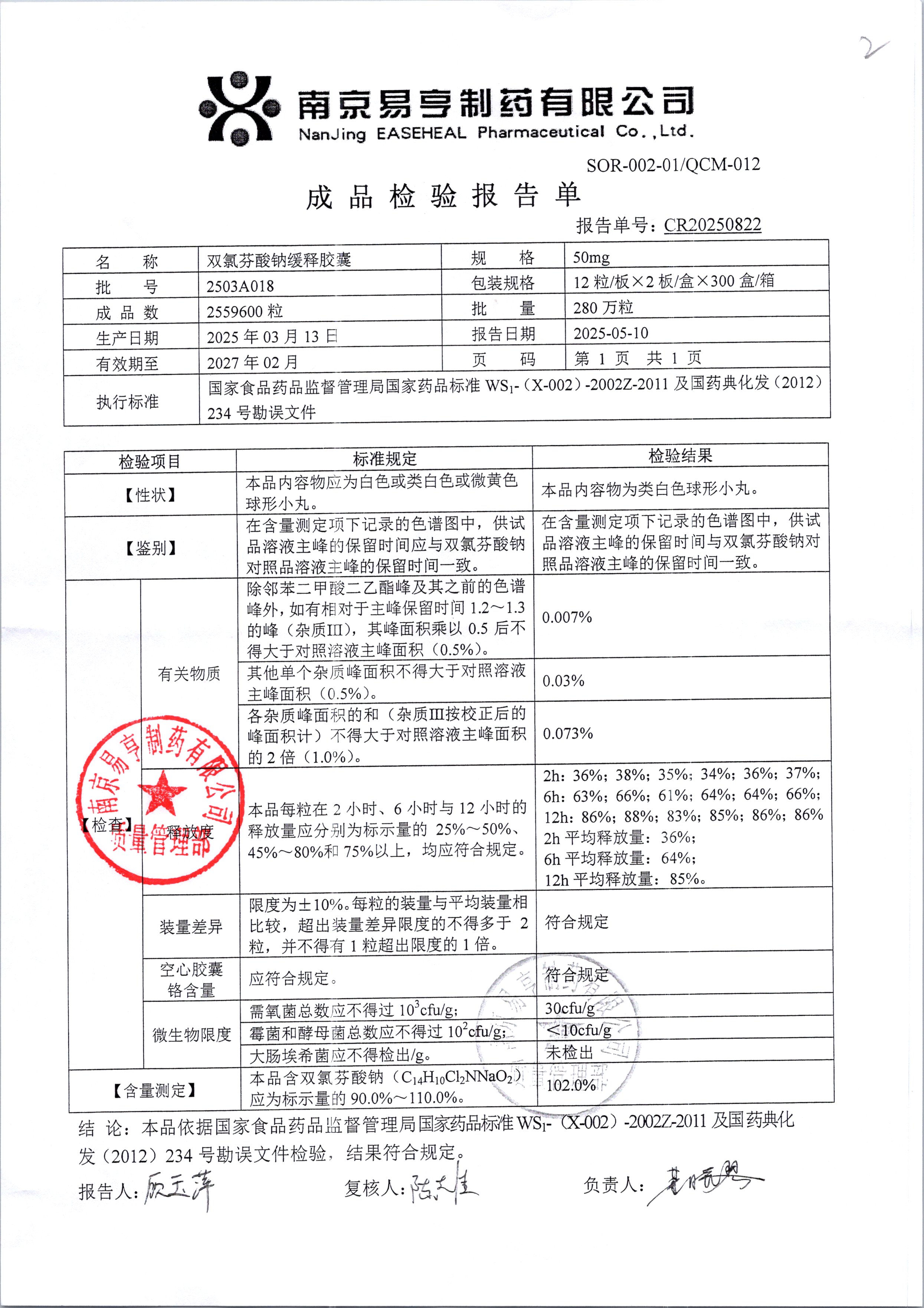 | Ë«ÂÈ·ÒËáÄÆ»ºÊͽºÄÒ | 50mg*24Á£/ºÐ | 2502A012 | ²é¿´ÏêÇé |