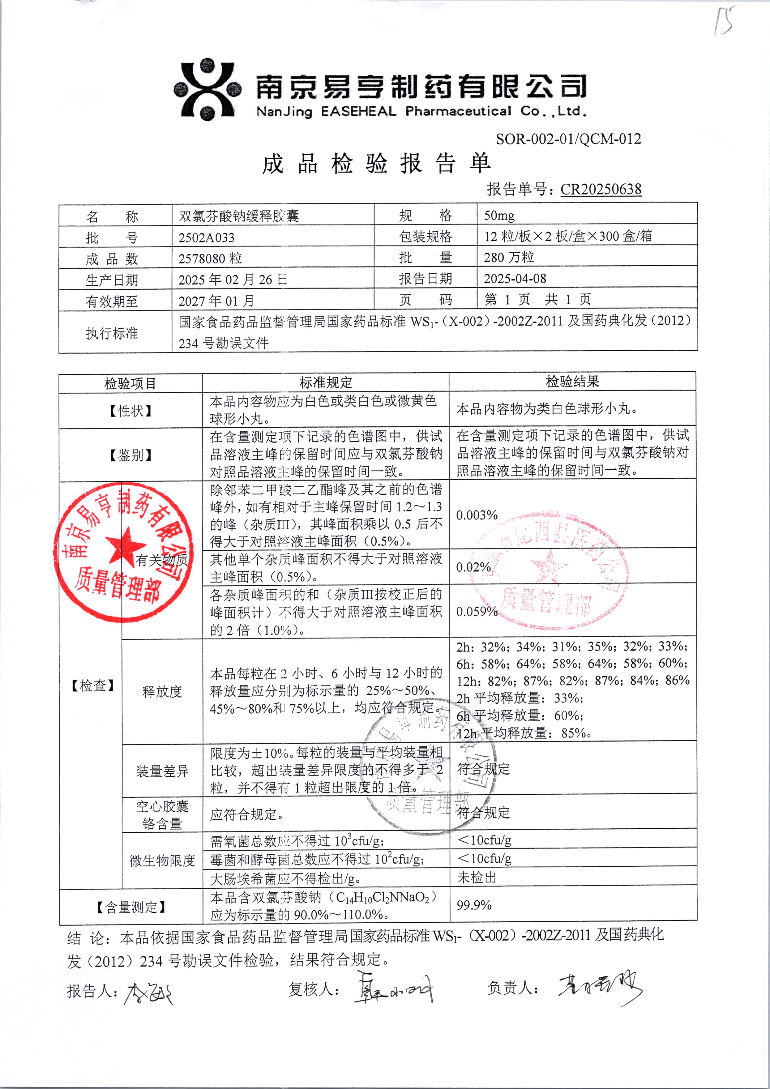 | Ë«ÂÈ·ÒËáÄÆ»ºÊͽºÄÒ | 50mg*24Á£/ºÐ | 2502A033 | ²é¿´ÏêÇé |