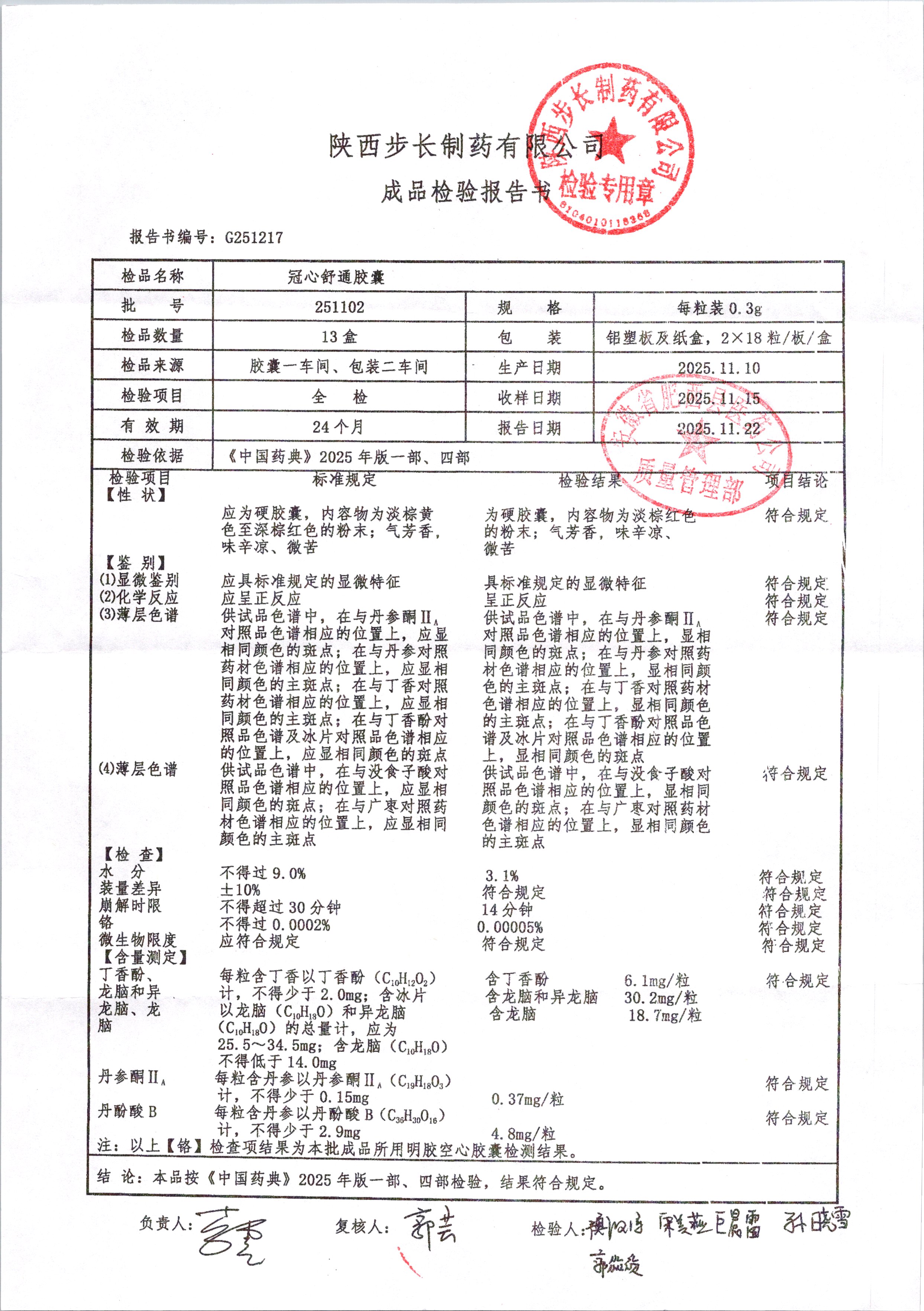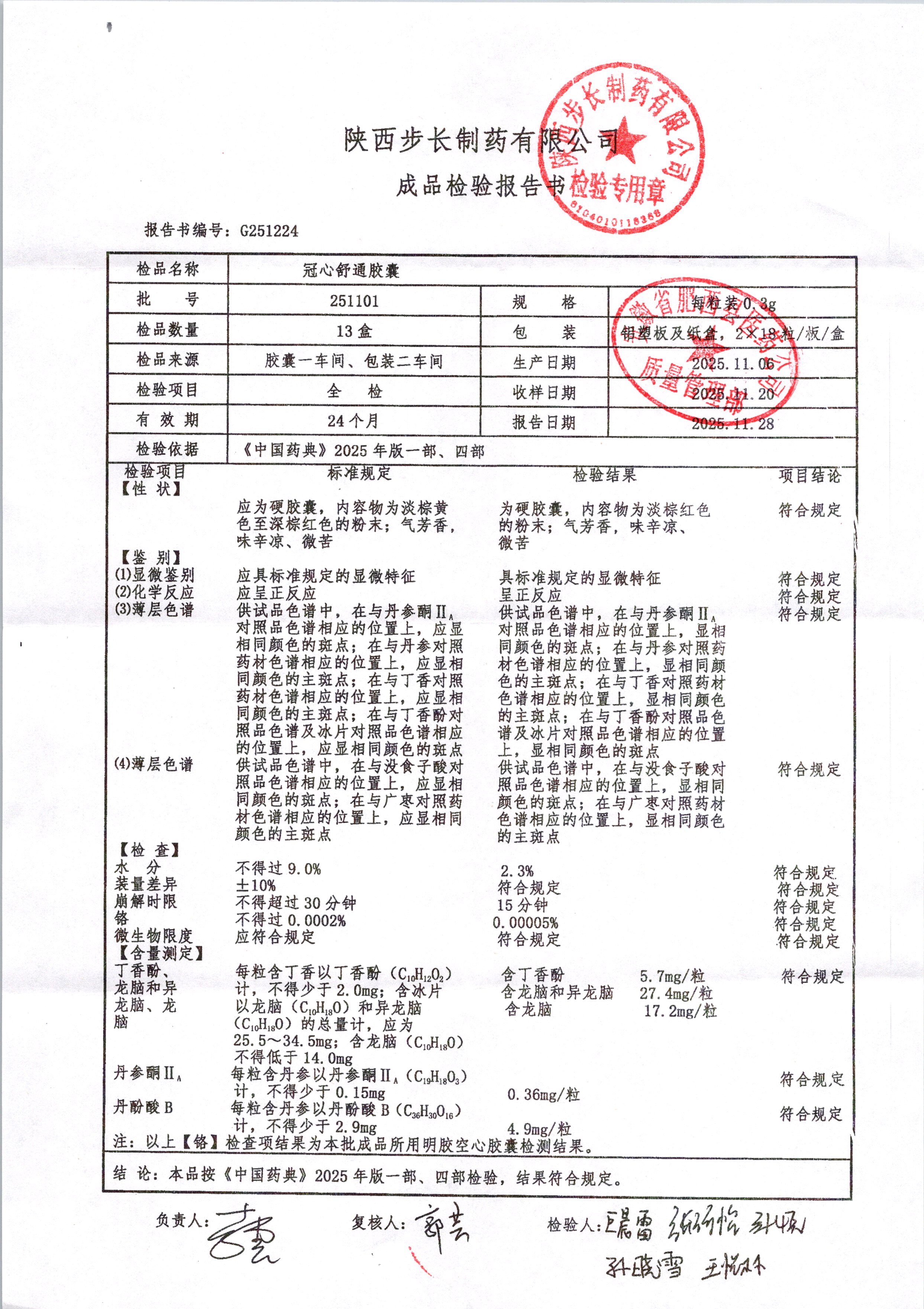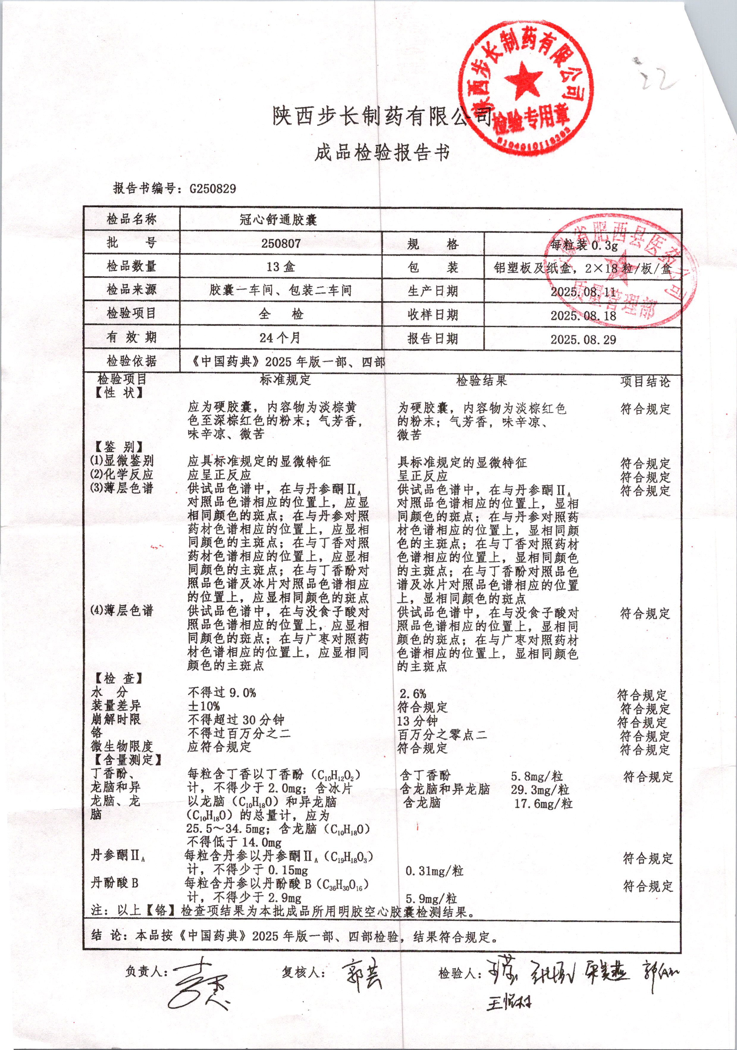 | 冠心舒通胶囊 | 0.3g*36粒 | 250807 | 查看详情 |