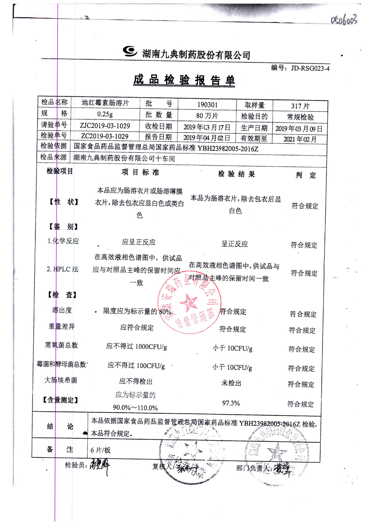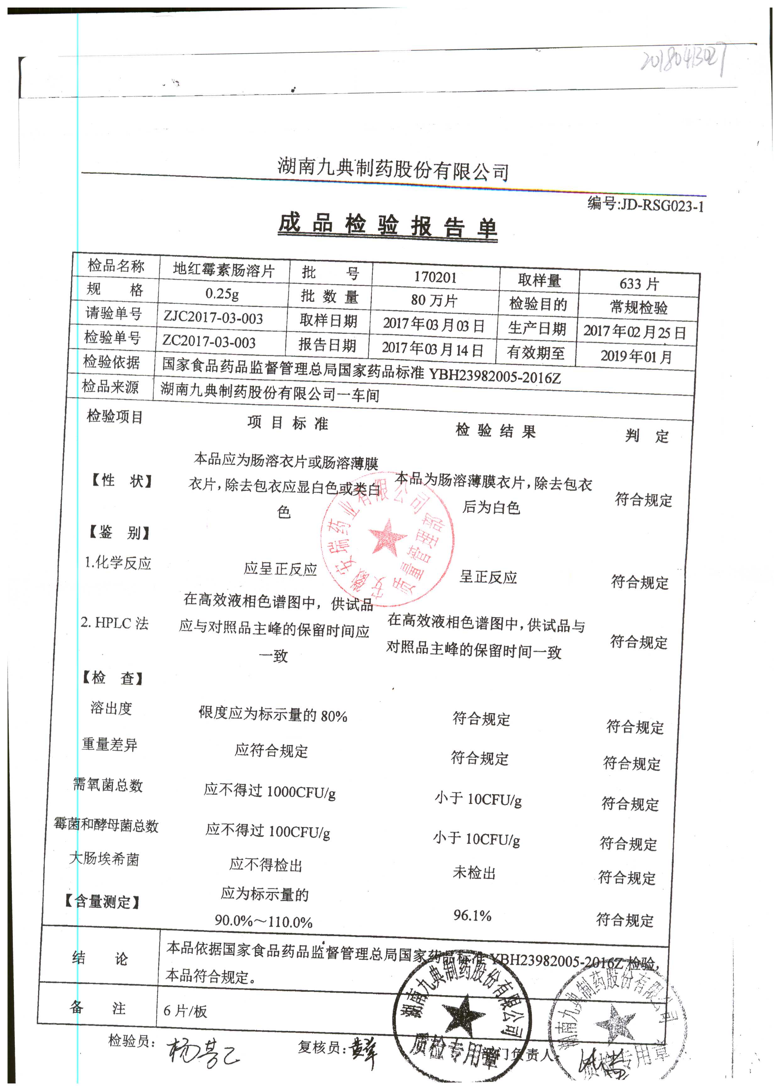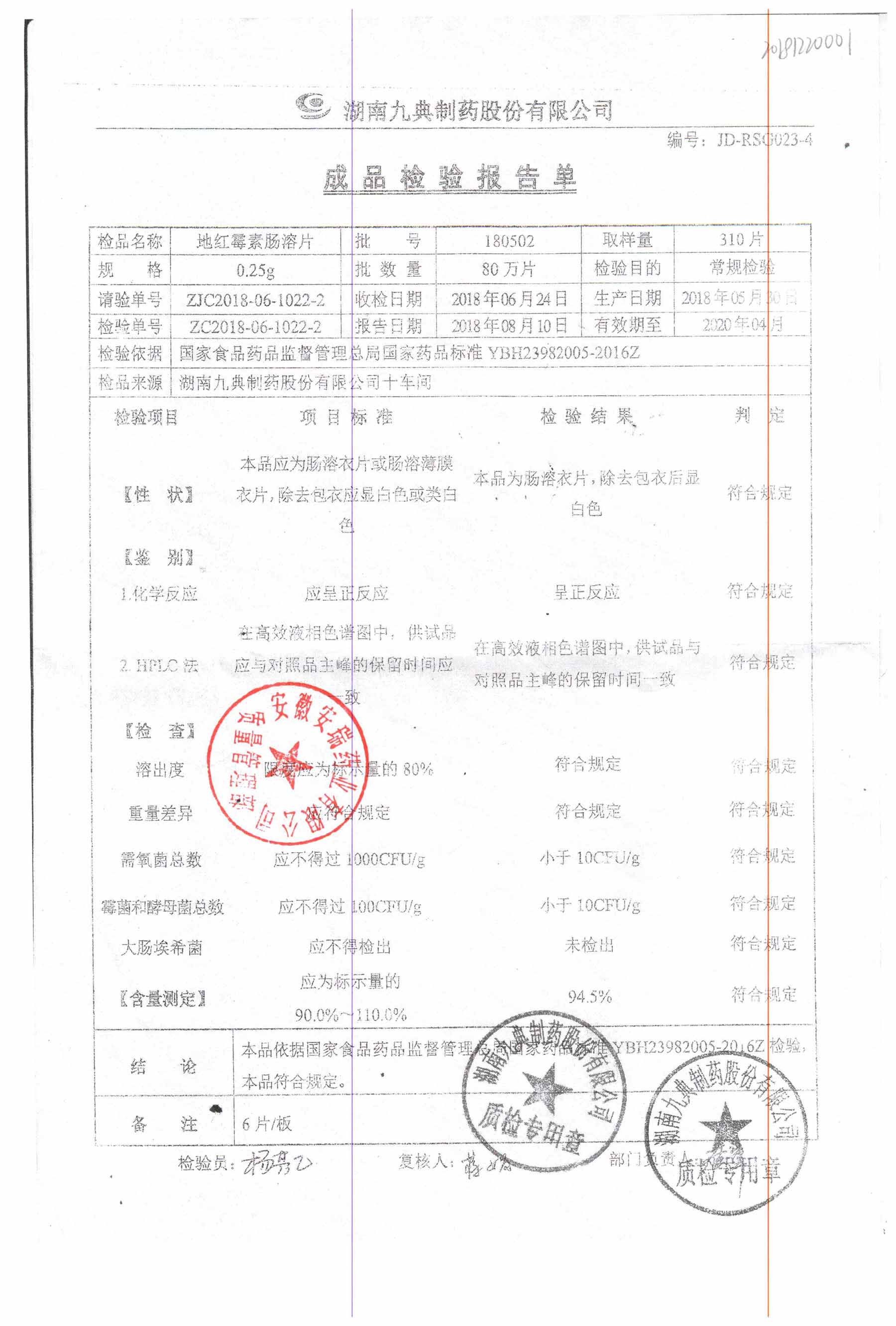 药检报告