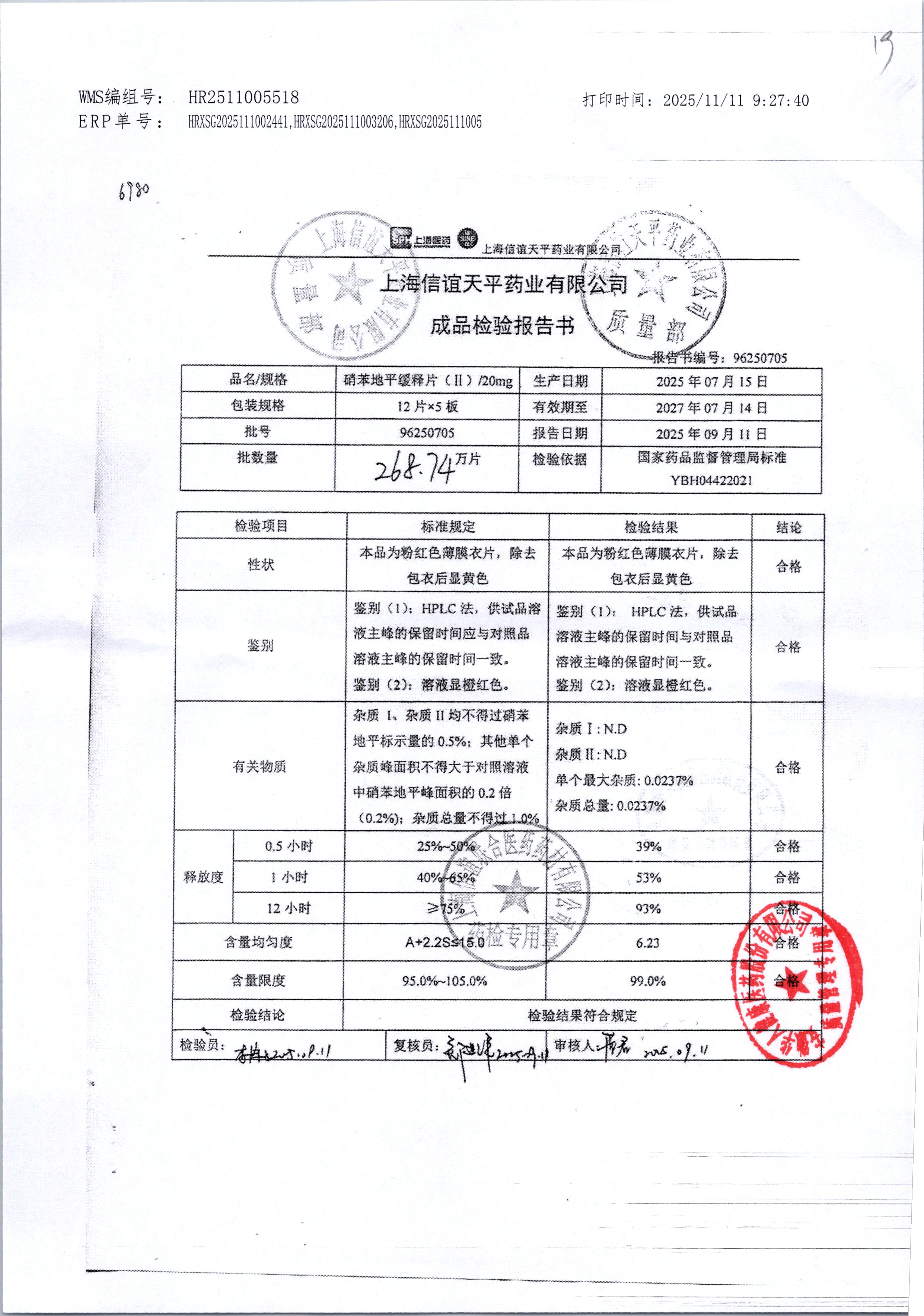 | 硝苯地平缓释片 | 60s | 96200707 | 查看详情 |