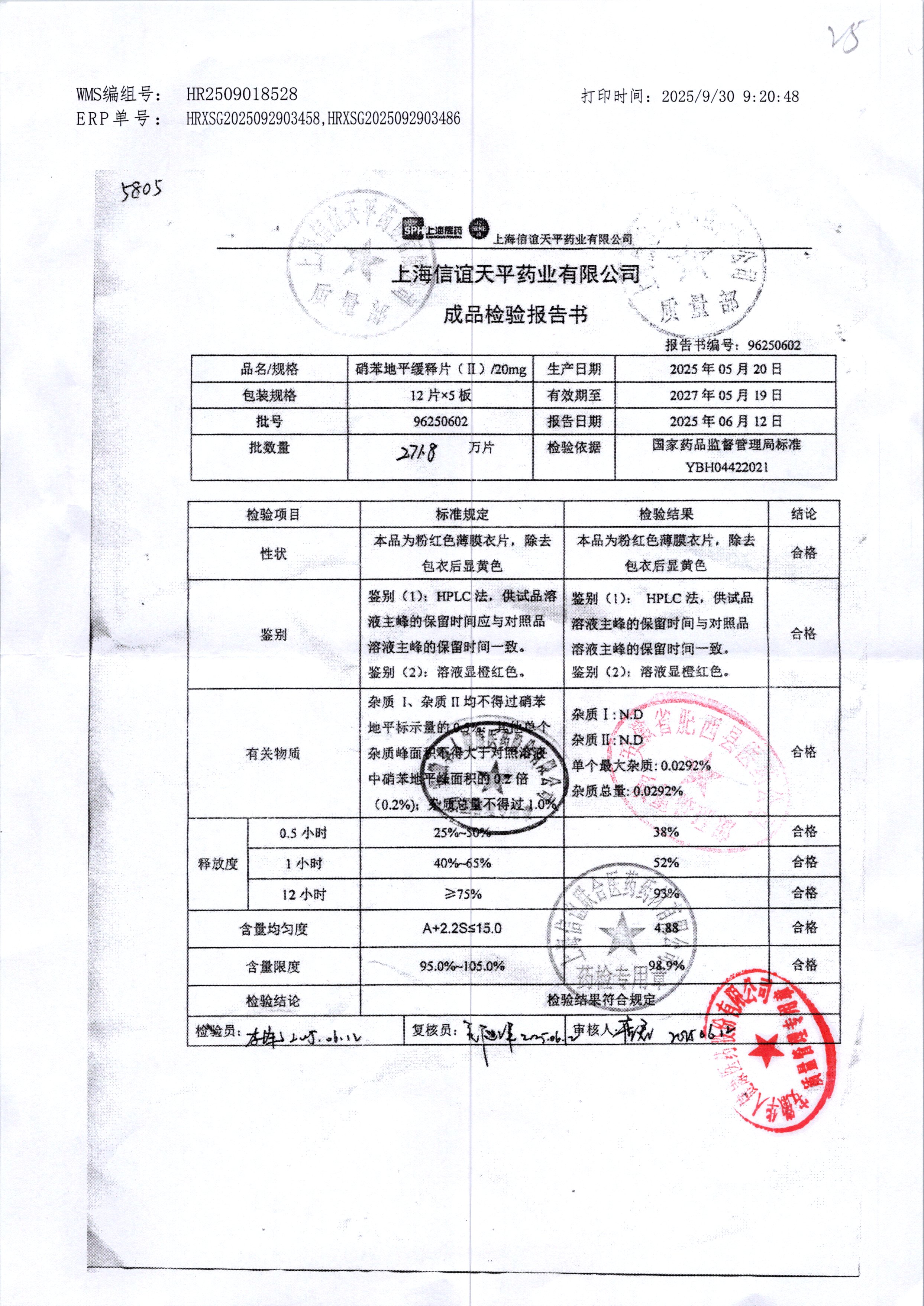 | 硝苯地平缓释片 | 60s | 96180803 | 查看详情 |