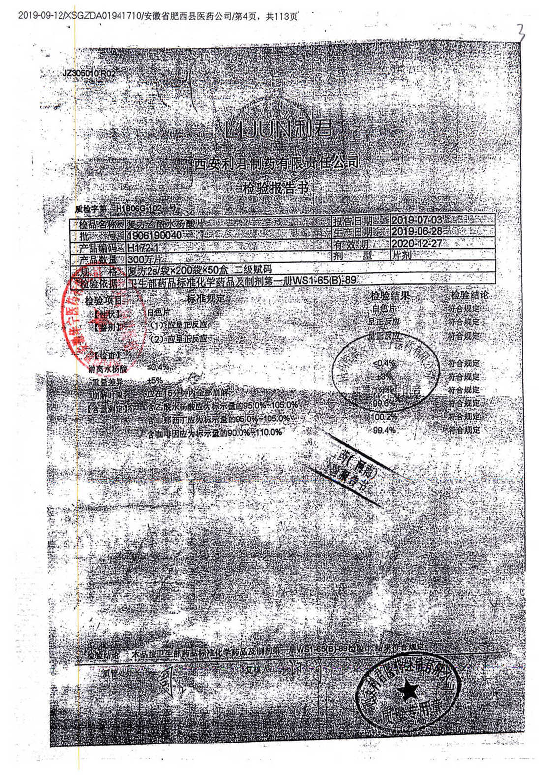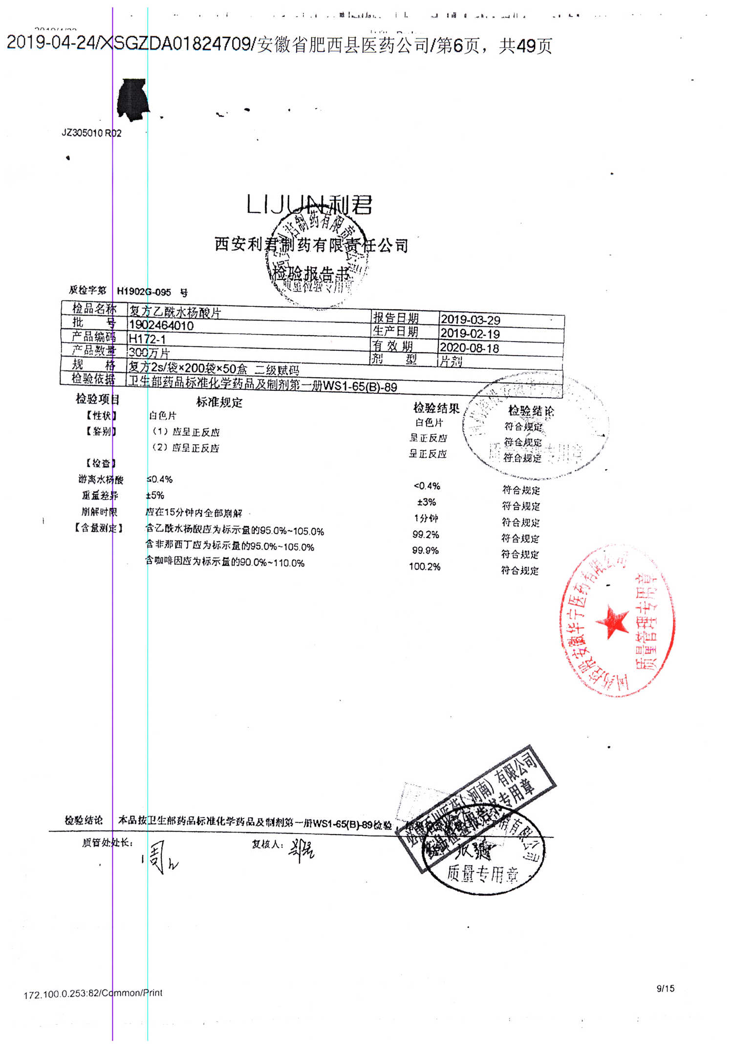 | 复方乙酰水杨酸片 | 2片 | 1906190040 | 查看详情 |
