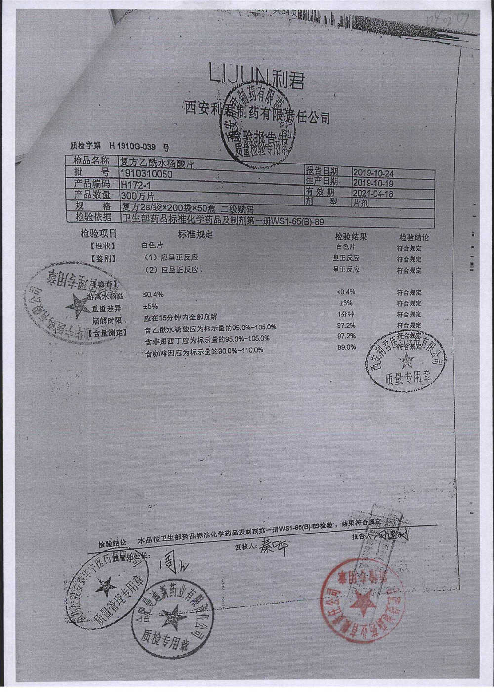 | 复方乙酰水杨酸片 | 2片 | 1910310050 | 查看详情 |
