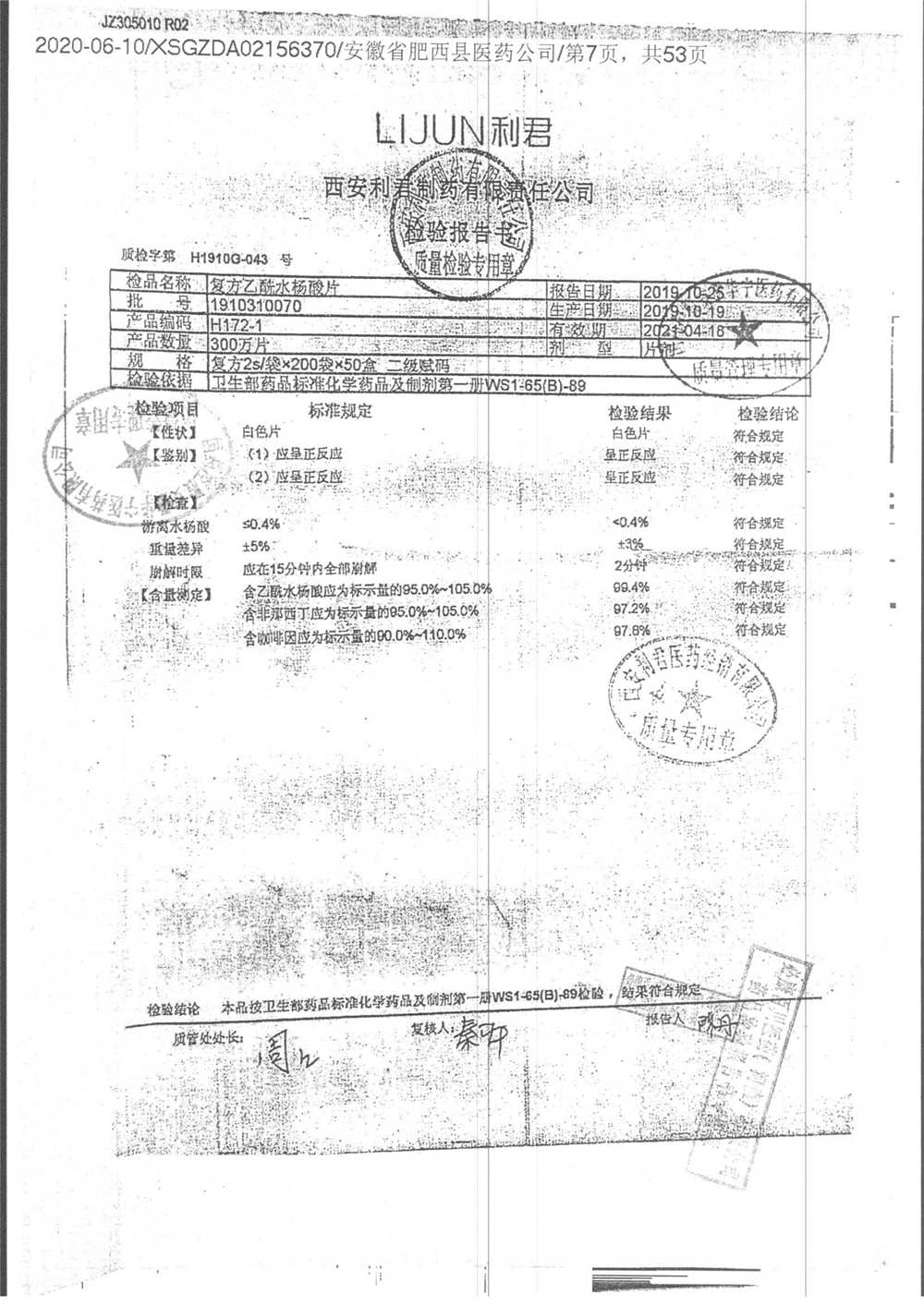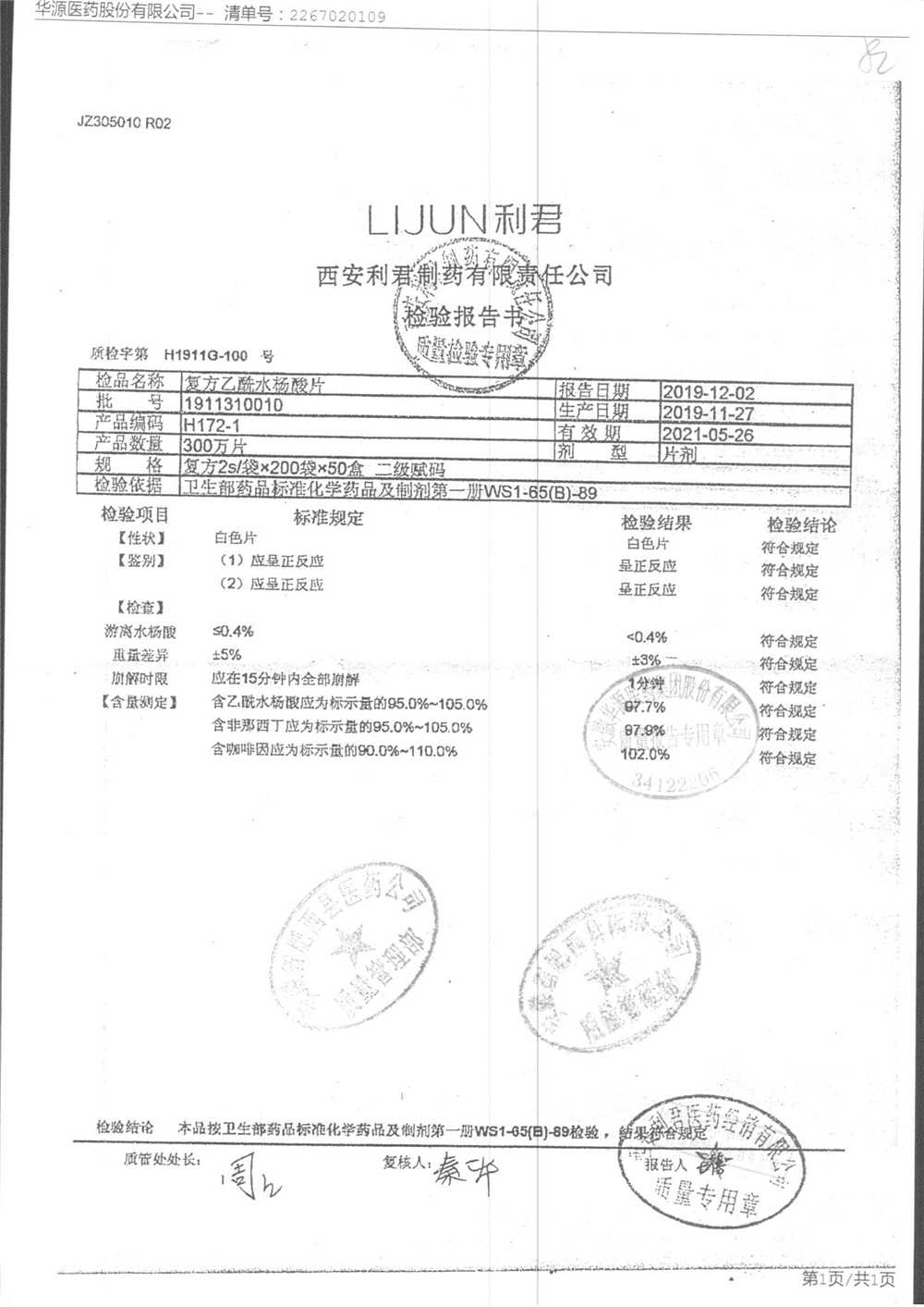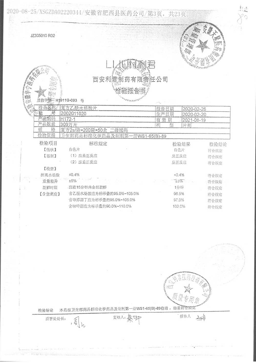 | 复方乙酰水杨酸片 | 2片 | 2002011020 | 查看详情 |
