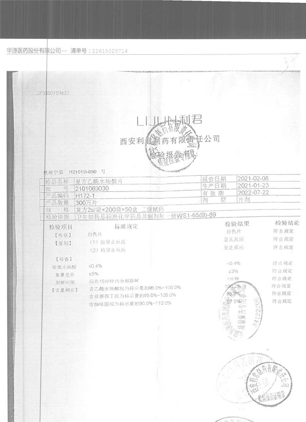 | 复方乙酰水杨酸片 | 2片 | 2105091010 | 查看详情 |