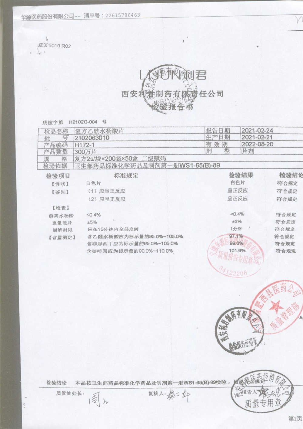 | 复方乙酰水杨酸片 | 2片 | 2105126040 | 查看详情 |
